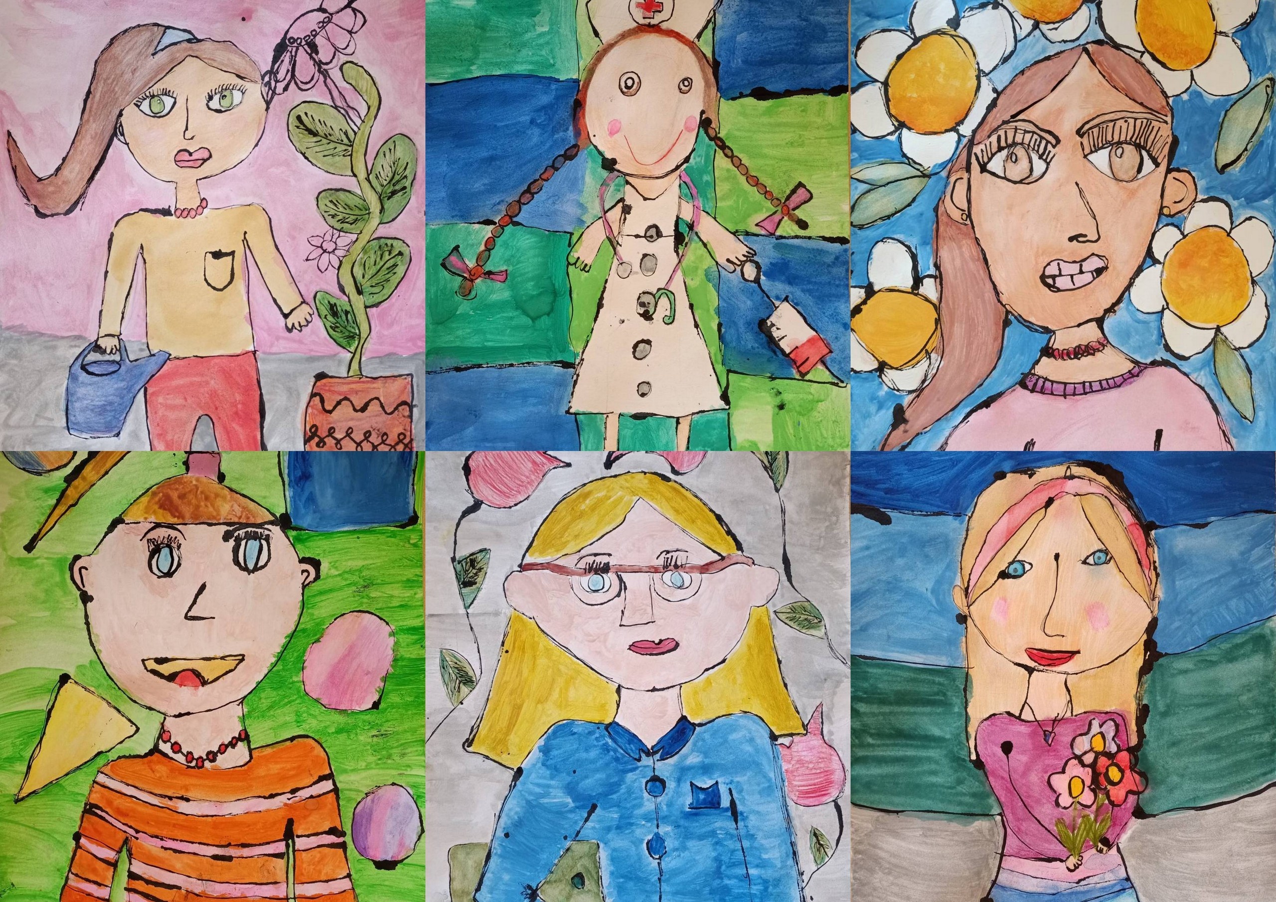 Dzieci z klas młodszych, w ramach zajęć świetlicowych pod kierunkiem p .Doroty Przychoda- Bonemberg, wykonały przepiękne portrety swoich Mam wykorzystując różne techniki plastyczne (pastele, akwarele, farby plakatowe).