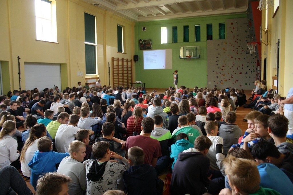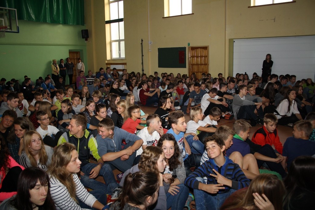 Podczas spotkania dyrektor szkoły – pani Grażyna Ruszkowska przypomniała uczniom o zasadach bezpieczeństwa w drodze do szkoły, poruszyła kwestię ubioru codziennego i galowego, obuwia zmiennego oraz identyfikatorów. Zwróciła uwagę na konieczność zapoznania się z obowiązującymi regulaminami, wymaganiami edukacyjnymi dostępnymi na stronie internetowej gimnazjum. Przedstawiła również ofertę zajęć pozalekcyjnych i projektów, które będą realizowane w obecnym roku szkolnym.