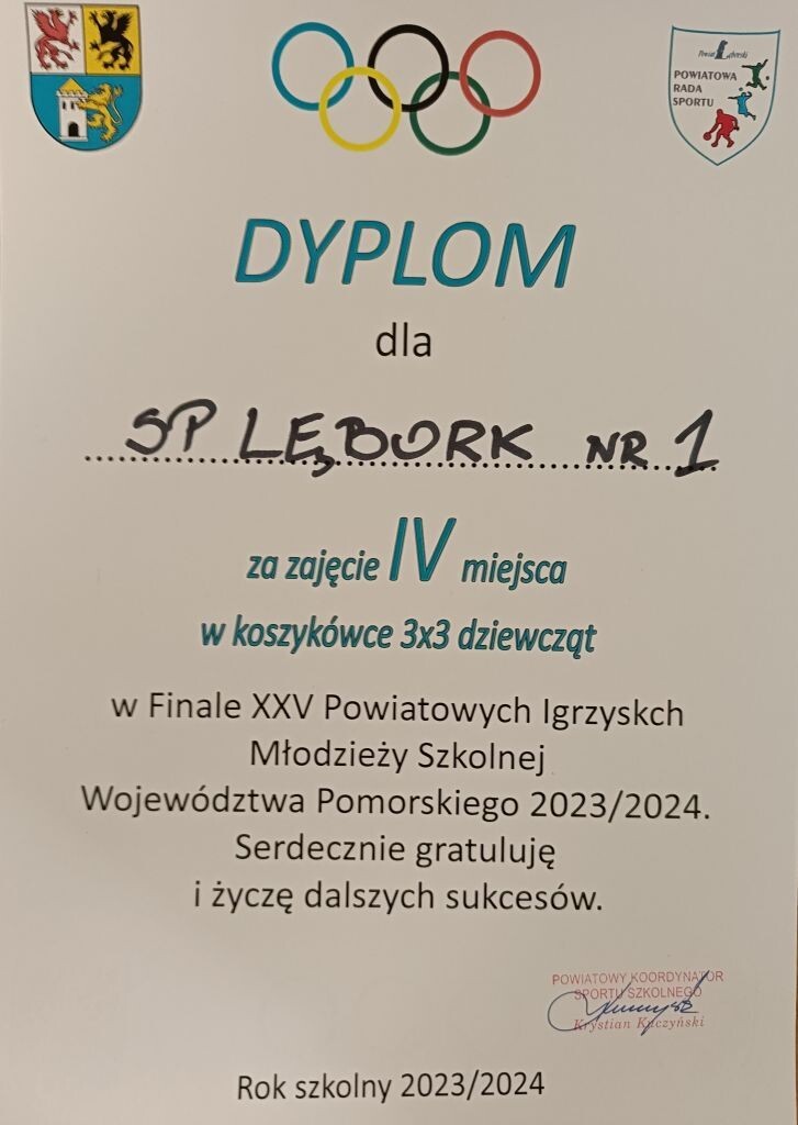 W środę 22 listopada 2023r. w hali sportowej przy Szkole Podstawowej w Łebie odbyły się Powiatowe Igrzyska Młodzieży w Koszykówce 3x3 dziewcząt. W zawodach wzięło udział 5 zespołów: SP Łeba, SP Redkowice, SP Wicko, SP Cewice oraz SP 1 Lębork. Nasza drużyna kolejno wygrała z zespołem z Łeby 8:3, przegrała z Redkowicami 0:11, przegrała z Cewicami 0:8 oraz przegrała po dogrywce 5:6 z Wickiem.