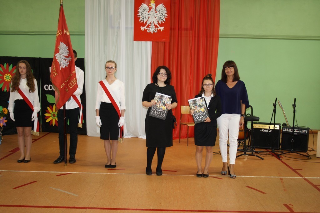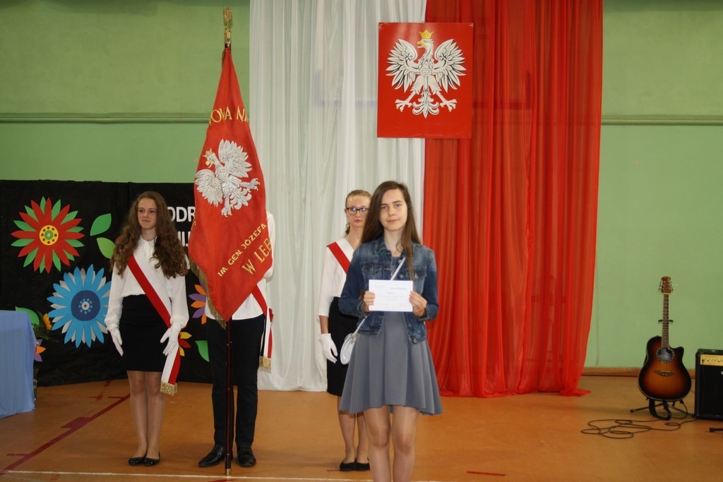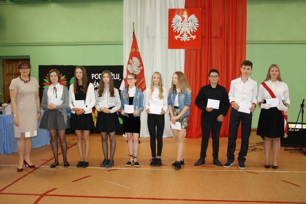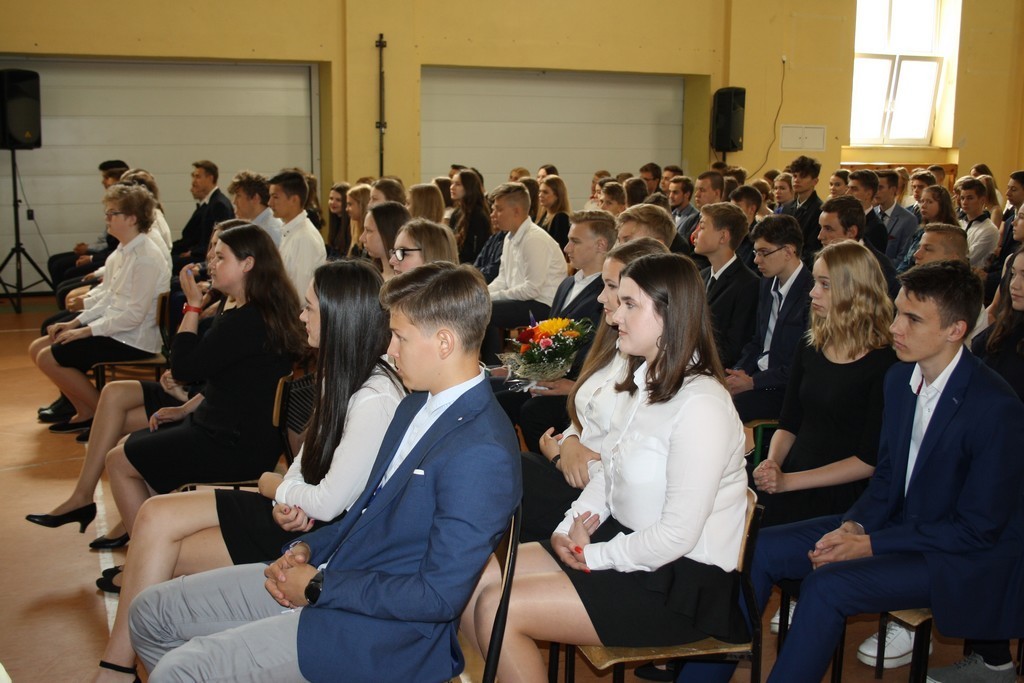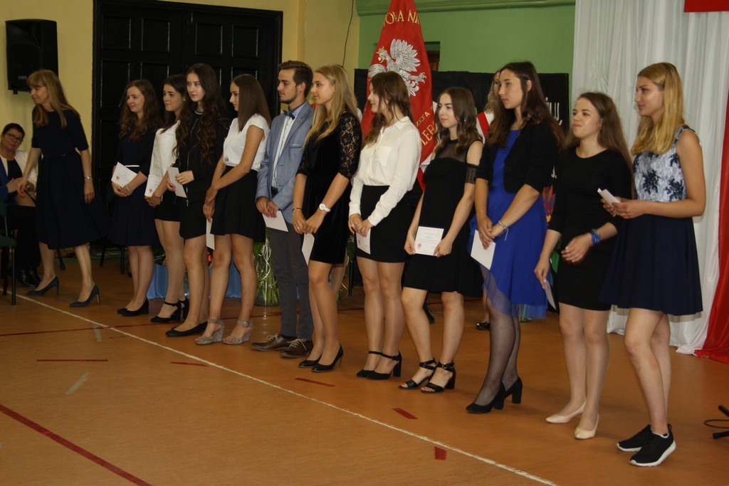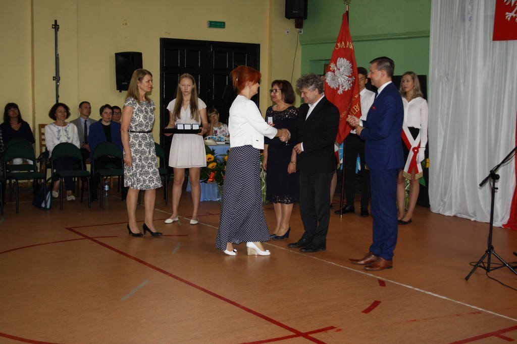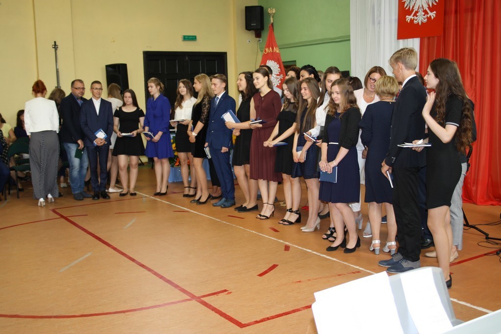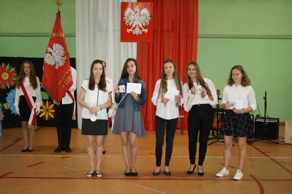 Piątek, 22 czerwca, był dniem wyjątkowo radosnym i podniosłym dla uczniów naszej szkoły. O godzinie 9.00 odbyła się uroczystość pożegnania absolwentów - uczniów klas trzecich oddziałów gimnazjalnych. Trzecioklasiści z ogromnym wzruszeniem żegnali się z dyrekcją, gronem pedagogicznym oraz koleżankami i kolegami. Najlepsi z nich otrzymali wyróżnienia, przyznano też honorowe tytuły szkoły, sportowcy zostali uhonorowani pamiątkowymi medalami . Laureaci i finaliści konkursów odebrali dyplomy i nagrody z rąk pani dyrektor- Grażyny Ruszkowskiej. Swoją obecnością zaszczycili nas również włodarze Lęborka: p.W.Namyślak , p.M.Kurzydło oraz p.A.Zajączkowska, którzy w krótkim przemówieniu gratulowali uczniom sukcesów, życząc im bezpiecznych i słonecznych wakacji. Po części oficjalnej nie zabrakło także występów artystycznych przygotowanych przez grupę muzyczną pana A. Łakockiego. Cała uroczystość obfitowała w wiele wzruszeń i wspomnień.