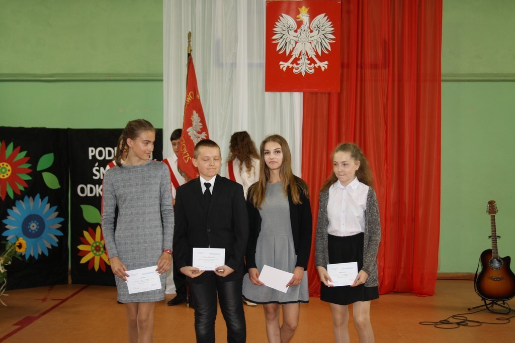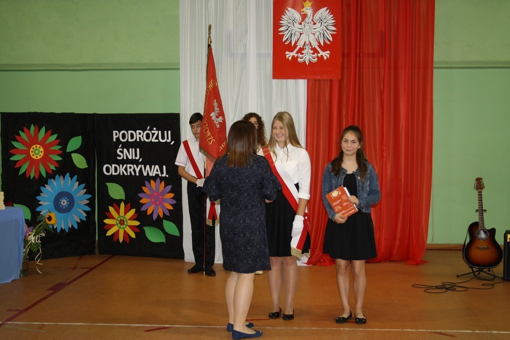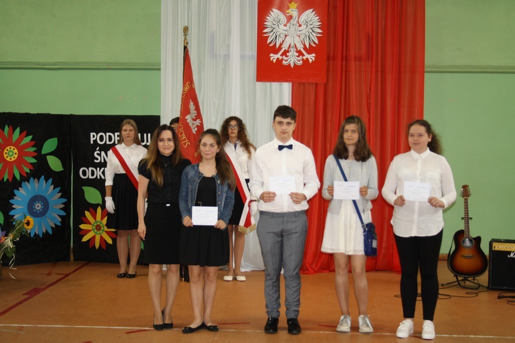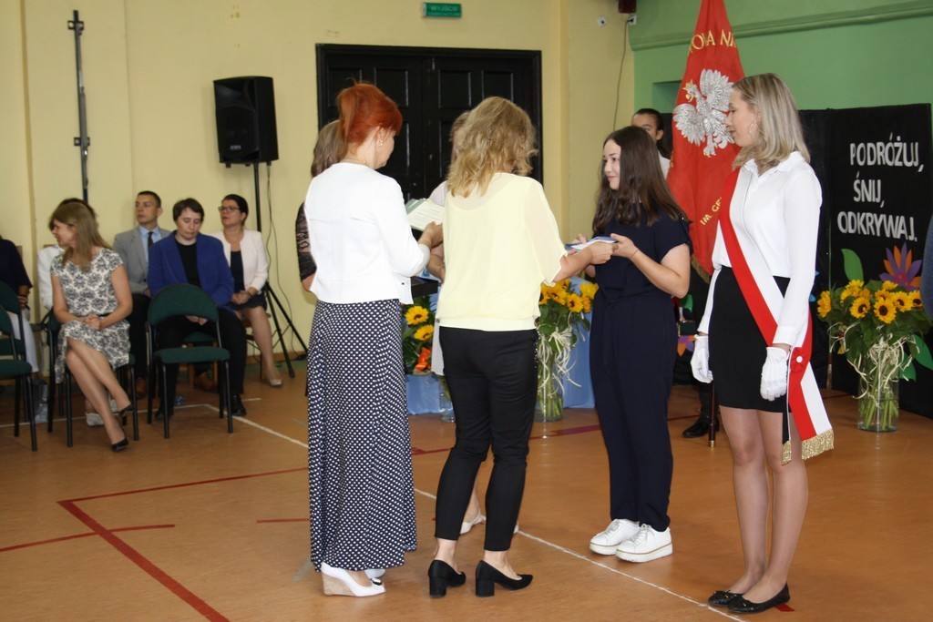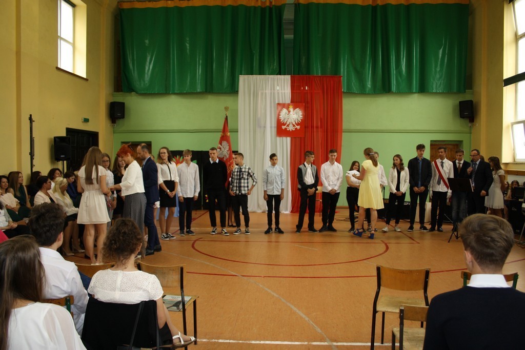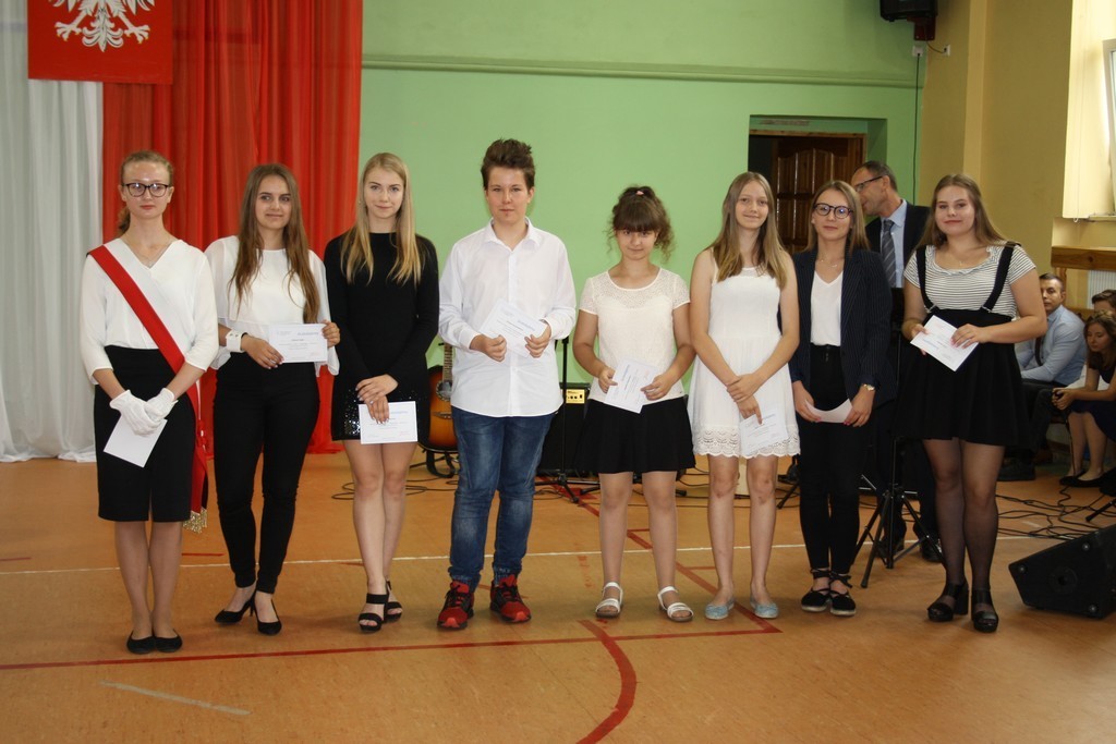 O godzinie 11.15. ostatni dzwonek zabrzmiał dla uczniów klas II gimnazjum , zaś o 12.30 szkołę na czas wakacji pożegnali siódmoklasiści oraz nasi najmłodsi- uczniowie klas pierwszych. Dla nich także nie zabrakło wyróżnień, podziękowań, występów artystycznych oraz pozytywnych emocji. Następnie w klasach odebrali świadectwa , mogli podziękować swoim wychowawcom i nauczycielom za całoroczną pracę.
