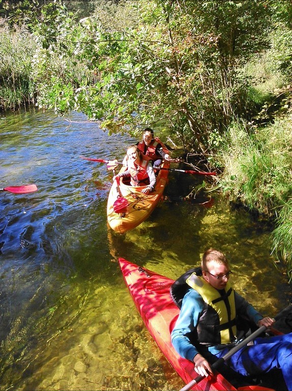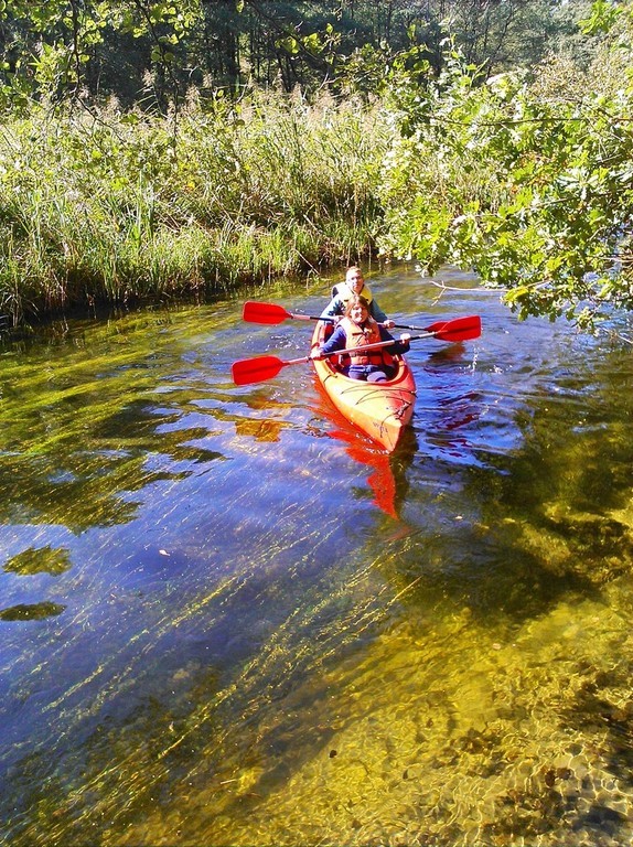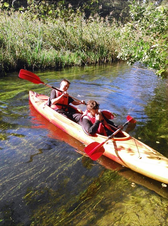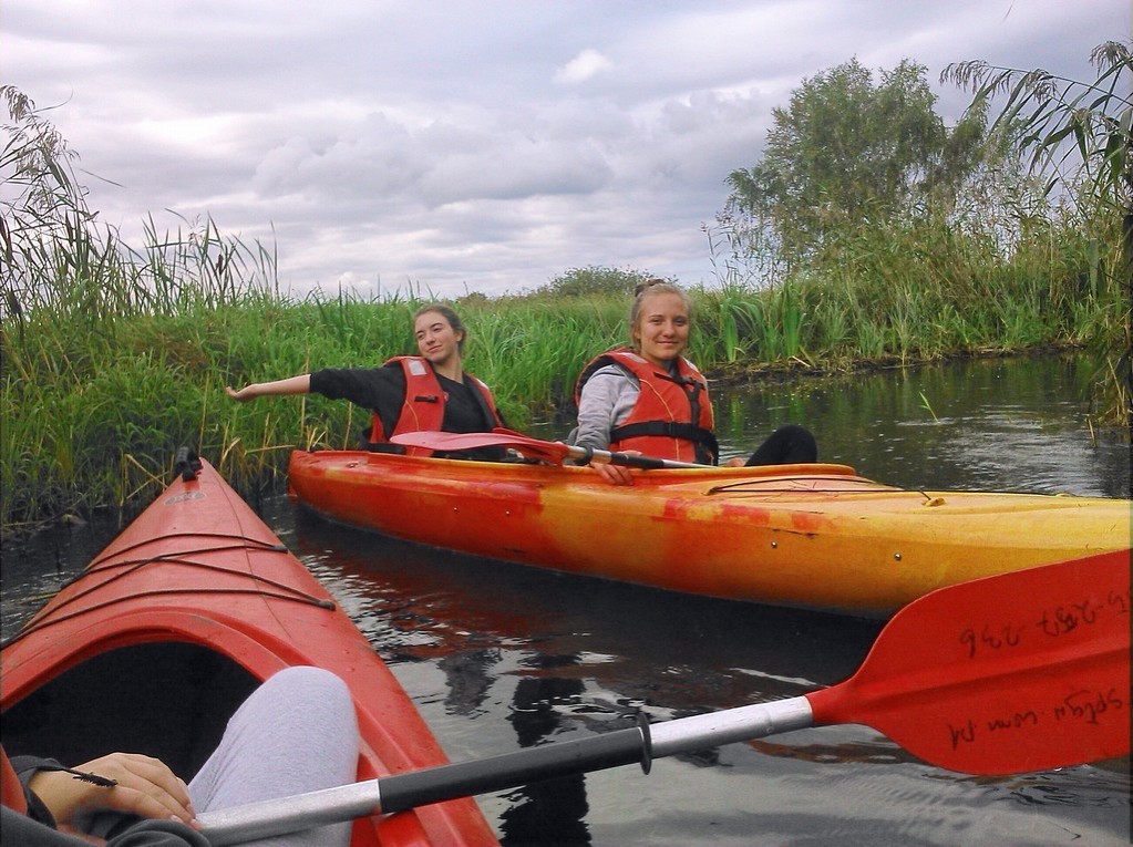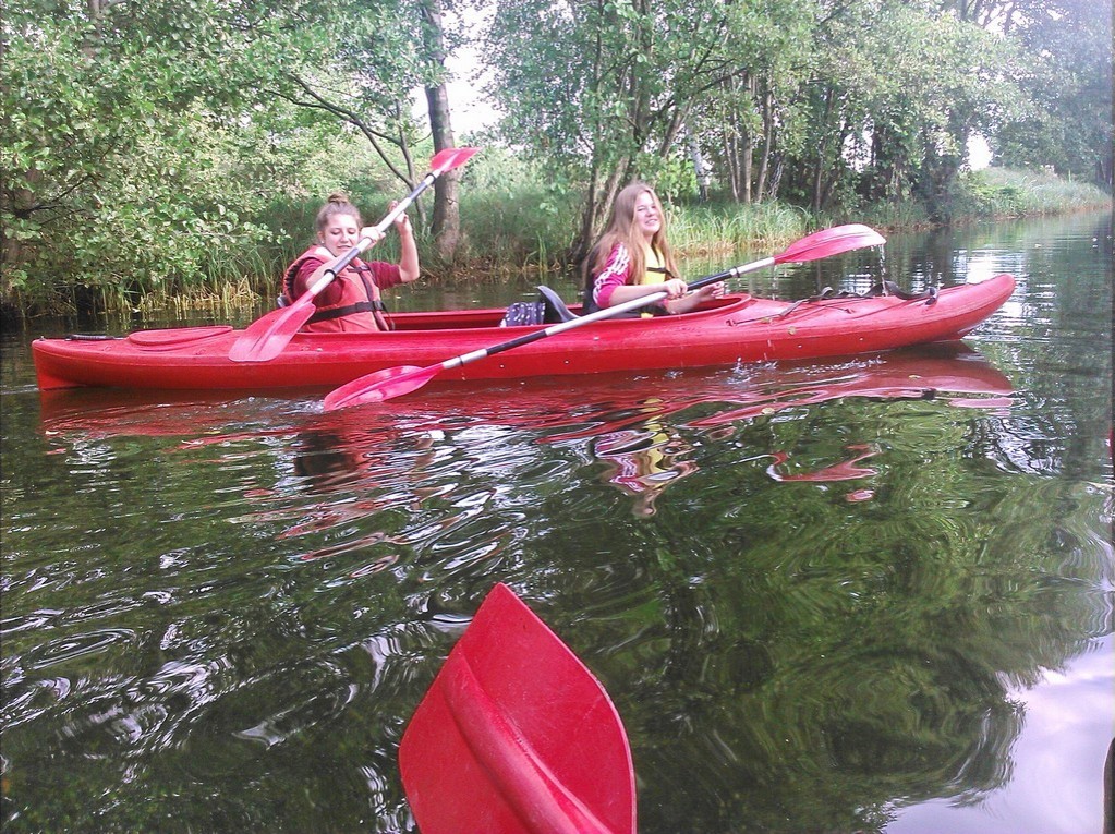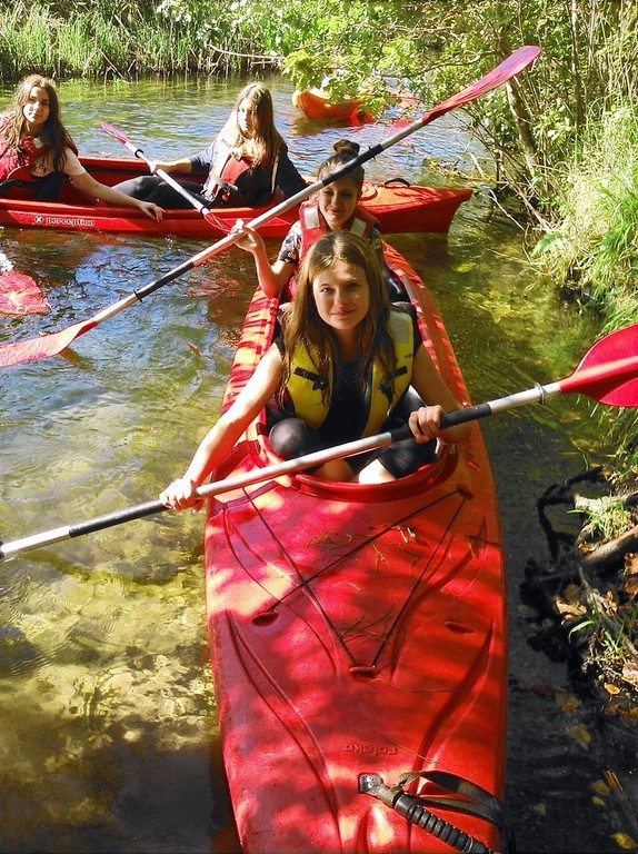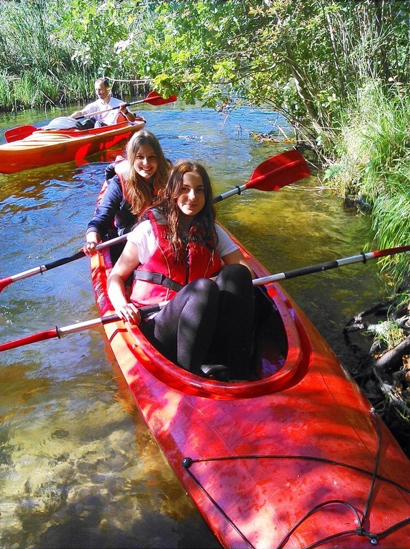 Zanim wsiedliśmy do kajaków zapoznaliśmy się z krótką historią miejsca i nazwy rzeki. Jej nieco leniwy nurt dał nam - w większości "kajakowym nowicjuszom" niesamowitą możliwość sprawdzenia siebie w działaniu, szczególnie wtedy, kiedy trzeba w tandemie równo wiosłować. Wiele zabawnych sytuacji i zdarzeń, które razem przeżyliśmy, zapamiętamy na długo. Mamy nadzieję, że powtórzymy taka formę aktywnego spędzania czasu już w czerwcu.