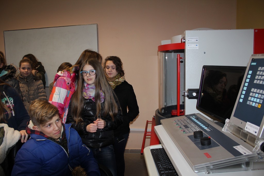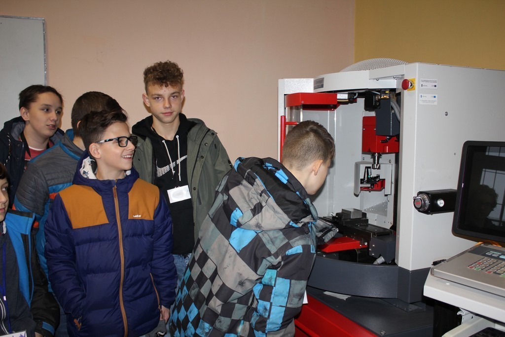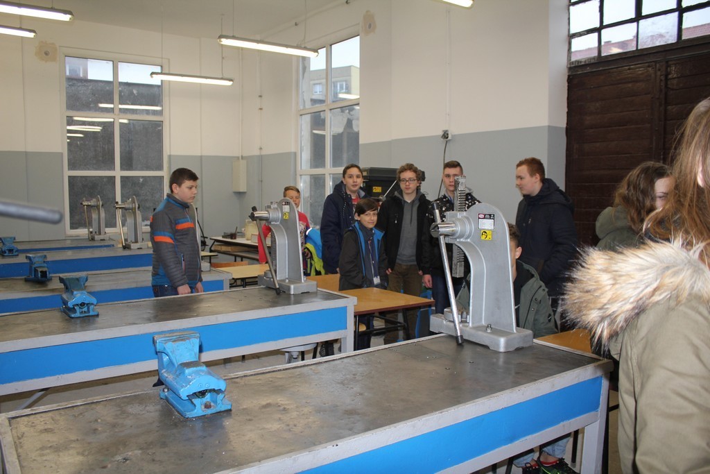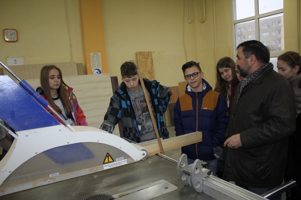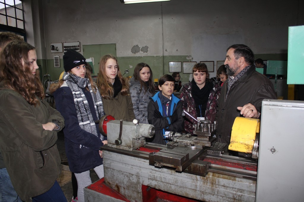Dzięki uprzejmości kierownika placówki p. Zbysława Etmańskiego uczniowie mogli poznać system pracy w placówce, obejrzeć pracownie, a przede wszystkim zobaczyć maszyny i urządzenia na których szkolą się starsi uczniowie. O zaletach kształcenia praktycznego nie trzeba dużo mówić w obecnych czasach, gdy absolwenci szkół technicznych i zawodowych nie mają problemów z zatrudnieniem. O starszych i całkiem nowych maszynach opowiadał p. Etmański , a uczniowie praktykujący demonstrowali swoje umiejętności i możliwości na dostępnych w placówce urządzeniach znajdujących się w różnych pracowniach. Były to: