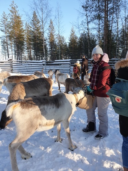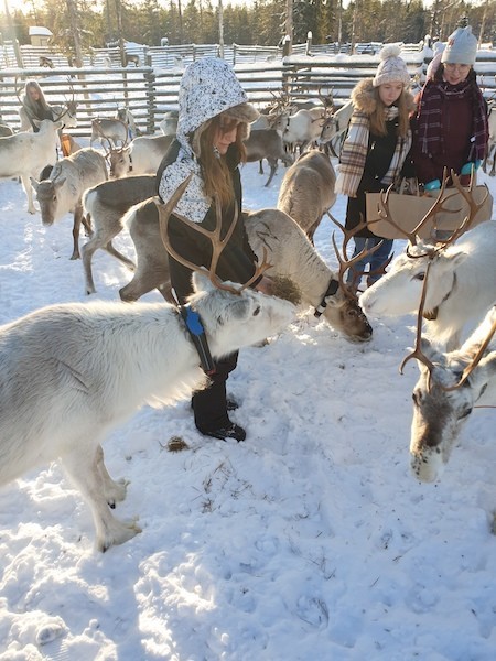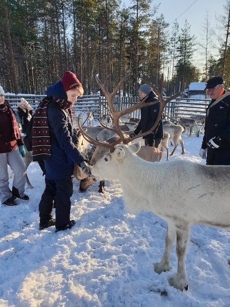 Największą frajdę sprawiła uczestnikom projektu przepiękna zimowa pogoda (-17º),ogromne zaspy śnieżne, zabawa na śniegu, jazda na nartach, Nordic Walking, pobyt w saunie oraz farma reniferów, gdzie uczniowie sami mogli karmić te piękne i bardzo przyjazne zwierzęta. Czwartkowy wieczór zakończył się obserwowaniem na niebie zorzy polarnej, co było wyjątkowym zjawiskiem dla uczestników projektu.