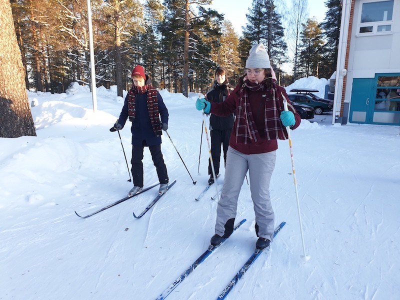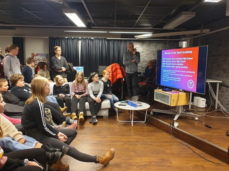Uczestnicy spotkania mieli okazję zwiedzić kilka szkół podstawowych w miejscowości Suomussalmi i okolicach. Szczególnie spodobał się uczniom zwyczaj chodzenia po szkole w ciepłych skarpetach zamiast typowego obuwia zmiennego, obowiązkowe wychodzenie na dużej przerwie na boisko szkolne, godzinna przerwa na obiad oraz przytulne pracownie klasowe. Zwiedziliśmy także szkołę sportową w mieście Vuokatti, w której do uczestnictwa w zawodach międzynarodowych i olimpiadzie przygotowują się najzdolniejsi młodzi sportowcy z całej Finlandii. Była tam też klasa e-sportowa.