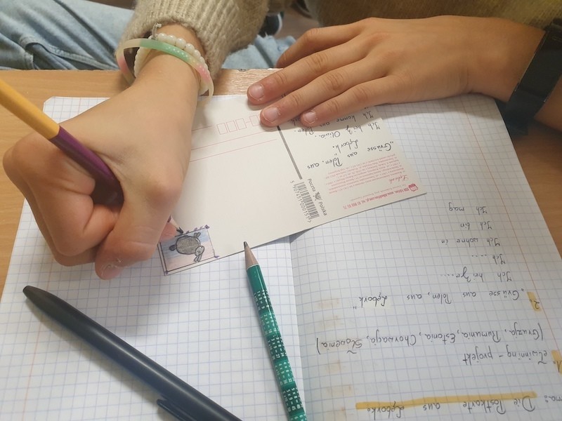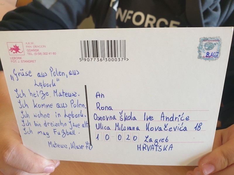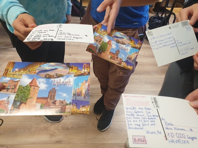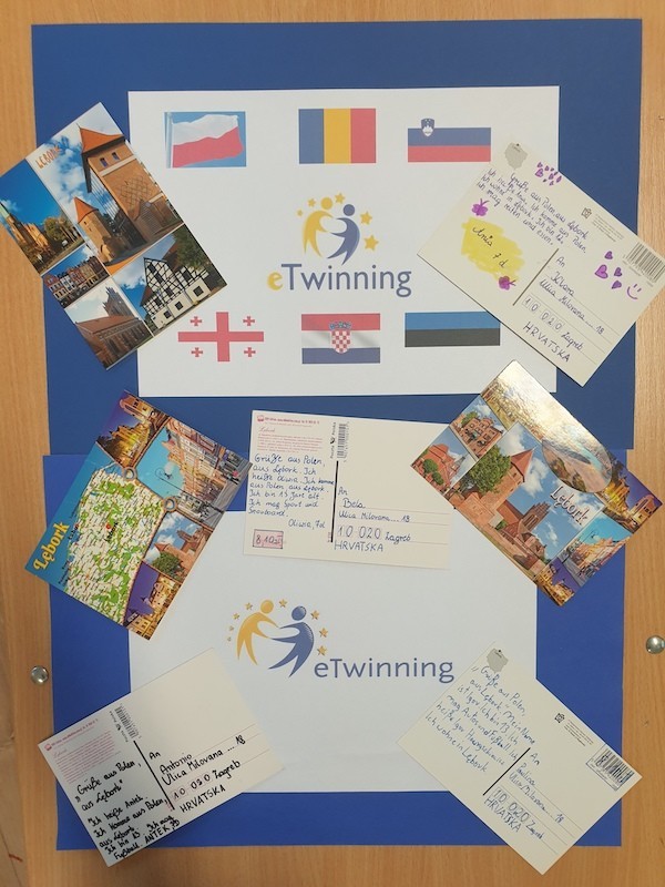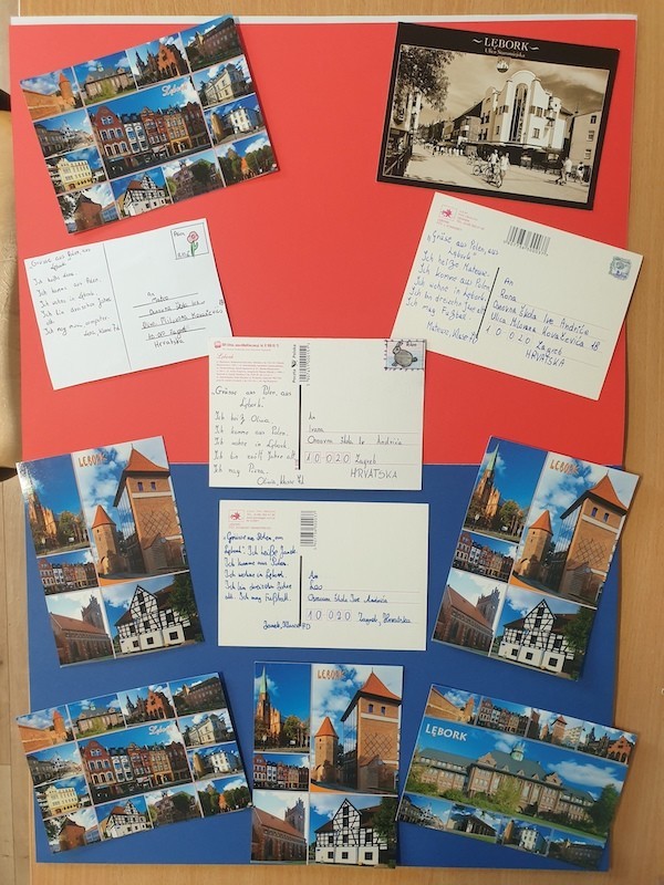 Uczniowie klasy 7d rozpoczęli na lekcjach języka niemieckiego międzynarodowy projekt na platformie eTwinning, pt: „Postkarten auf Deutsch”- „Pocztówki po niemiecku”. Przez cały rok szkolny będziemy współpracowali z uczniami z Estonii, Gruzji, Chorwacji, Ukrainy, Słowenii i Rumunii. Nasz projekt będzie polegał na pisaniu pocztówek w języku niemieckim z różnych okazji. Pierwsze pocztówki z pozdrowieniami z Lęborka uczniowie klasy 7d wysłali do swoich koleżanek i kolegów z Chorwacji. Nasze pocztówki otrzymają: Mateo, Leo, Stjepan, Ivan, Rona, Ivana, Kali, Patricija, Ema, Klara, Antonio, Marija, Bela, Paulina- uczniowie ze szkoły Osnovna škola Ive Andrića z Zagrzebia.