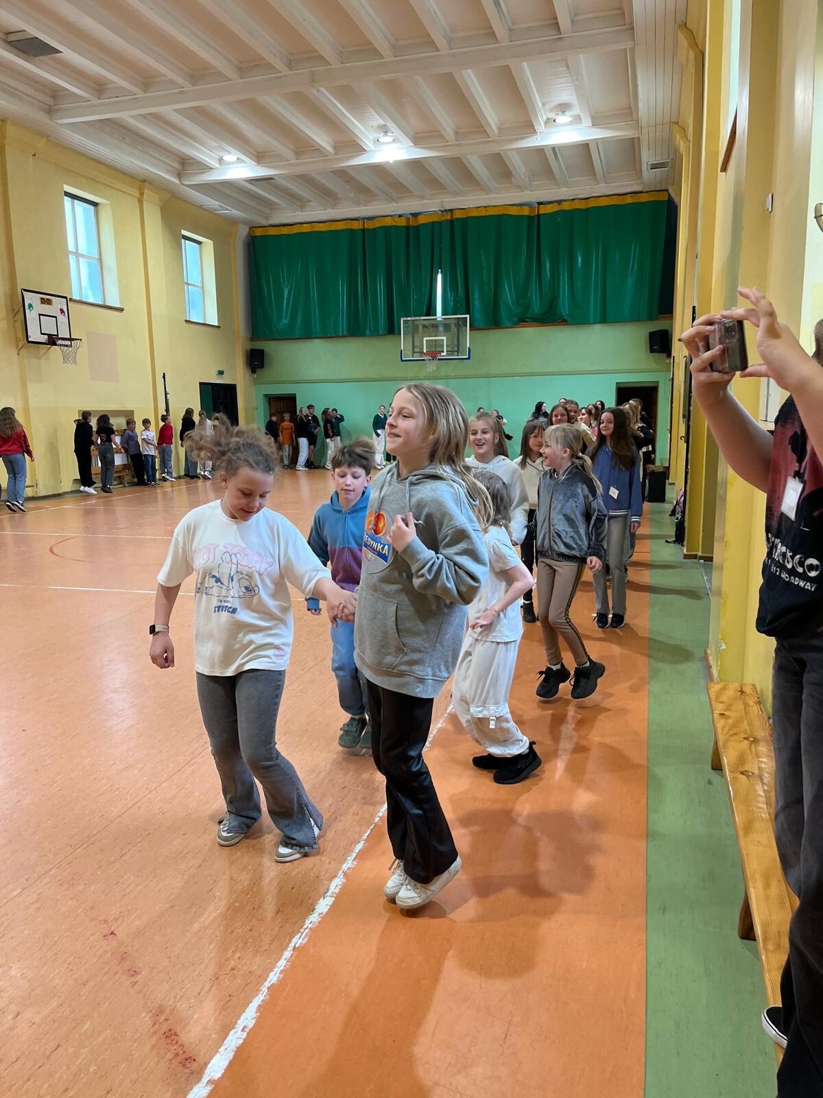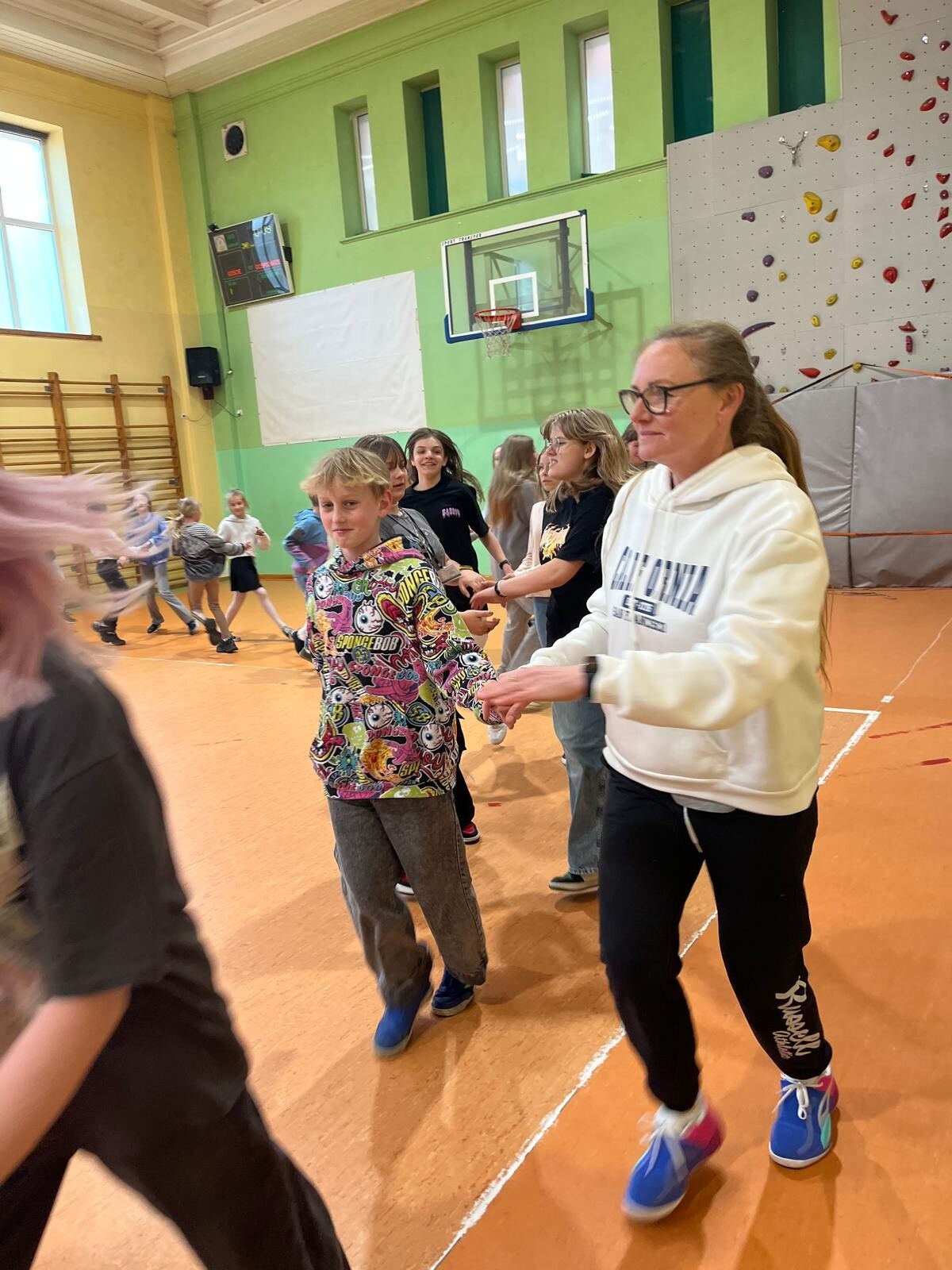 W zdrowym ciele zdrowy duch! W ramach akcji prozdrowotnej 5 maja w naszej szkole uczniowie mogli wziąć udział w ,,aktywnych przerwach" zorganizowanych na sali gimnastycznej. Na dwóch dużych przerwach wszyscy chętni z klas 4-8 tańczyli belgijkę. Była to świetna okazja do tego , by uświadomić młodym ludziom, że można odpoczywać , ruszając się i dobrze się bawiąc.