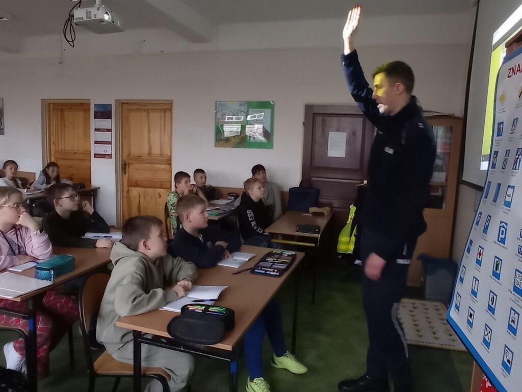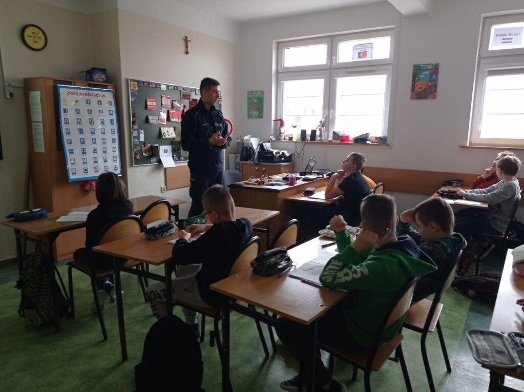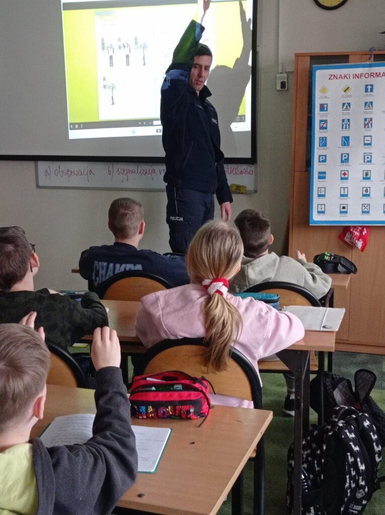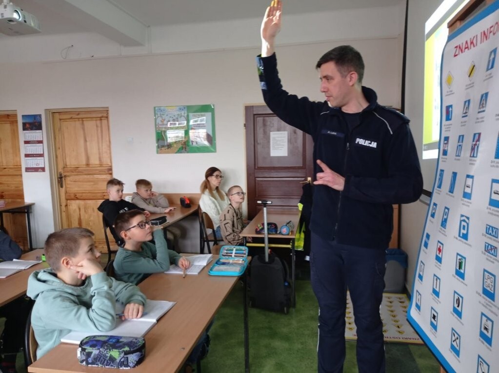 Policjant, poza omówieniem obowiązujących przepisów, przypomniał uczniom o korzystaniu z elementów odblaskowych, które znacznie poprawiają widoczność niechronionych uczestników ruchu. Zachęcał też przyszłych pełnoprawnych cyklistów do używania kasków chroniących głowę przed poważnymi urazami. W przypadku udziału w zdarzeniu drogowym rowerzyści są narażeni na poważne konsekwencje, które mogą doprowadzić do utraty zdrowia a nawet życia, gdyż w porównaniu z innymi kierującymi pojazdami, nie chroni ich karoseria ani inne systemy bezpieczeństwa. Mówił o bezpieczeństwie na drodze, które nie zależy jedynie od opanowania techniki jazdy, ale również znajomości przepisów ruchu drogowego.