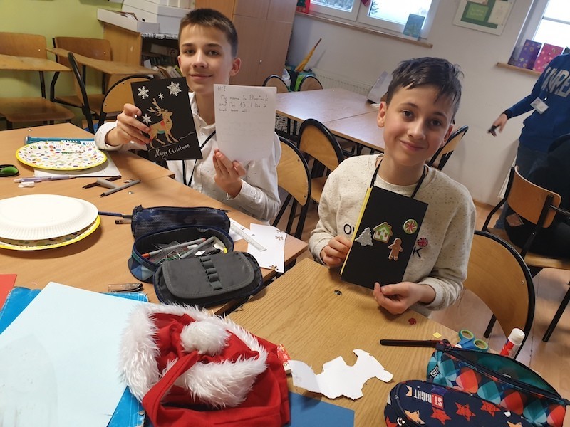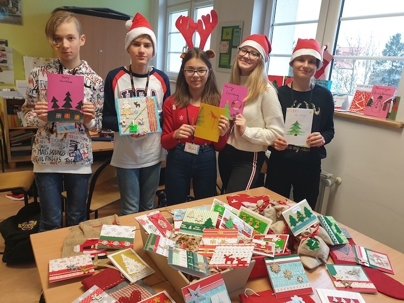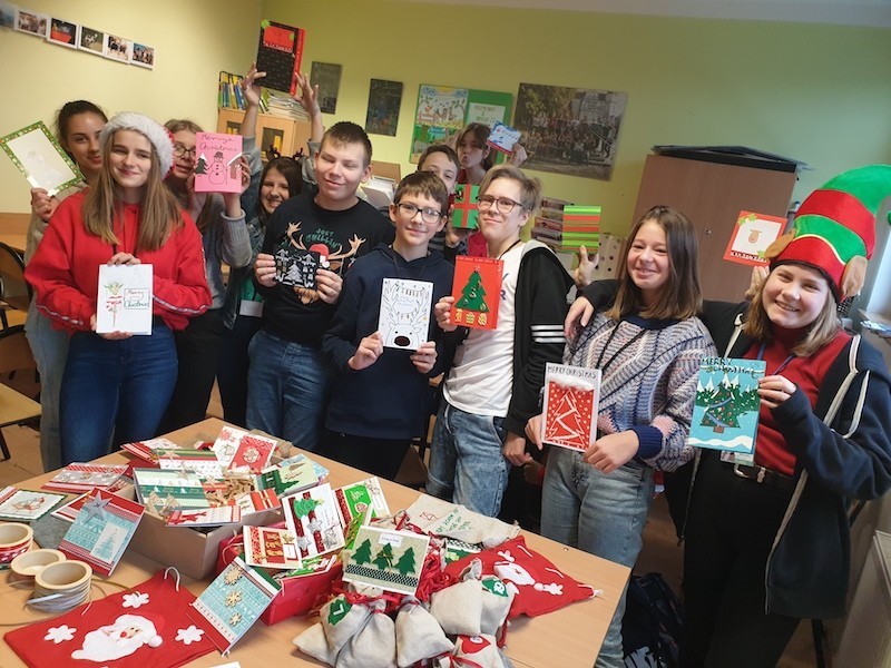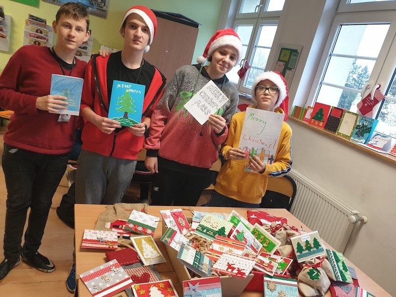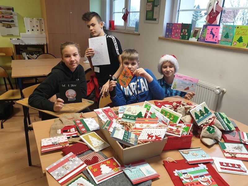 Uczniowie klas 7a,8a,7e wzięli udział w międzynarodowym projekcie eTwinning pt. „Christmas Cards and something more...” czyli „Kartki świąteczne i coś więcej...” Boże Narodzenie to tradycja, podobnie jak nasz projekt pisania i wysyłania kartek z życzeniami świątecznymi. Dla naszych uczniów jest to ważna aktywność, dzięki której mogą nauczyć się czegoś od swoich rówieśników, jak również sprawdzić swoje kompetencje językowe. Kartki z życzeniami wysłaliśmy do naszych projektowych partnerów z całej Europy, m.in.: Niemiec, Portugalii, Włoch, Grecji, Finlandii, Francji, Słowacji, Rumunii, Węgier, Hiszpanii i Ukrainy. Uczniowie pisząc życzenia świąteczne w języku niemieckim i angielskim do swoich rówieśników opisywali również siebie, swoje zainteresowania, szkołę oraz miasto Lębork... Teraz my z niecierpliwością czekamy na kartki od naszych europejskich partnerów..