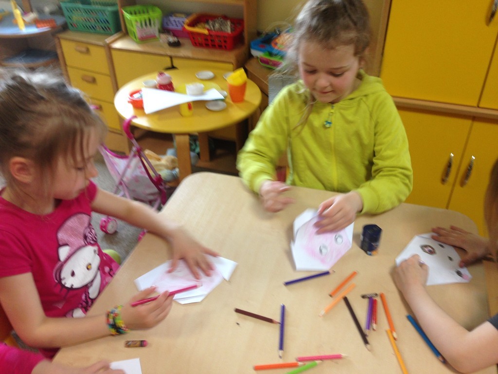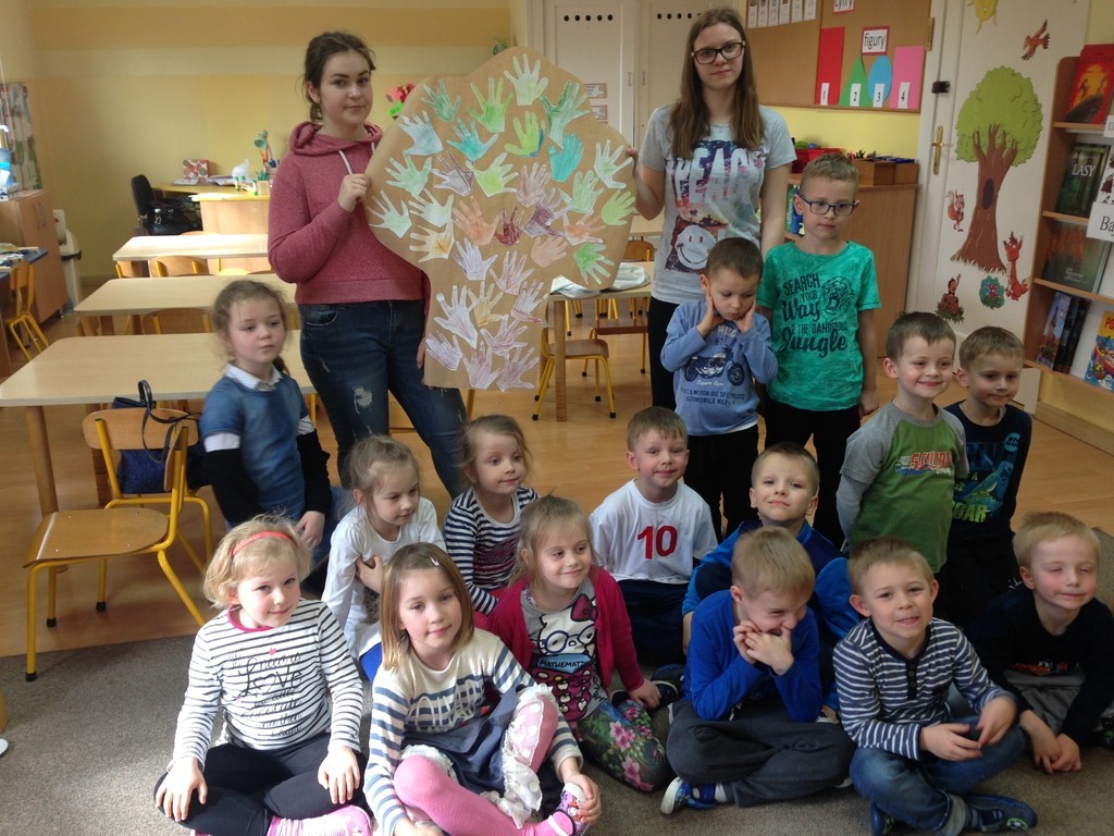 Nasi uczniowie oprócz pomocy udzielanej przedszkolakom podczas codziennych czynności – mycia rąk, ubierania się, spożywania podwieczorków – przede wszystkim bawią się i umilają czas dzieciakom. Wspólnie tworzą drzewka szczęścia składające się z rysunków rączek dzieci czy składają origami. Czytają książki, opowiadają zabawne historie i bawią się w przeróżne gry i zabawy.