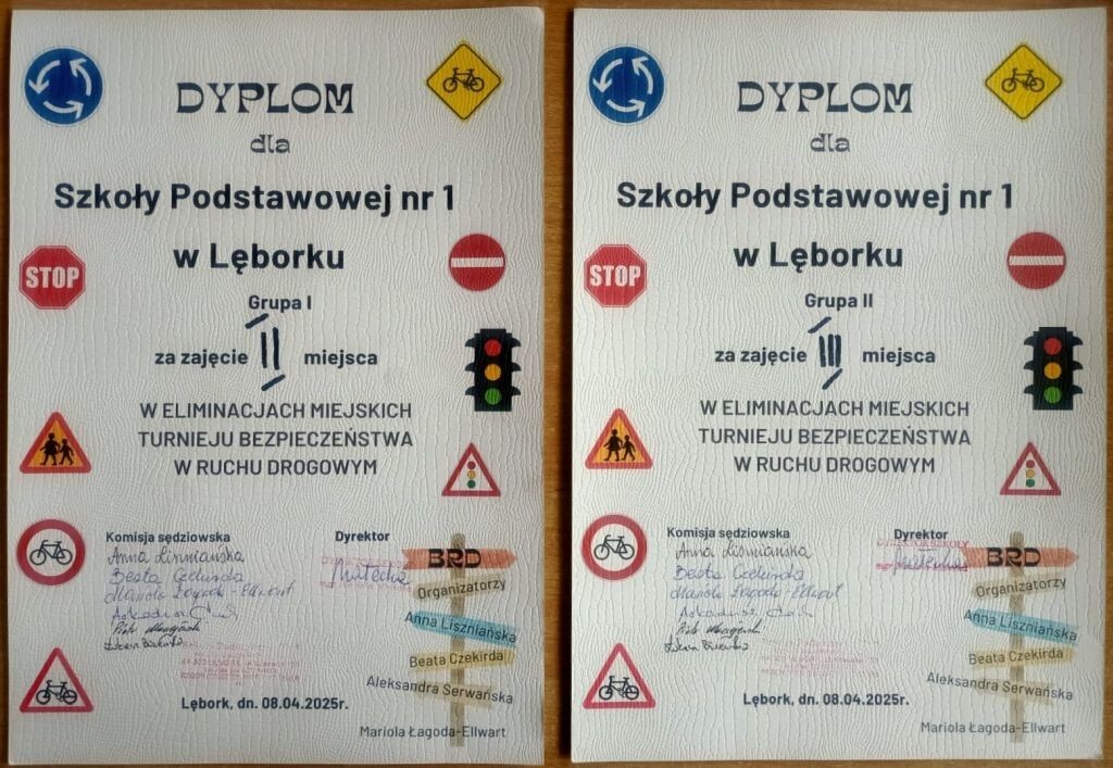 8 kwietnia 2025r. w Szkole Podstawowej nr 3 w Lęborku odbyły się eliminacje miejskie Ogólnopolskiego Turnieju BRD. Zawodnicy wystartowali w dwóch kategoriach wiekowych – I grupa – uczniowie klas 5, II grupa – uczniowie klas 6 i 7. Turniej składał się z 4 konkurencji: rozwiązywaniu testów dotyczących przepisów ruchu drogowego, jazdy rowerem w miasteczku komunikacyjnym i na torze przeszkód oraz udzielaniu pierwszej pomocy przedmedycznej. Naszą szkołę reprezentowali: