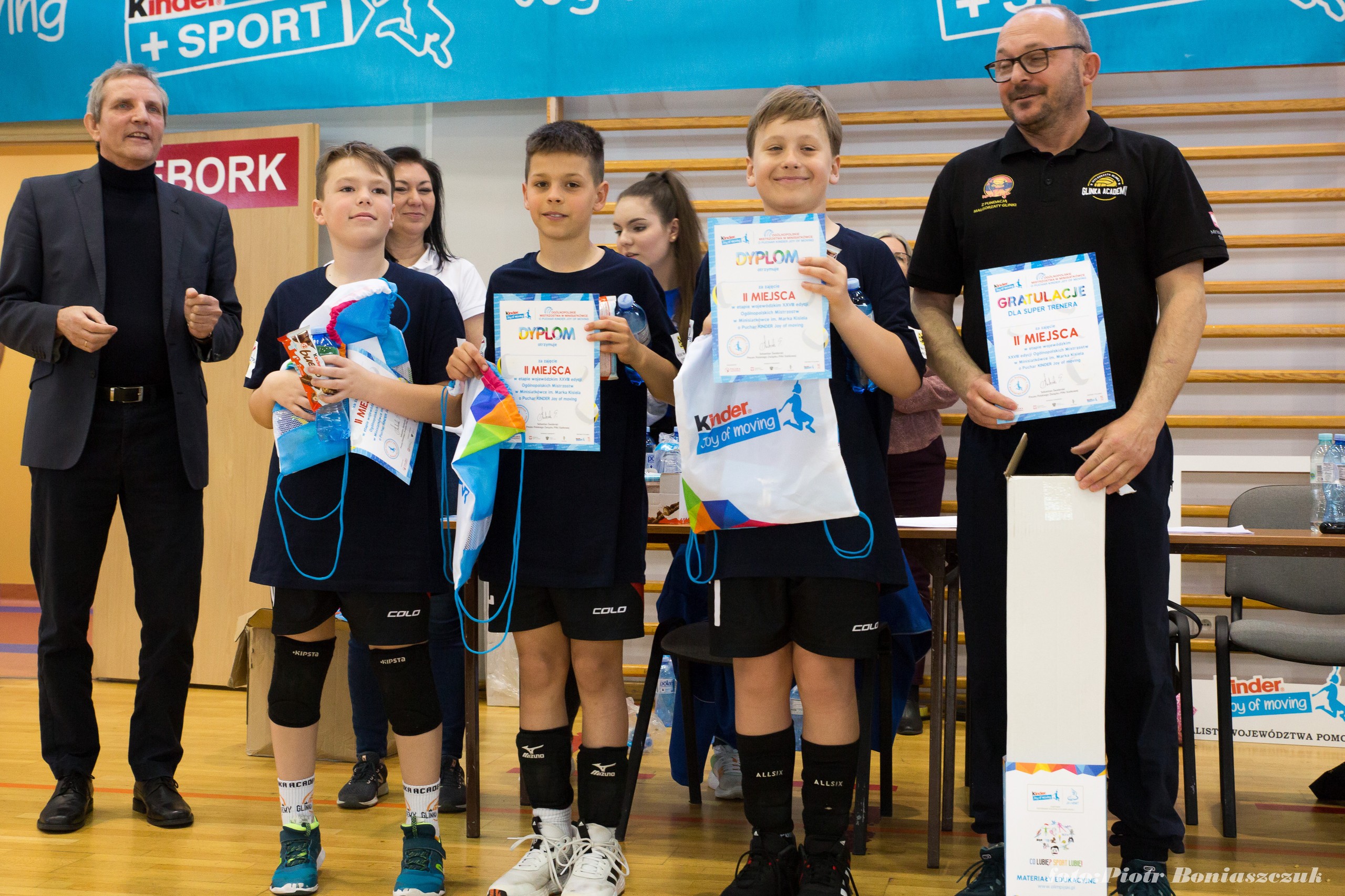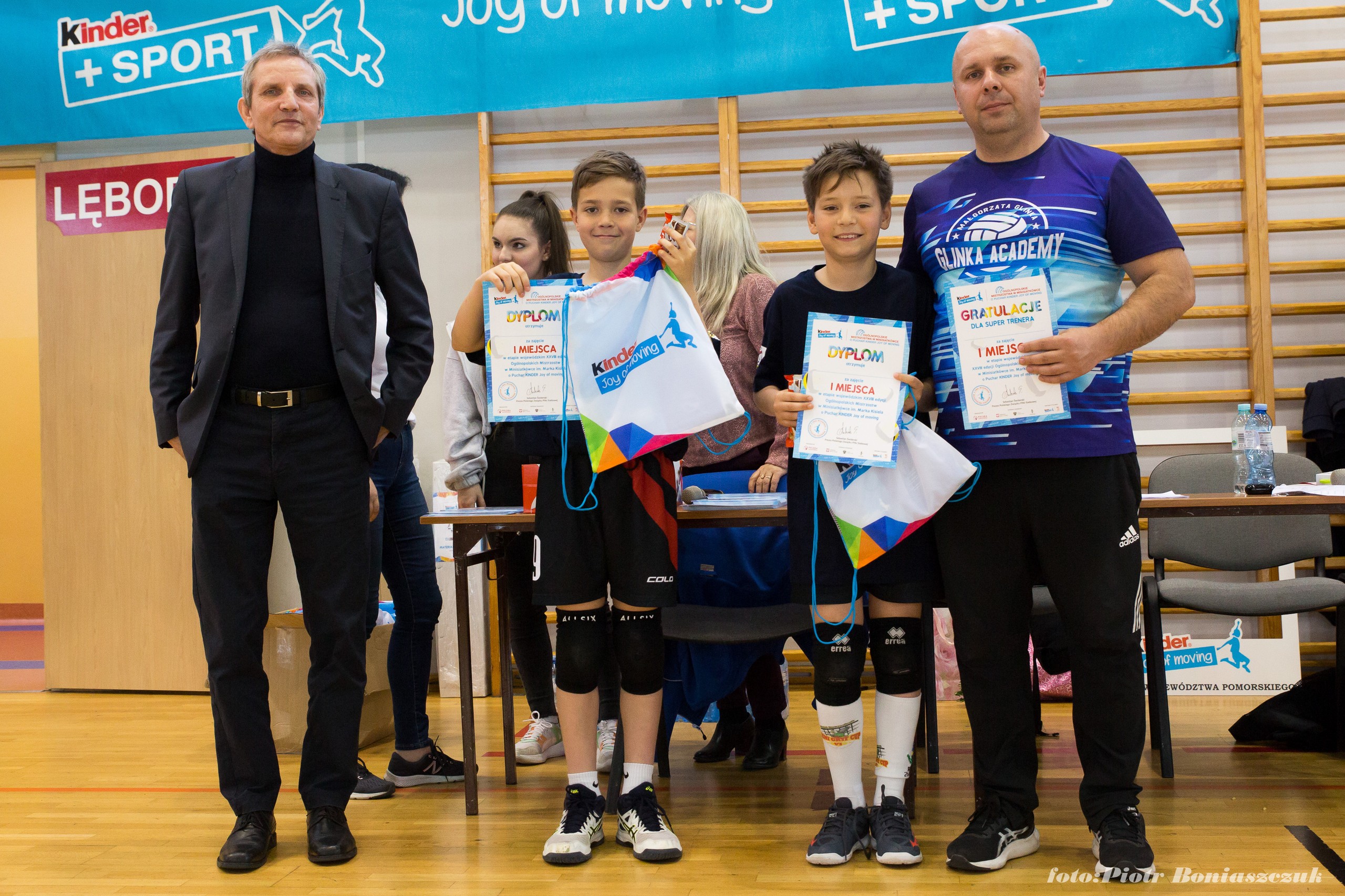 W sobotę ,14 maja , w hali miejskiej przy Szkole Podstawowej nr 7 w Lęborku odbył się finał wojewódzki rozgrywek mini siatkówki chłopców o Puchar Kinder Joy of Moving. Stawką turnieju był drugi bilet na Wielki Finał Ogólnopolski , który odbędzie się w 1-3.07.2022 w Arena Gliwice . Pierwszy bilet do finału ogólnopolskiego zdobyli wcześniej Michał Dawidowski i Szymon Zimnowoda, wygrywając rozgrywki ligowe . W finale uczestniczyło 6 najlepszych "dwójek" w woj. pomorskim. Dawid Burghardt, Oskar Jankowski, Maciej Winiarski spisali się doskonale . Chłopcy wygrali wszystkie swoje spotkania, nie tracąc nawet seta i pewnie wywalczyli awans .