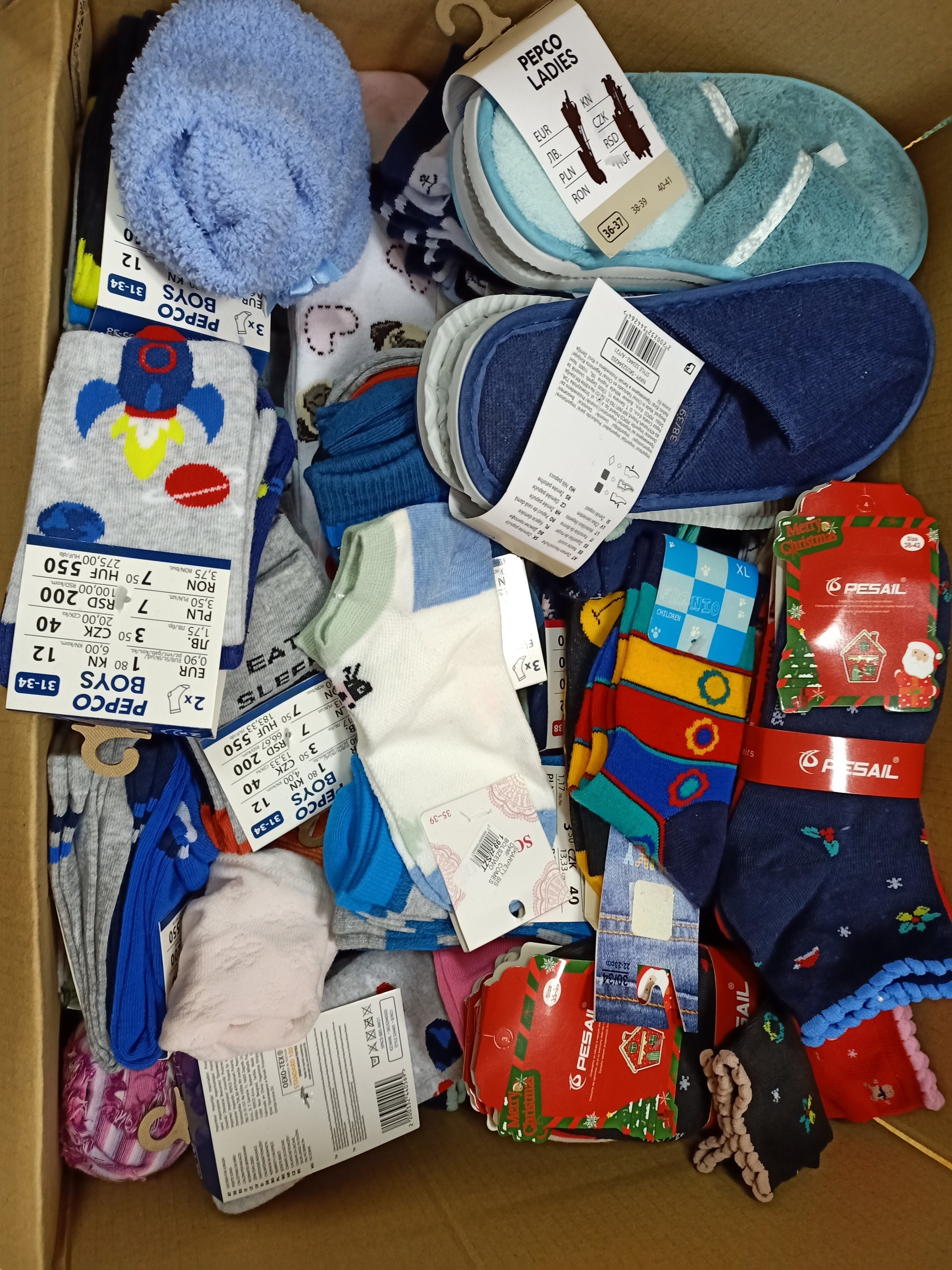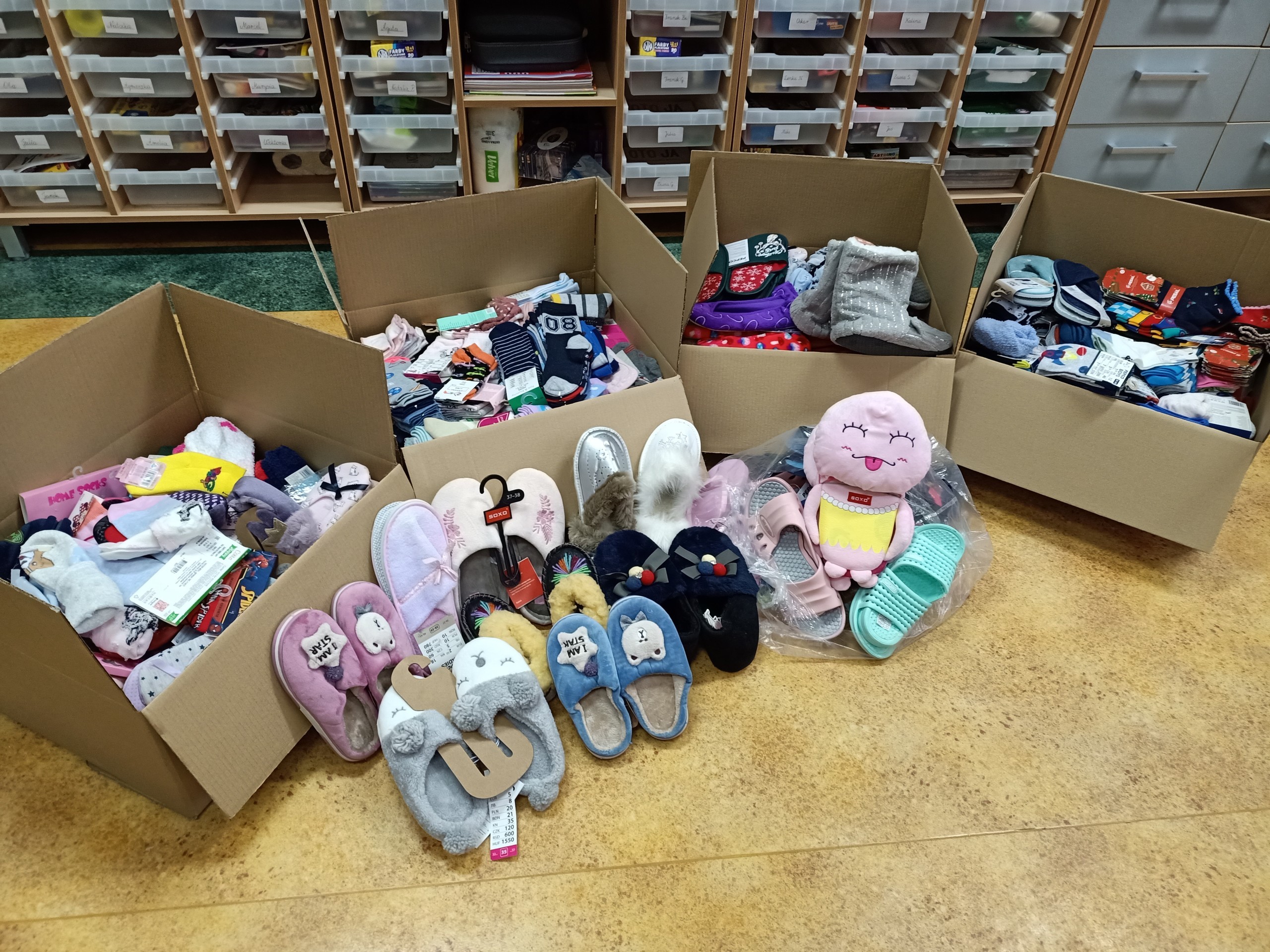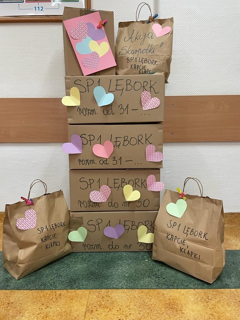 Razem udało się nam zebrać 775 par skarpet, 32 pary kapci oraz 9 par klapków.