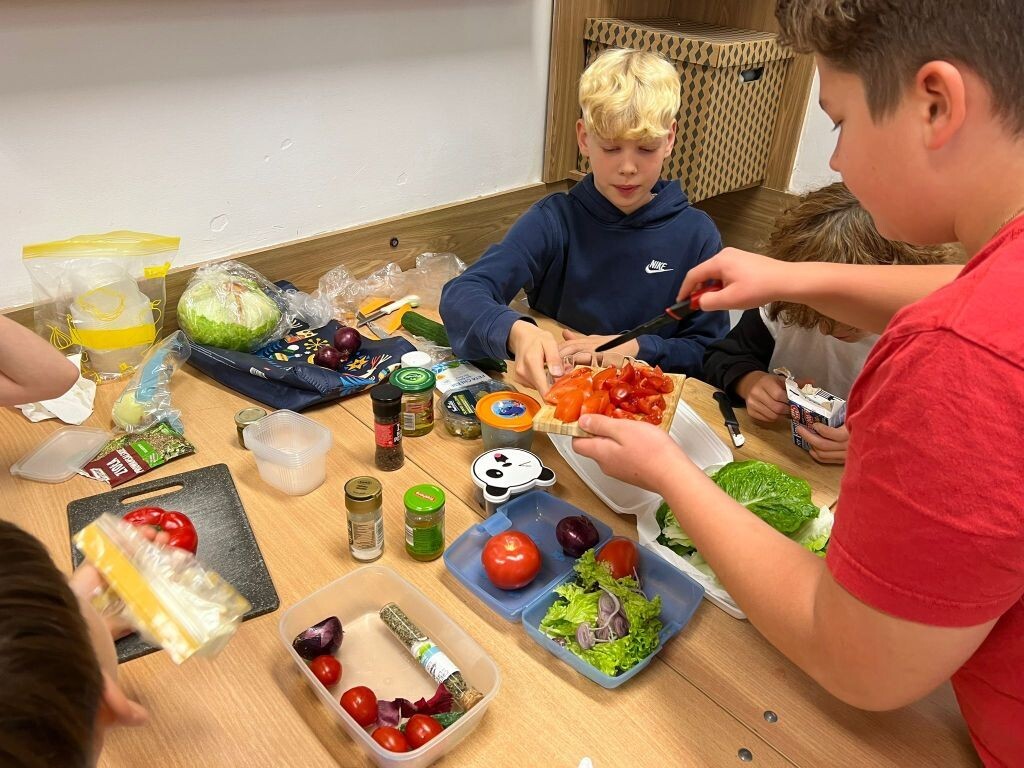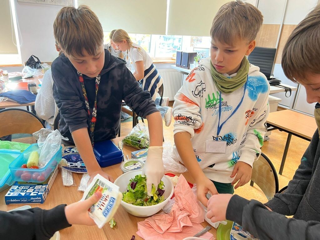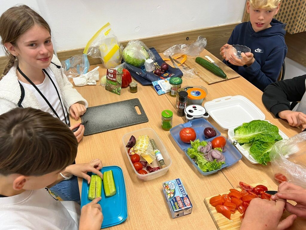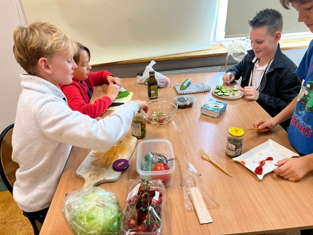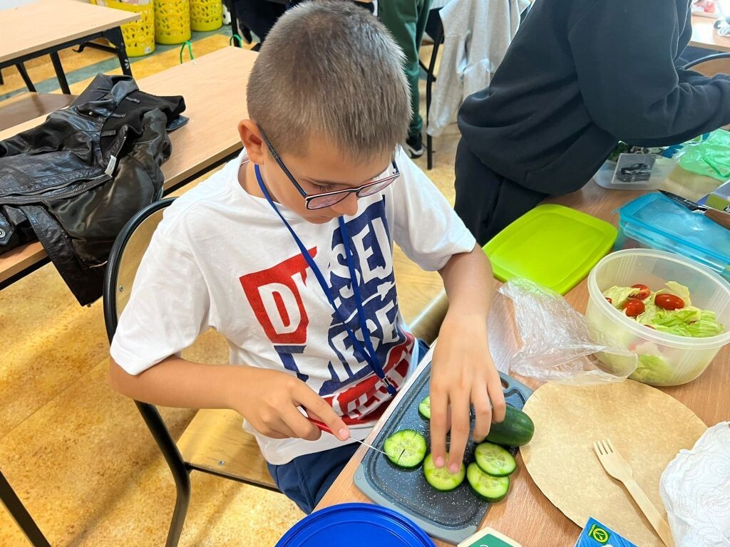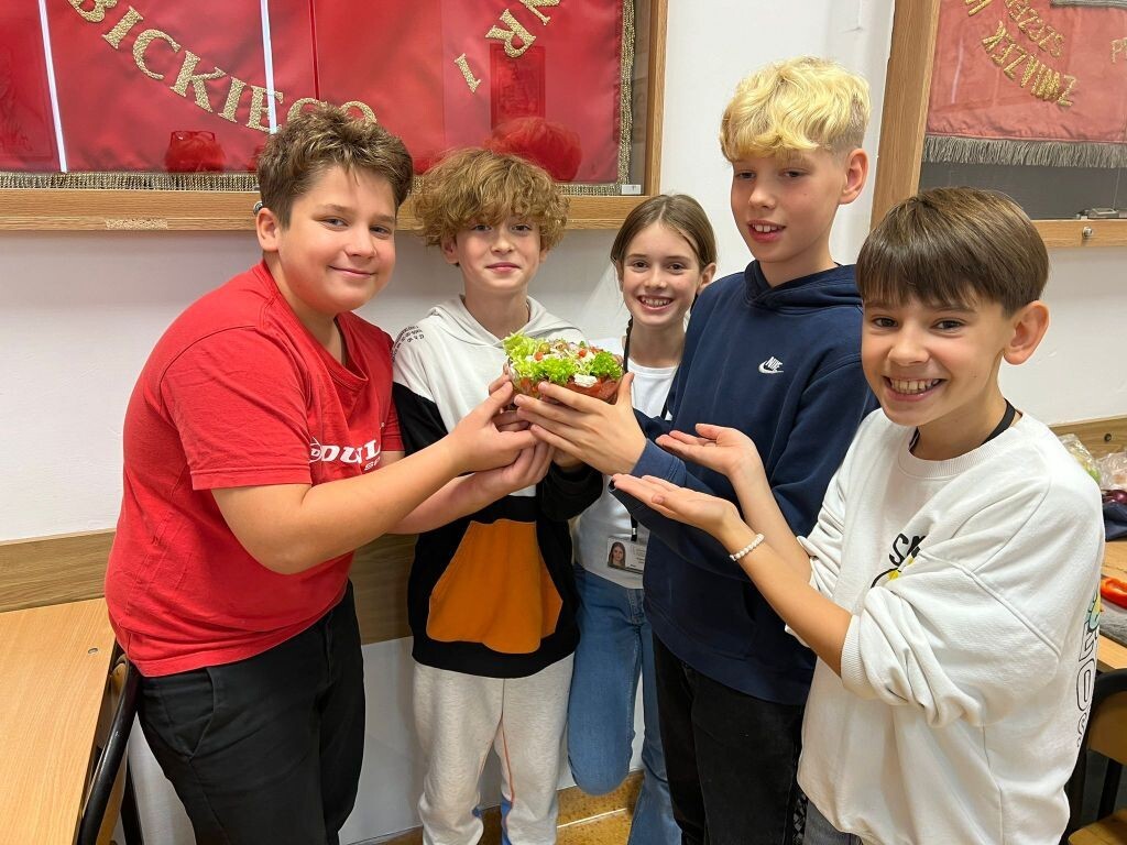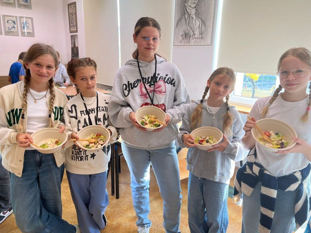 Omawiając dział o starożytnej Grecji, uczniowie klasy Va postanowili poznać smaki greckiej kuchni. Pyszna i zdrowa sałatka grecka w różnych wydaniach zagościła na uczniowskich talerzach. Uczniowie popisali się znajomością kulinarnych tajników kuchni. Nie zabrakło smacznych oliwek, dojrzałych pomidorów i ogórków, oliwy, świeżej sałaty oraz sera. Na koniec grupa uczniów odtańczyła grecką zorbę, co pozostali nagrodzili gromkimi brawami.