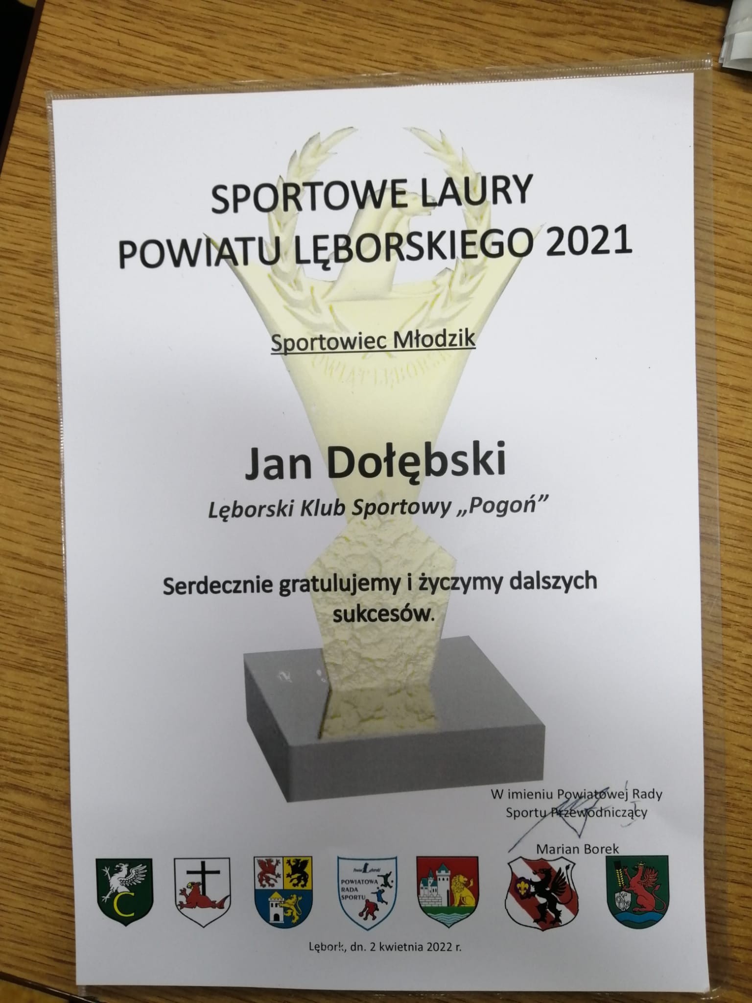 Michał Dawidowski i Szymon Zimnowoda z klasy IV c otrzymali wyróżnienie z rąk Starosty Lęborskiego Alicji Zajączkowskiej. W plebiscycie "Sportowe Laury Powiatu Lęborskiego" chłopcy zostali nominowani w kategorii Sportowe odkrycie roku . Nasi uczniowie w 2021 roku osiągali liczne sukcesy w rywalizacji w turniejach mini siatkówki na szczeblu ogólnopolskim . Jak widać, ich praca i osiągnięcia zostały docenione przez władzę powiatu lęborskiego.