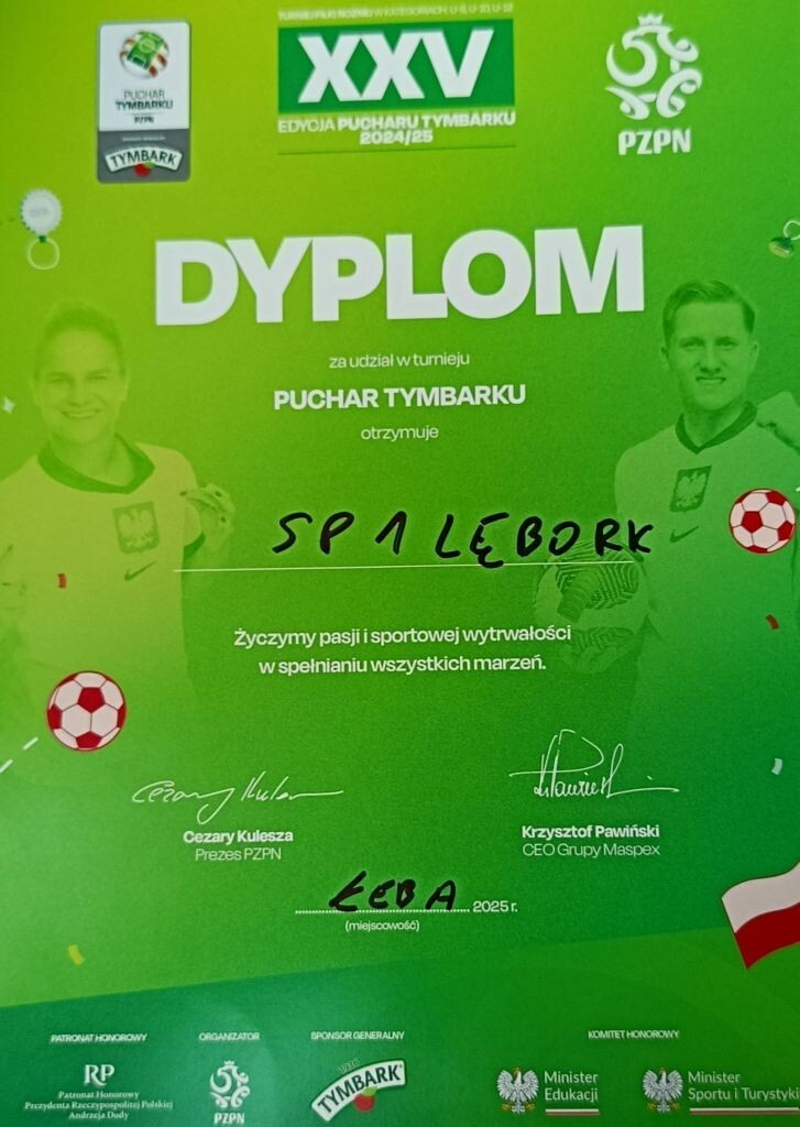 7 kwietnia br. w Łebie odbył się XXV Powiatowy Turniej o Puchar Tymbarku w kategorii wiekowej U-12 chłopców. W zawodach udział wzięło 5 drużyn. Nasza szkolna drużyna kolejno wygrywała 9:0 z NSP w Bukowinie, 11:0 z SP w Maszewie Lęborskim, 2:1 z SP w Nowej Wsi Lęborskiej oraz 7:4 z SP w Łebie. Opisane wygrane mecze oznaczają, że naszą drużynę czeka walka w wojewódzkim etapie turnieju, który odbędzie się w maju.