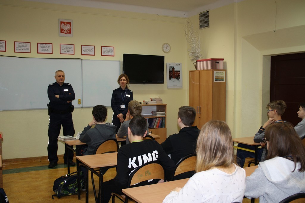 Starsi uczniowie rozmawiali na temat odpowiedzialności nieletnich w myśl ustawy o postępowaniu w sprawach nieletnich, cyberprzemocy, dyskryminacji oraz konsekwencjach mowy nienawiści. Funkcjonariusze rozmawiali także na temat roli świadka przemocy, tłumacząc jak ważne jest, aby zgłaszać osobom dorosłym niepokojące młodzież sytuacje.
