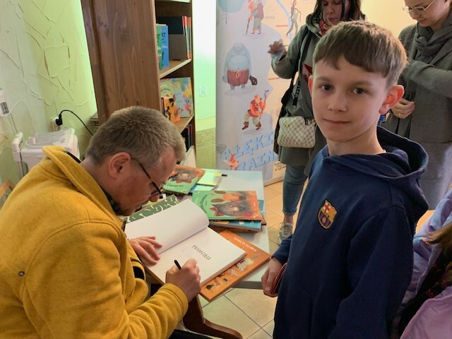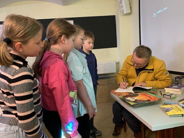 W środę – 8 maja br. – uczniowie klasy IIId uczestniczyli w spotkaniu z panem Marcinem Koziołem. Było to już trzecie (i mamy nadzieję, że nie ostatnie!) spotkanie uczniów naszej szkoły z tym sympatycznym autorem książek dla dzieci. Autor zaprezentował dzieciom swoje najnowsze książki. Są to: „Mona Mysia”, „Malinka, Wombat i Klops”, „Malinka, Wombat i Kangurek”. Bardzo popularne są również wcześniejsze książki takie jak: „Skrzynia Władcy Piorunów”, będąca lekturą w klasie VI, jak również seria o Wombacie Maksymilianie i wiele innych. Po spotkaniu można było nabyć książki autora z pamiątkowym autografem.