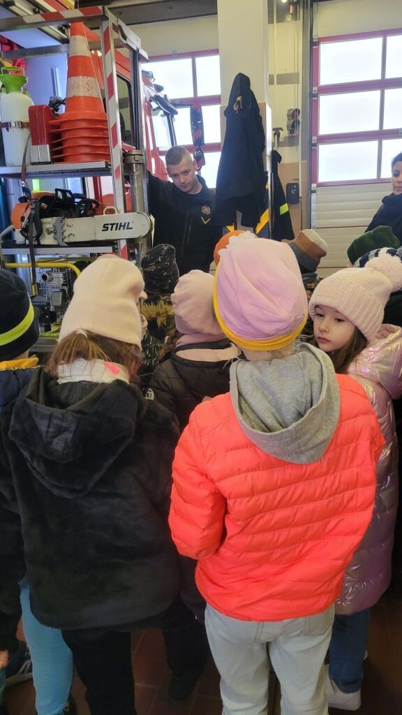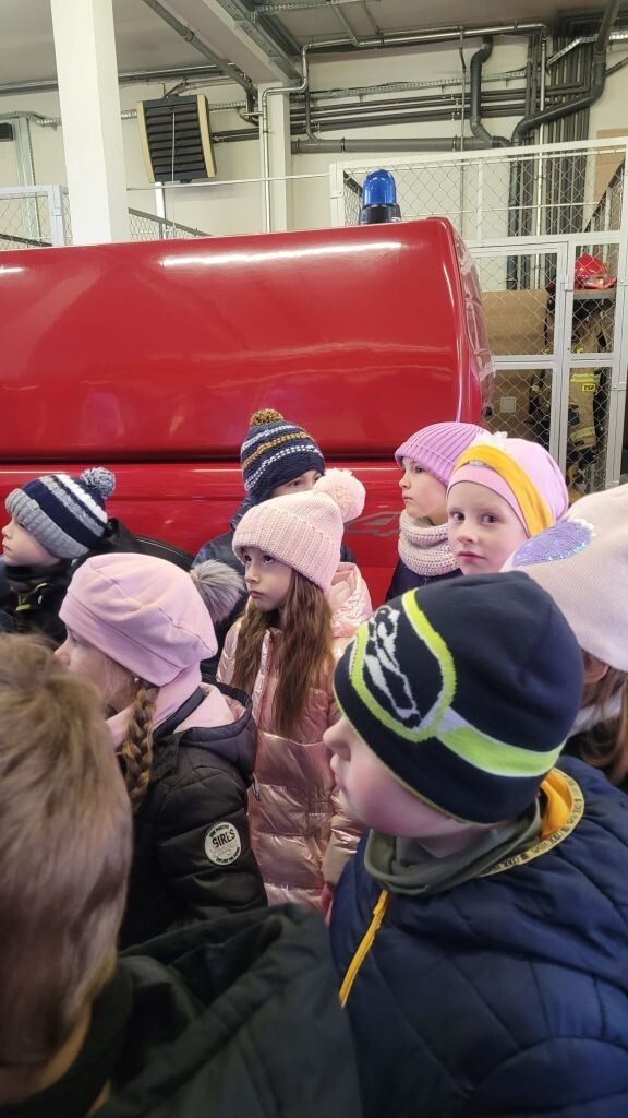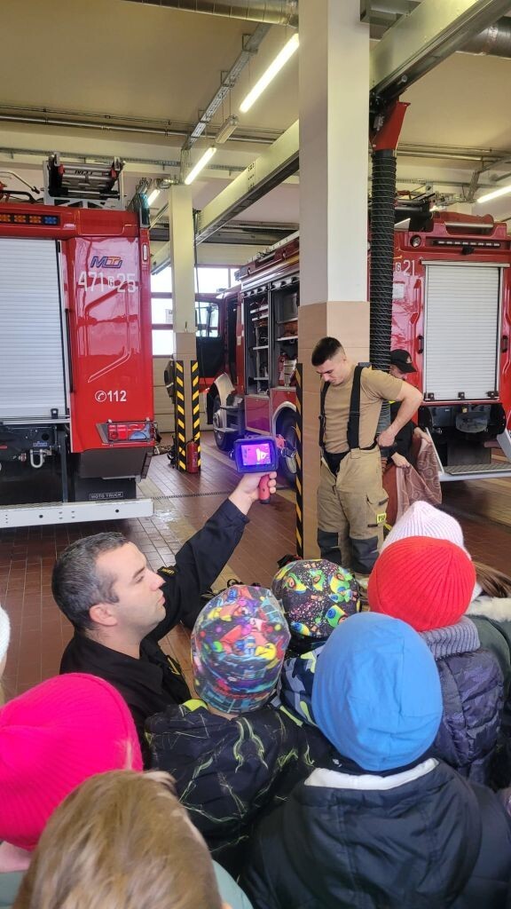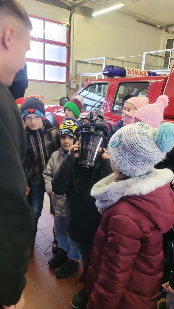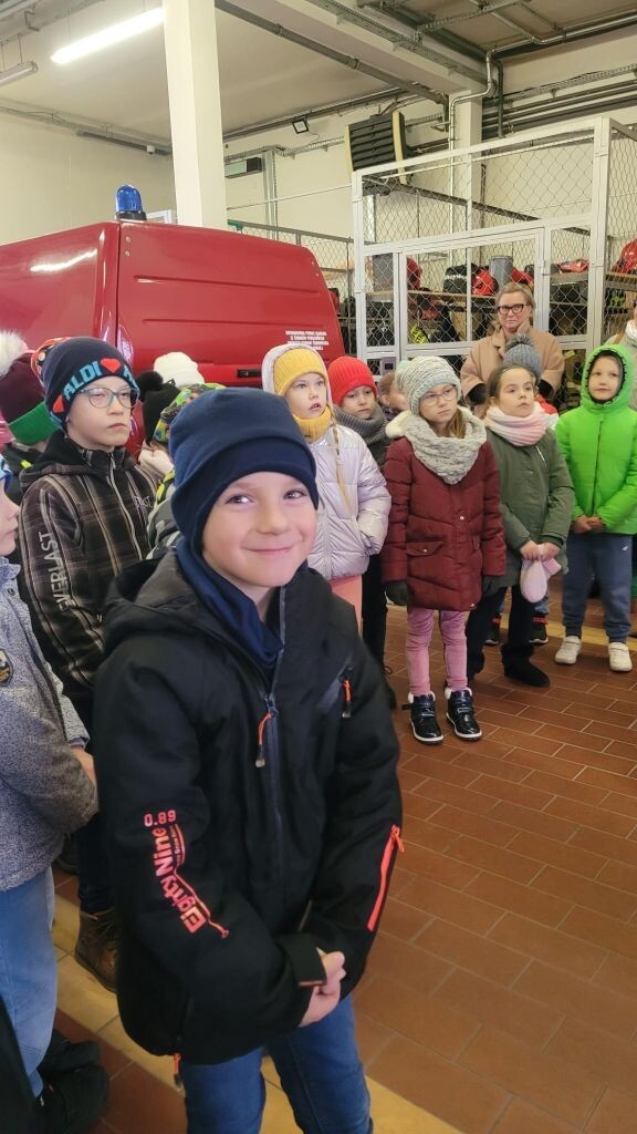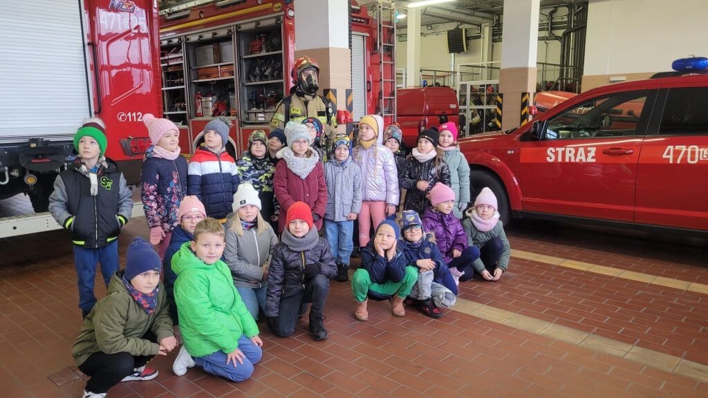 16 listopada br. pierwszoklasiści udali się do siedziby Komendy Powiatowej Państwowej Straży Pożarnej w Lęborku, która przyjęła nasze zaproszenie w ramach programu Otwarta firma. Dla siedmiolatków była to wyjątkowa lekcja . Uczniowie dowiedzieli się wielu cennych informacji na temat niełatwej pracy strażaków – np., że w przypadku zgłoszenia pożaru panowie mają minutę czasu na przebranie się… Muszą również ćwiczyć, żeby być w formie. Strażacy zaprezentowali strój używany podczas akcji oraz kamerę, która pozwala na szybkie odnalezienie człowieka bądź zwierzęcia w pomieszczeniu o bardzo dużym zadymieniu. W pracy strażaka bardzo ważne jest dbanie o porządek i odkładanie sprzętów na miejsce. Oprócz wozów strażackich, komenda posiada również motorówkę oraz łódź i każda z nich służy do oddzielnej akcji na morzu i nad jeziorem.