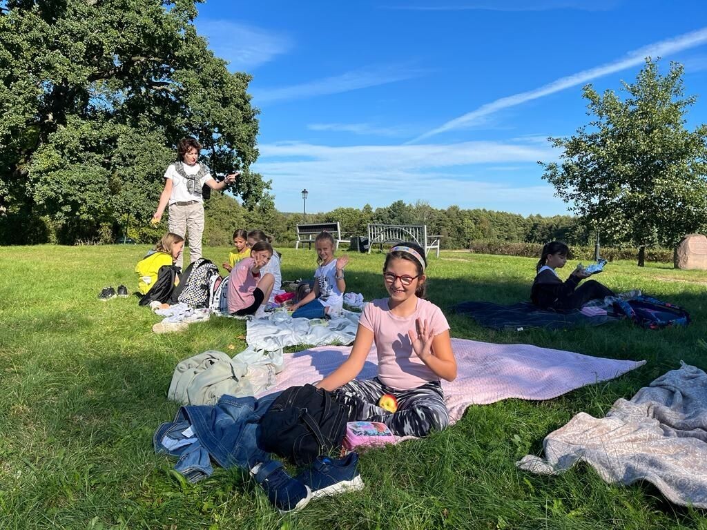 W będomińskim parku nie zabrakło również chwili relaksu. Gdy jedna z grup zwiedzała muzeum, druga uczestniczyła w pikniku. Chwila odpoczynku na kocykach pozwoliła zrelaksować się i skorzystać z uroku prawdziwie wakacyjnej pogody i wspólnego wyjazdu