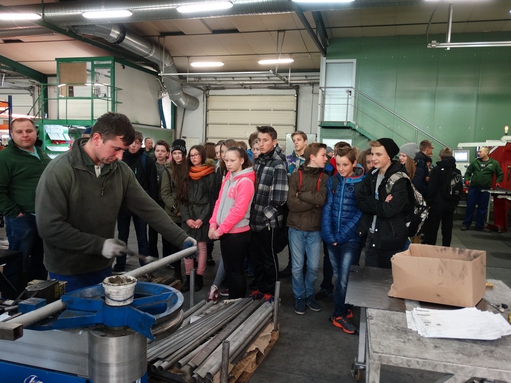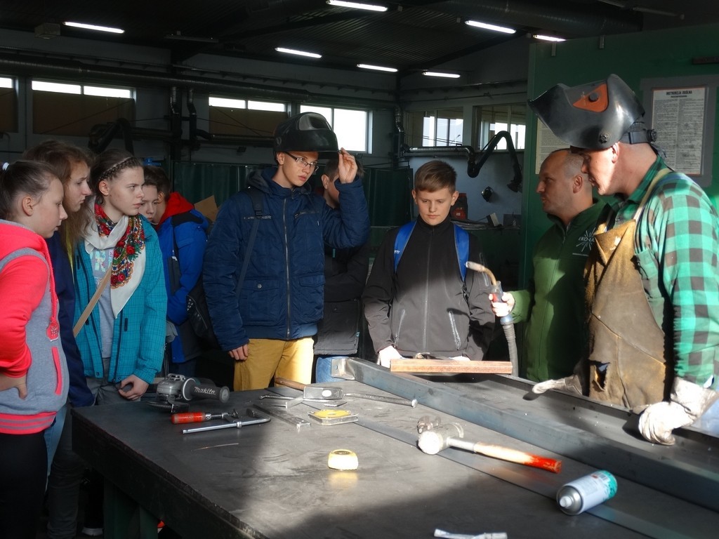 Gimnazjaliści zobaczyli na czym polega cięcie stali za pomocą lasera, gięcie elementów, praca robota spawalniczego, wykonywanie gwintów wewnętrznych, czyszczenie elementów ze stali czarnej i nierdzewnej oraz poznali sposoby zabezpieczania powierzchni wykonanych z tych gatunków stali.