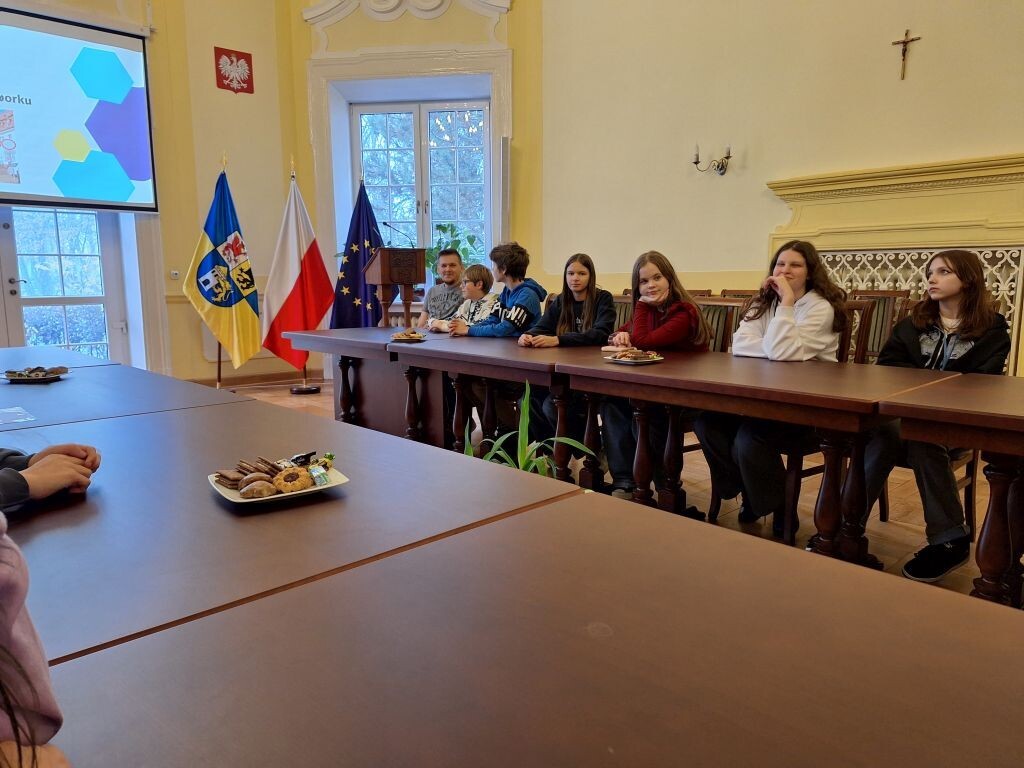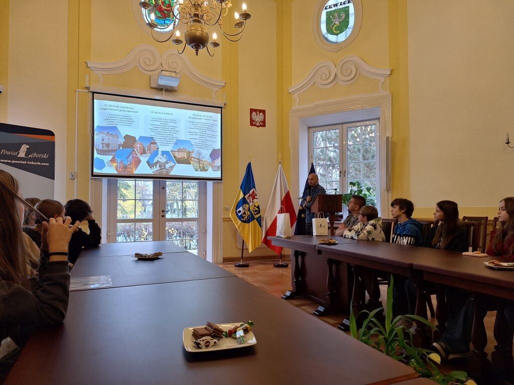 W ubiegły czwartek, 21 listopada w ramach projektu Otwarta firma uczniowie klasy 7a pod opieką wychowawcy udali się z wizytą do Starostwa Powiatowego w Lęborku. Na miejscu uczestników wycieczki powitał starosta lęborski , pan Tomasz Litwin, który opowiedział młodzieży o obowiązkach wynikających z pełnionej przez siebie funkcji oraz zapoznał ze specyfiką pracy w urzędzie. Następnie uczniowie spotkali się z panem Krystianem Kuczyńskim, inspektorem Wydziału Edukacji i Spraw Społecznych, który przybliżył uczniom zadania poszczególnych jednostek urzędu. Po tym ciekawym wykładzie pracownicy placówki oprowadzili siódmoklasistów po różnych gabinetach urzędów, by mogli oni lepiej poznać miejsca, w których na co dzień pracują urzędnicy. Uczniowie mieli możliwość zadawania pytań dotyczących załatwiania spraw urzędowych i obowiązujących na terenie starostwa procedur. Nie zabrakło też słodkiego poczęstunku oraz upominków , którymi zostali obdarowani przyszli petenci starostwa. Z pewnością ta wizyta w przyszłości ułatwi uczniom załatwienie wielu życiowych spraw.