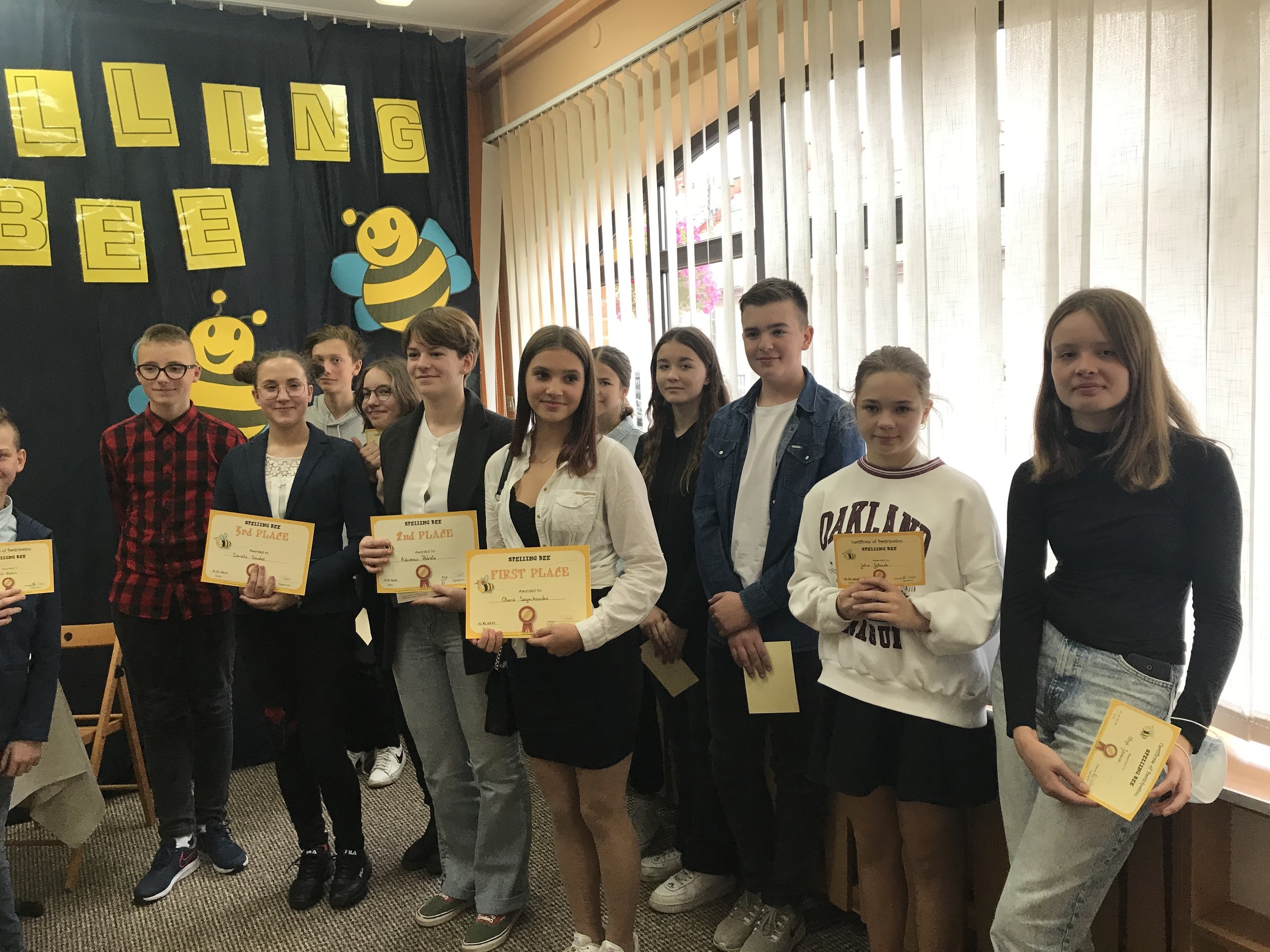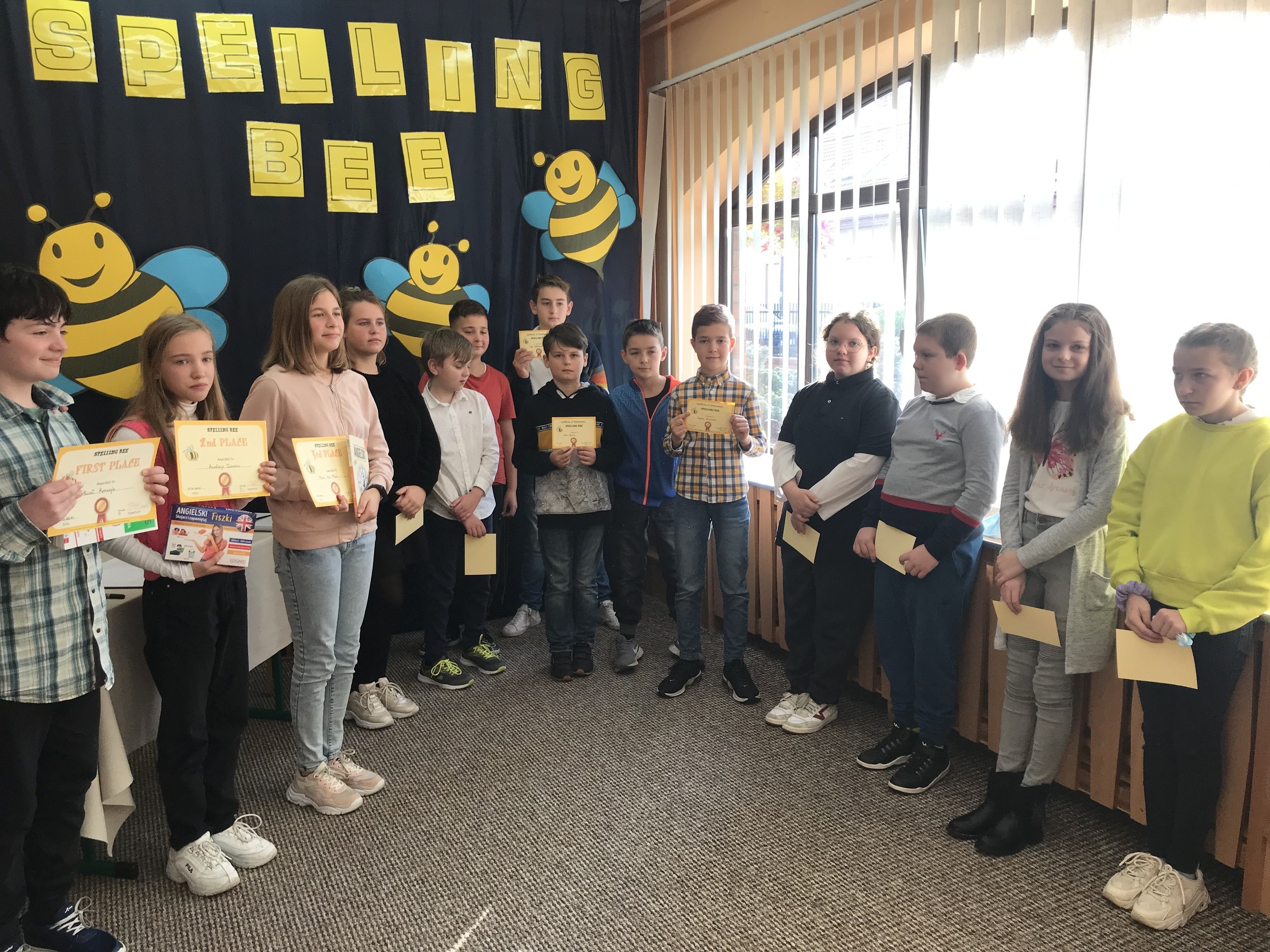 W piątek - 15 października - siedmioro uczniów naszej szkoły wzięło udział w konkursie powiatowym „Spelling Bee”, zorganizowanym przez Społeczną Językową Szkołę Podstawową w Lęborku. Konkurs polegał na poprawnym i płynnym literowaniu słów w języku angielskim. Uczniowie konkurowali w czterech kategoriach wiekowych. Z przyjemnością informujemy, że uczeń klasy 2b - Oskar Piotrzkowski został zwycięzcą w swojej kategorii wiekowej, pokonując aż ośmiu konkurentów. Gratulujemy uczniowi tak spektakularnego zwycięstwa.