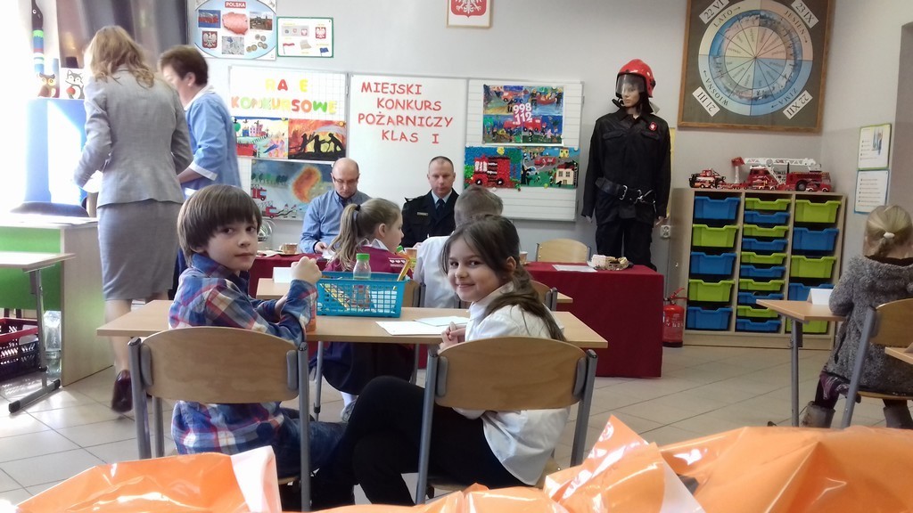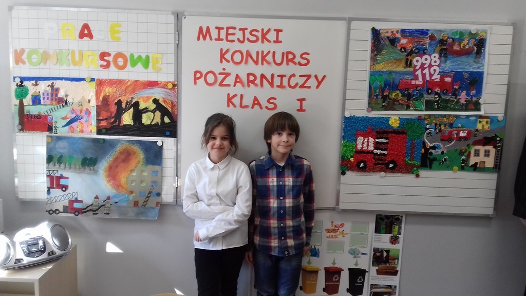 Zadaniem uczestników było rozwiązywanie zadań z zakresu wiedzy przeciwpożarowej, pracy i działalności Straży Pożarnej, bezpiecznych zachowań w czasie zagrożenia oraz znajomości książki “Jak Wojtek został strażakiem”. Miło nam poinformować, że nasza drużyna w składzie: Paulina Klasa z klasy Ib oraz Aleksander Szewczyk z klasy Ia zajęła II miejsce, wykazując się dużą wiedzą w wymaganym zakresie.