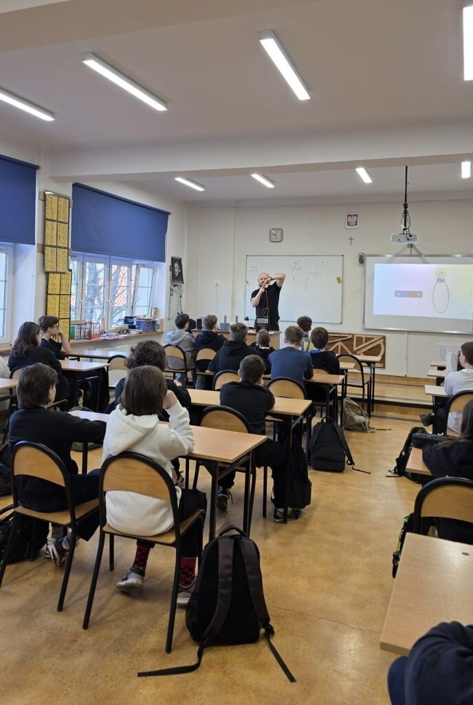 13 marca w naszej szkole pojawili się wyjątkowi goście, którzy przeprowadzili warsztaty w ramach projektu pod nazwą: „Sukcesu nie mierzy się oceną". Uczniowie młodszych klas uczestniczyli w zajęciach z matematyki mentalnej, na których ćwiczyli koncentrację, logiczne myślenie i szybkie liczenie w pamięci, które poprowadziła pani Aleksandra Mrzygłocka. Uczniowie klas 6-8 na zajęciach z fizyki poznawali zasadę działania elektrowni węglowych i jądrowych, ich wpływ na środowisko oraz korzyści i zagrożenia wynikające z ich stosowania. Te zajęcia poprowadził pan Ignacy Rejmak. Nad całością warsztatów czuwała pani Natalia Zarańska.