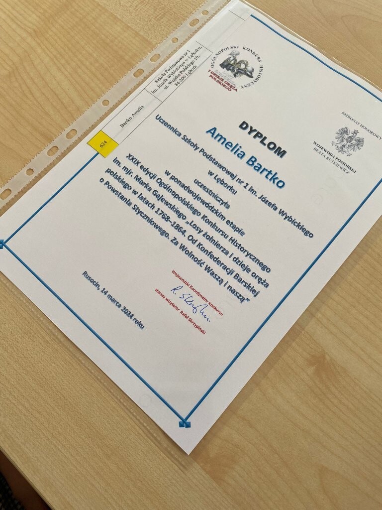 14 marca br. w Rusocinie odbył się etap wojewódzki konkursu historycznego. Nasi uczniowie od września przygotowywali się do wzięcia udziału w finale. Miło nam zakomunikować, że Amelia Bartko (VIa) i Marcel Rzoska (Va) uzyskali tytuł Laureata konkursu. Gratulujemy zaangażowania i mamy nadzieję, że to początek waszej przygody z historią.