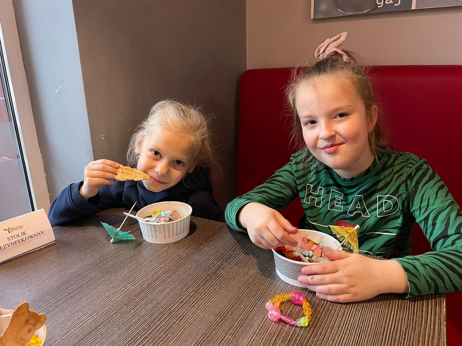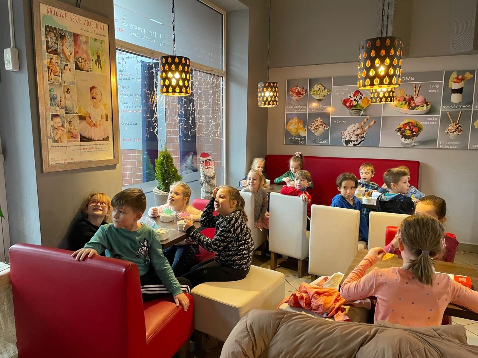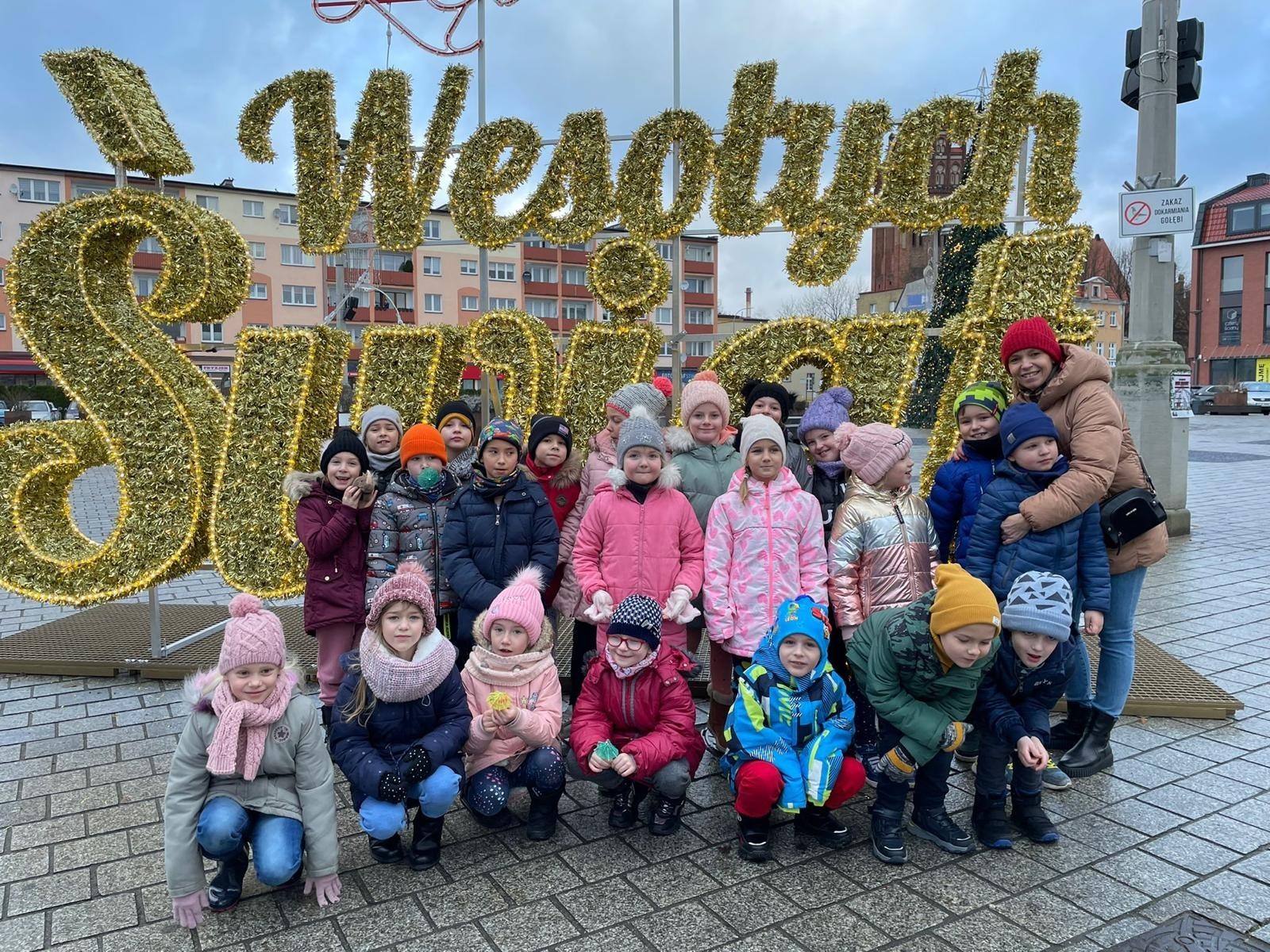 Uczniowie klasy Ib, jak zapewne każdy z nas, z niecierpliwością czekają na zbliżające się święta. W miniony czwartek wybrali się na przedświąteczny spacer po Lęborku, by sprawdzić, czy miasto jest już odpowiednio przygotowane do świąt. Okazało się, że ulice Lęborka są pięknie przystrojone kolorowymi światełkami, na Placu Pokoju stoi imponująca, świetlista choinka, a obok niej znajduje się ogromny napis: Wesołych Świąt. Pierwszaki natychmiast postanowiły uwiecznić ten moment, robiąc sobie pamiątkową fotografię. Wraz z panią Anią, swoją wychowawczynią, a także jednym z rodziców, dzieci ochoczo spacerowały, podziwiając uroki ulicy Staromiejskiej. Gdy już trochę przemarzły, postanowiły zawitać do Coktail Baru na słodki, energetyczny deserek. Najedzone , szczęśliwe i pełne wrażeń wróciły do szkoły. Tam dalej myślały o tym, co jeszcze można zrobić, by jak najlepiej przygotować się do świąt.