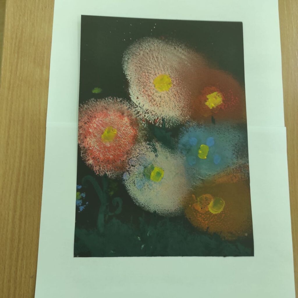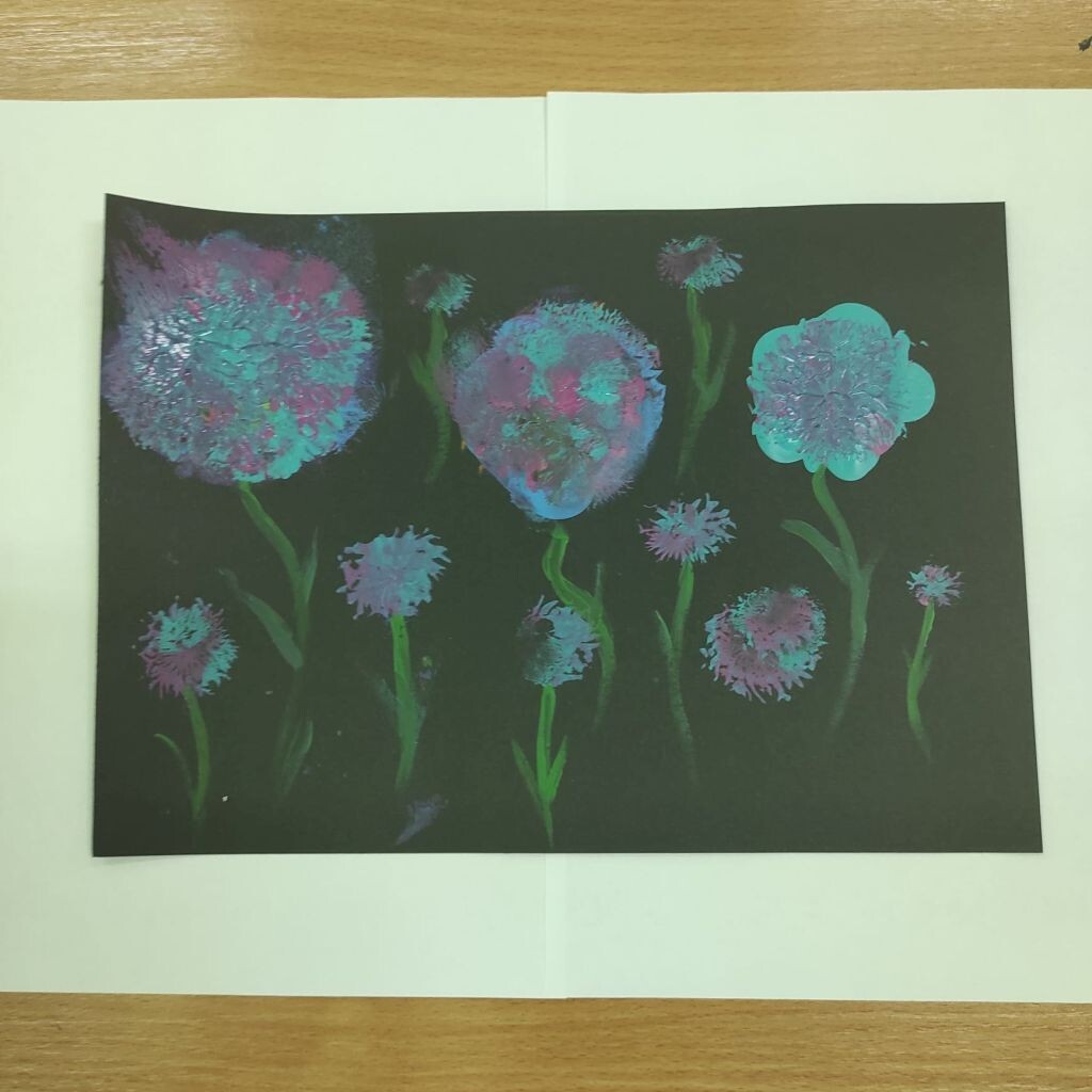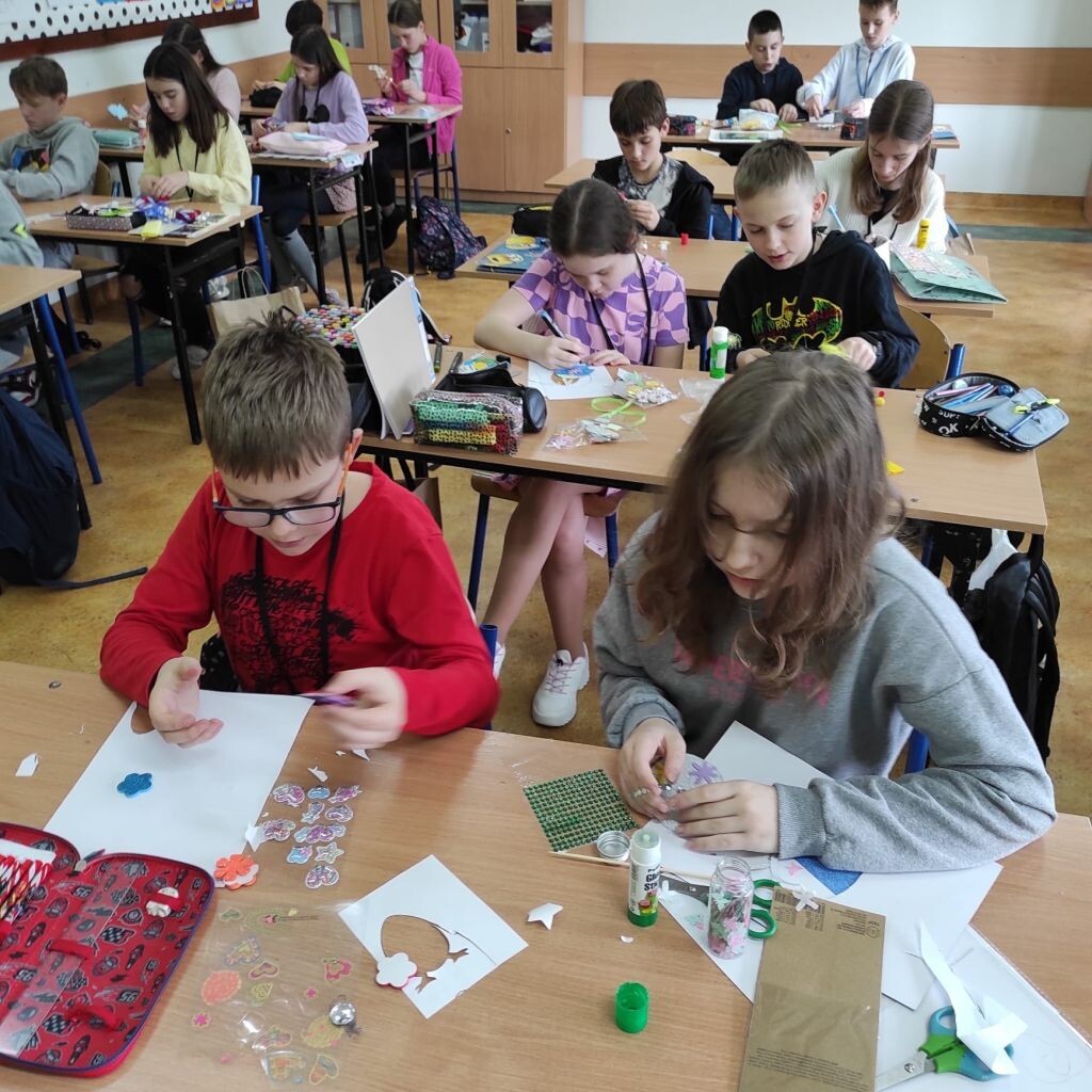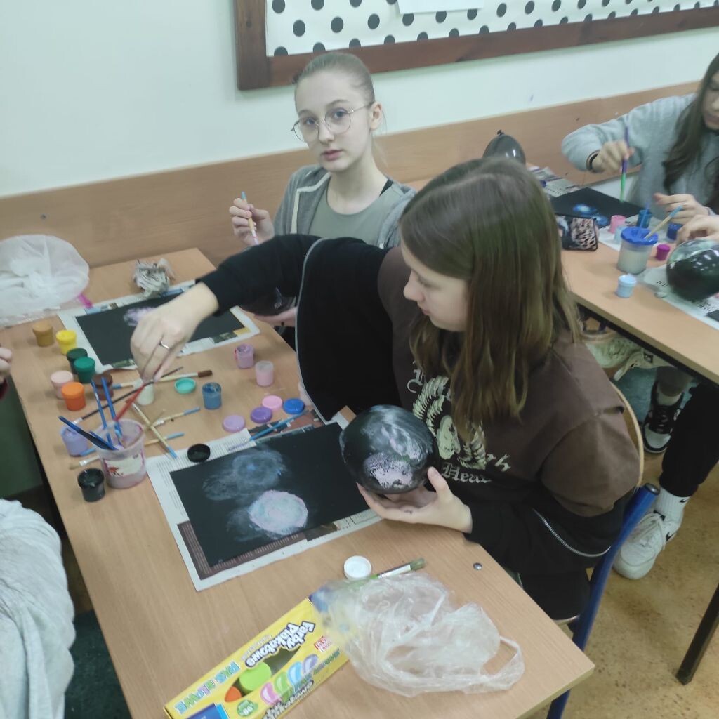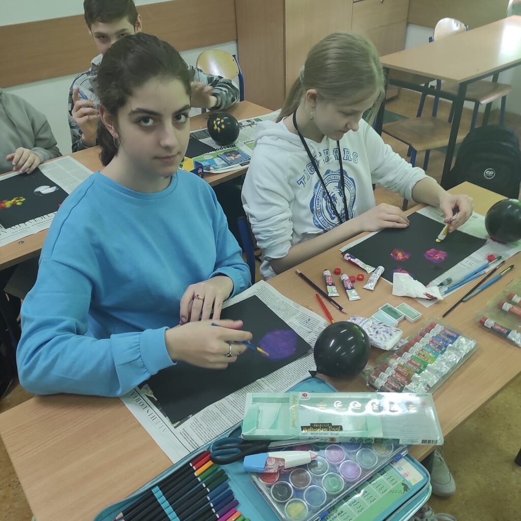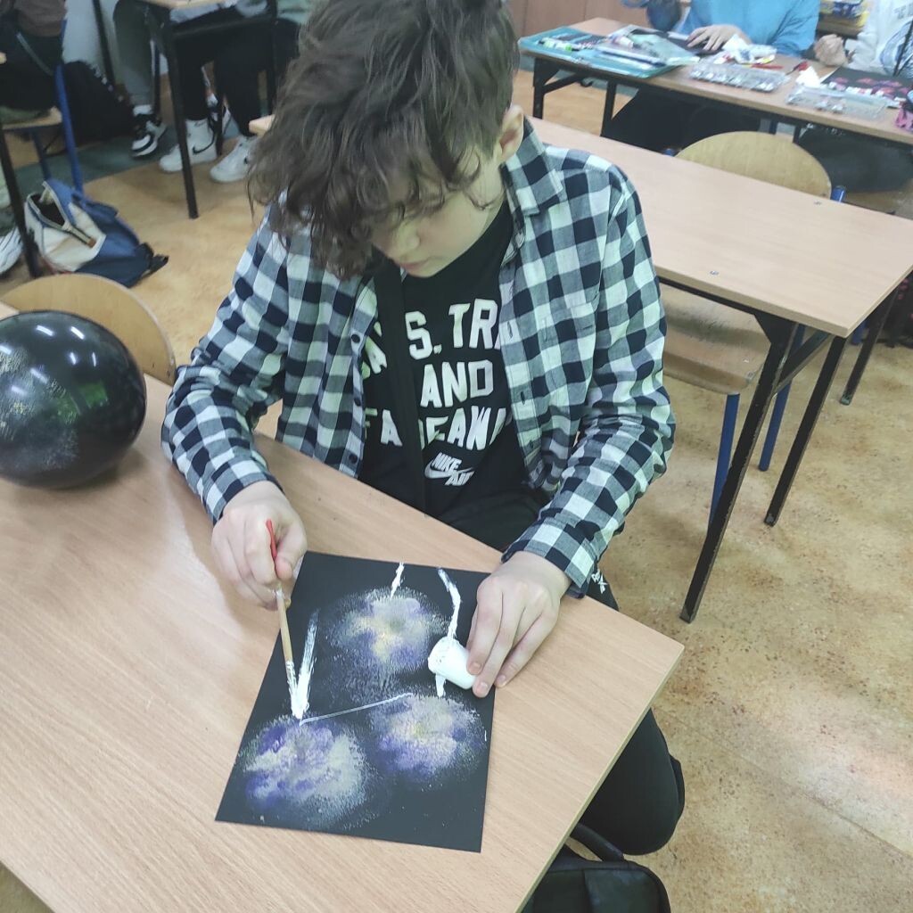 Zbliżające się święta wielkanocne stały się inspiracją dla uczniów klasy 4b i 5a - uczniowie wykonali ciekawe ozdoby świąteczne na patyku. Klasa 6a stworzyła kompozycje wiosennych kwiatów. Prace malarskie powstały bez użycia pędzla, który zastąpiony został balonikiem… Powstały efektowne prace.