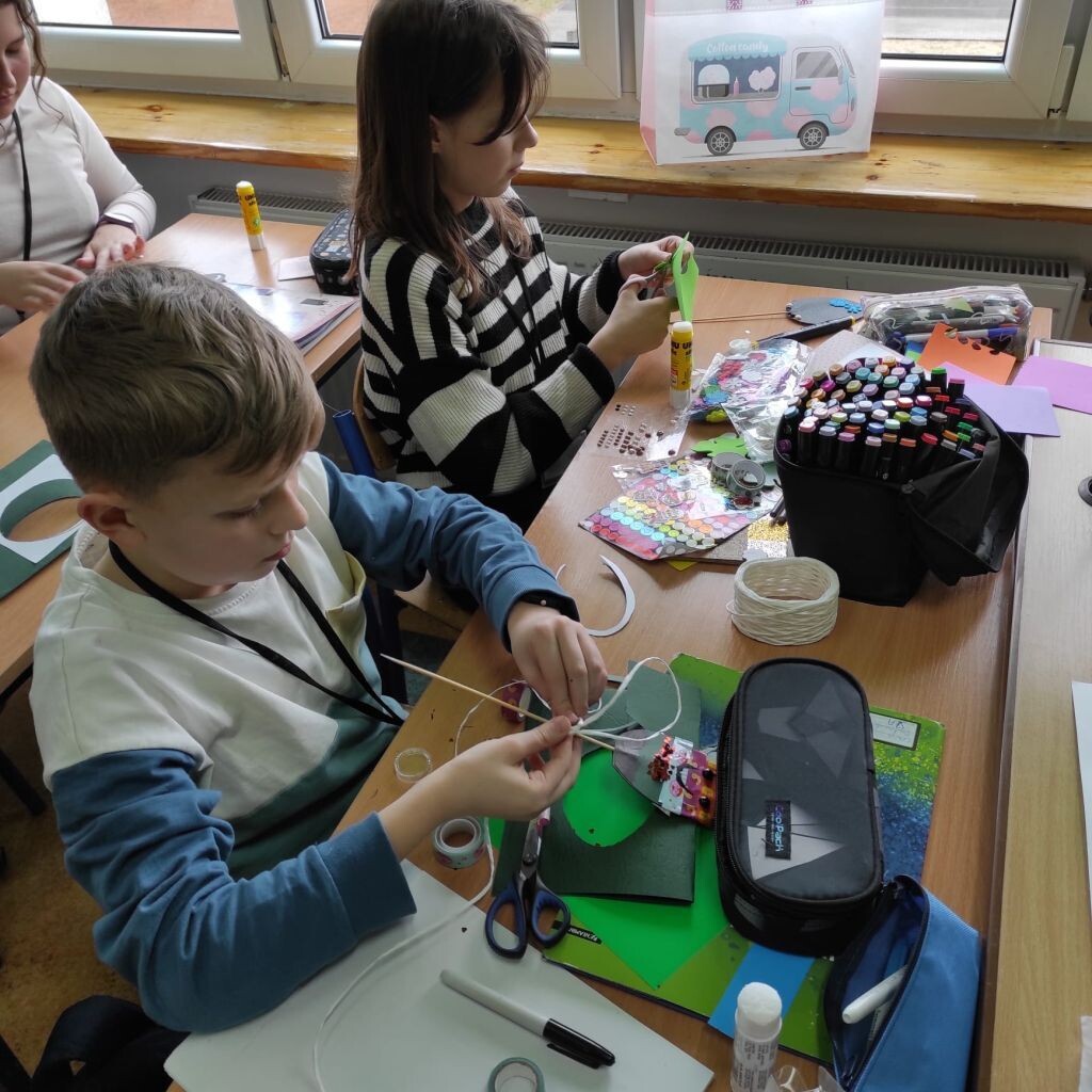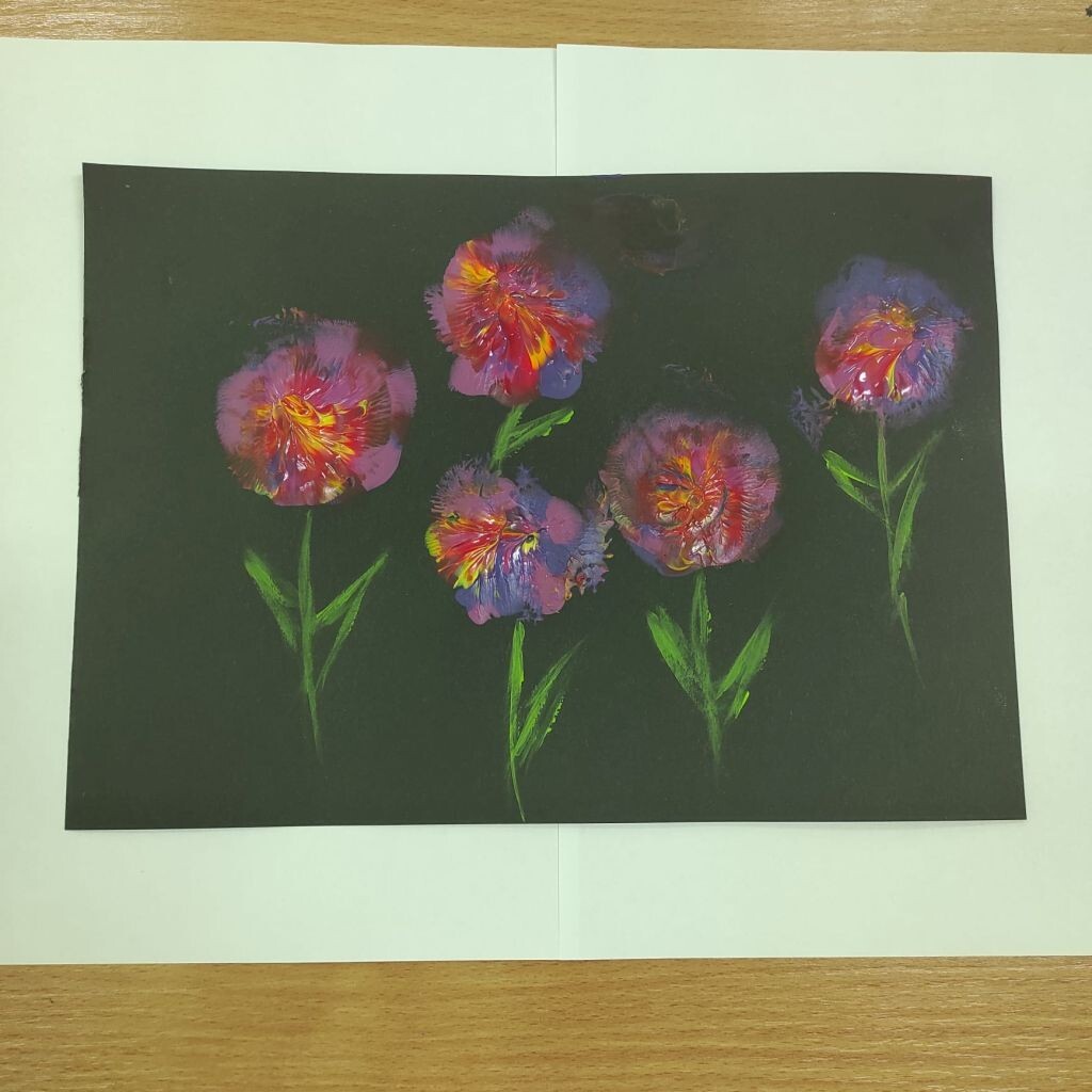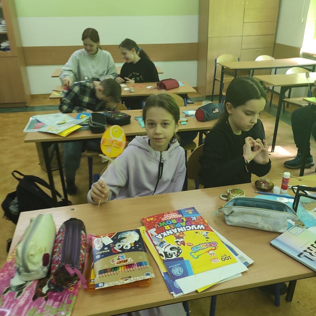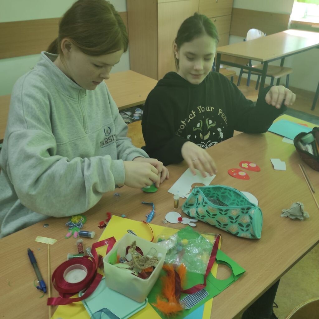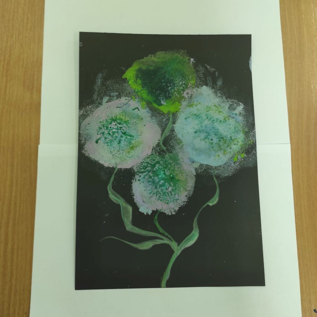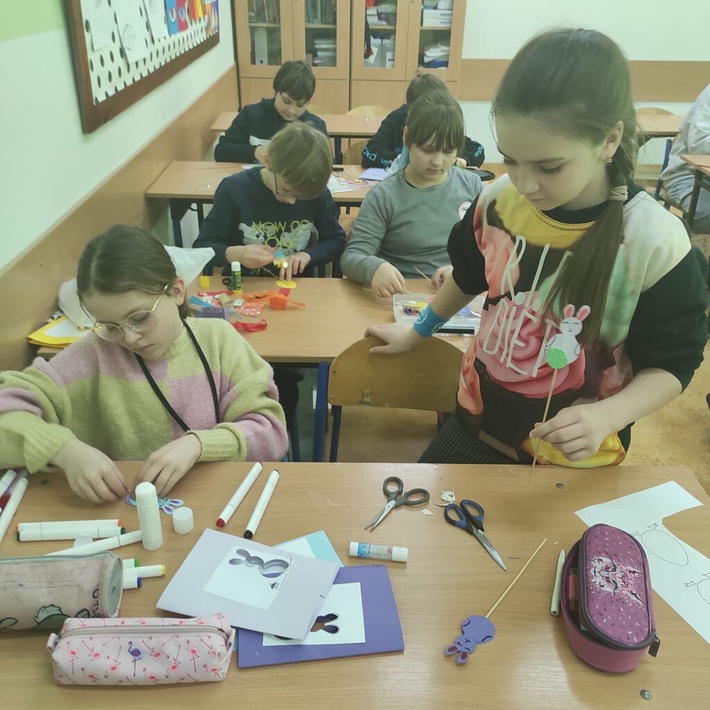 Zbliżające się święta wielkanocne stały się inspiracją dla uczniów klasy 4b i 5a - uczniowie wykonali ciekawe ozdoby świąteczne na patyku. Klasa 6a stworzyła kompozycje wiosennych kwiatów. Prace malarskie powstały bez użycia pędzla, który zastąpiony został balonikiem… Powstały efektowne prace.