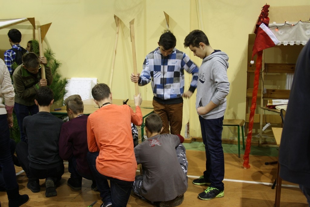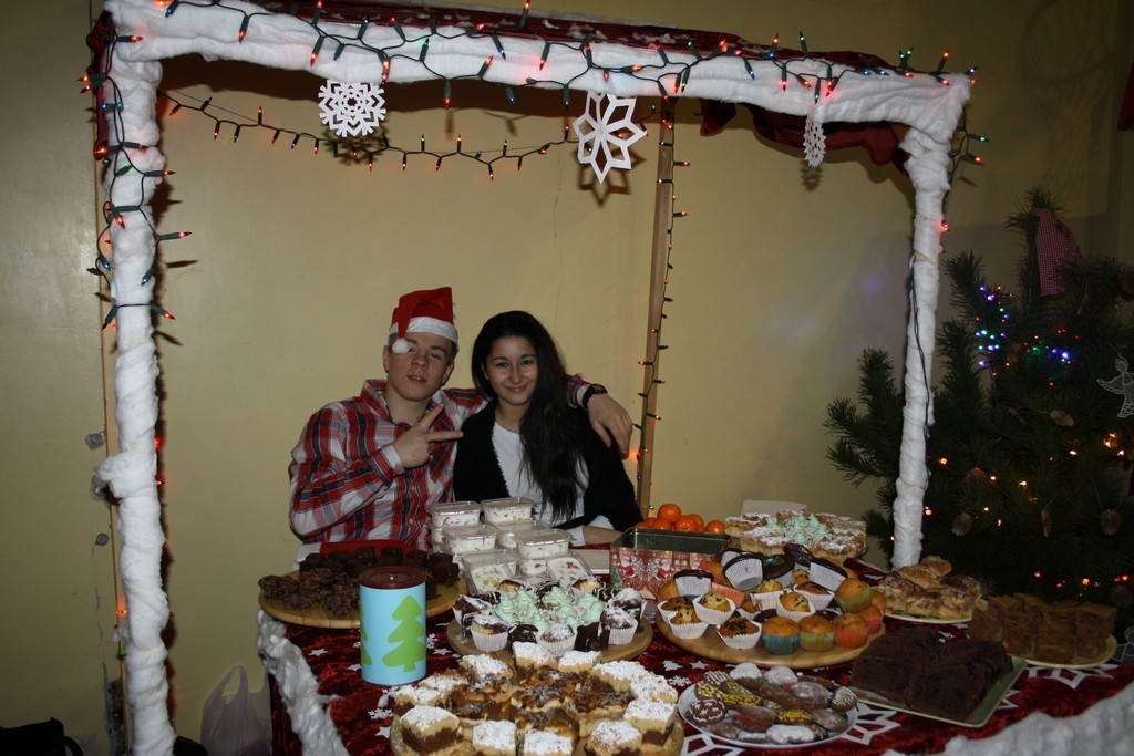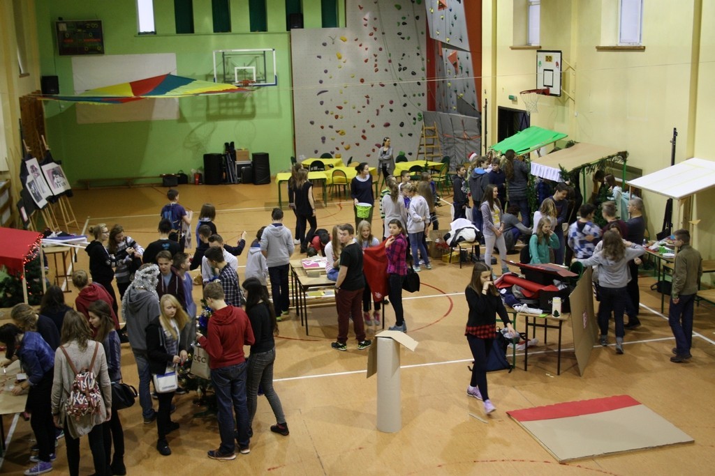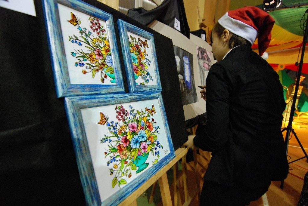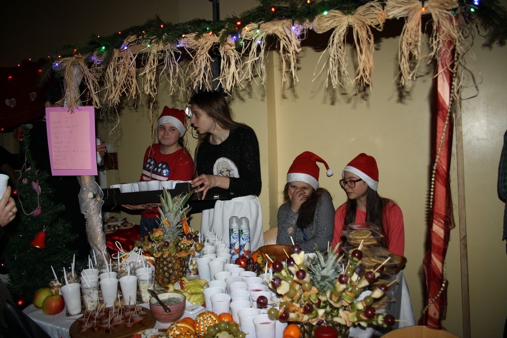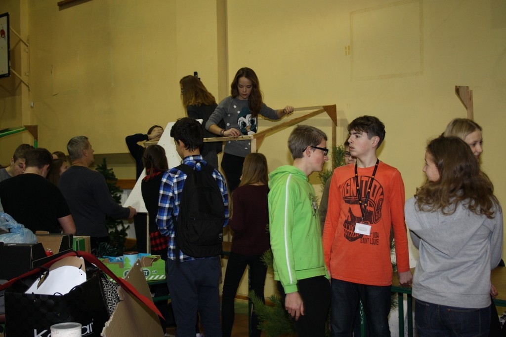 Na sali gimnastycznej pojawiły się specjalnie przygotowane na tę okazję stragany – a na nich mnóstwo atrakcji. Uczniowie już od kilku tygodni przygotowywali świąteczne ozdoby, miniaturowe choinki, bombki, pudełka na upominki, świeczniki, niepowtarzalne ozdoby, bożonarodzeniowe kartki a nawet ekologiczne kosmetyki. Stoiska oferowały również pyszne ciasta, pierniczki, babeczki, sałatki, napoje a nawet pierogi i tradycyjny czerwony barszczyk.