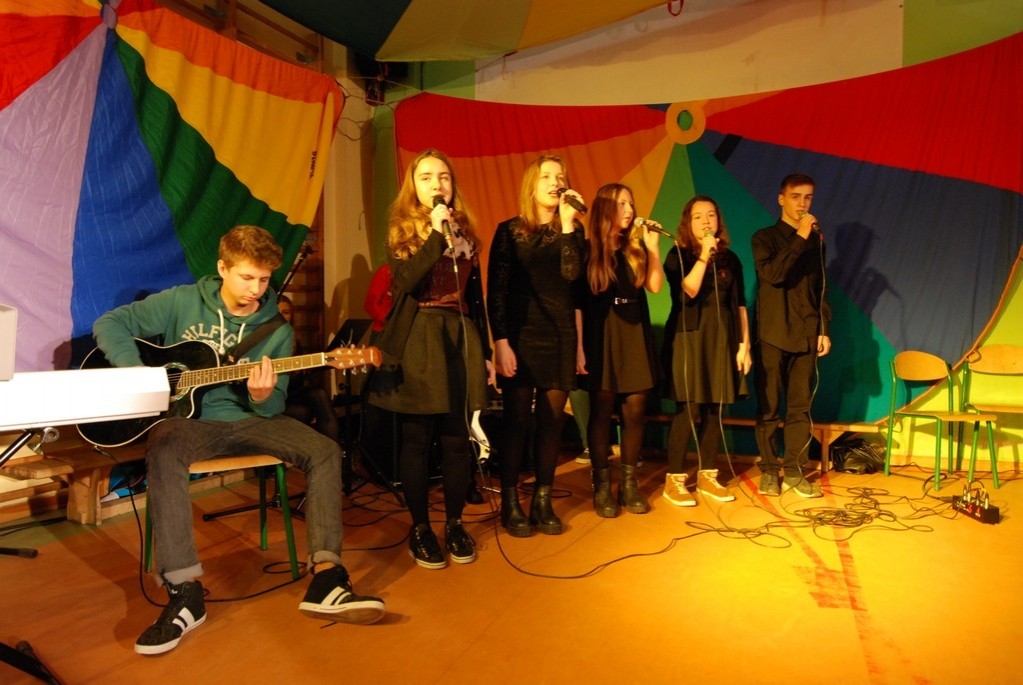 Na jarmarku nie mogło też zabraknąć odpowiedniej oprawy muzycznej – na specjalnie przygotowanej scenie pojawił się nasz niezastąpiony zespół „Witamina M”. Czas umiliły nam kolędy i świąteczne utwory. Do wspólnej zabawy zachęceni zostali również rodzice oraz zaproszeni goście.