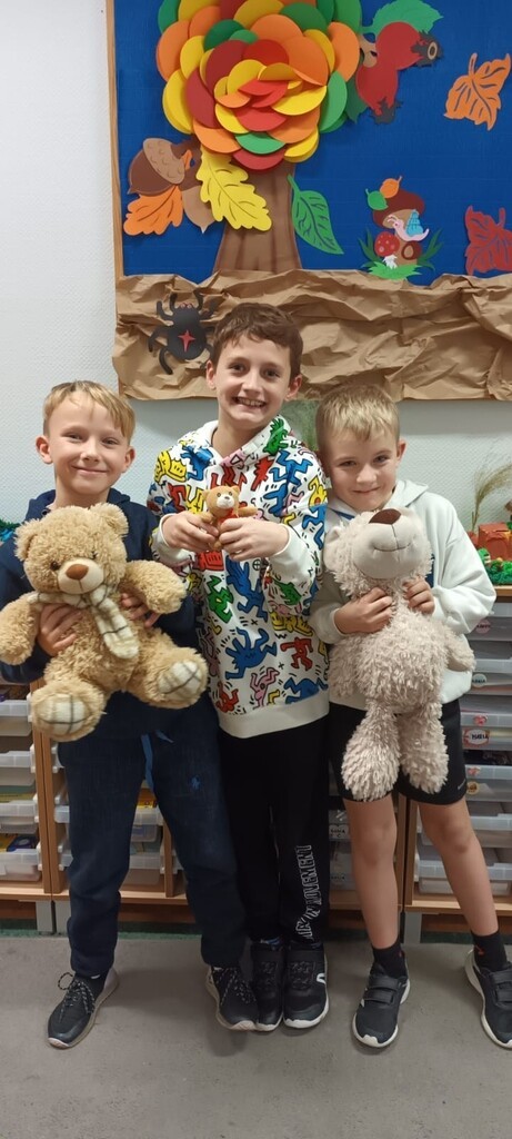Nie od dziś wiadomo, że pluszowe misie mają wspaniałych przyjaciół, jakimi są dzieci. W poniedziałek, 27 listopada, uczniowie klas 1-3 uczcili 121 rocznicę powstania tej wyjątkowej zabawki. Dzieci przyniosły do szkoły swoje ukochane maskotki i w ich towarzystwie spędziły lekcje. Poznały historię Pluszowego Misia, misiowe piosenki i bajki oraz ciekawostki o niedźwiedziach. Wykonały również prace plastyczne. W niektórych klasach na uczniów czekał misiowy poczęstunek.