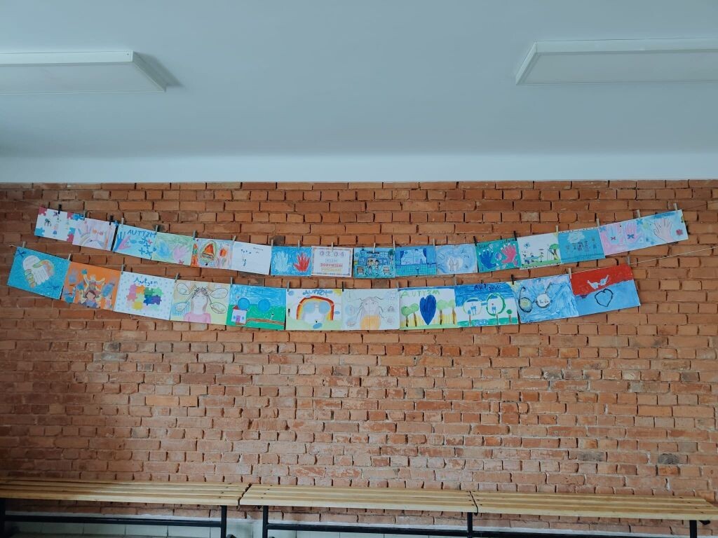 Dzięki wychowawczyniom z klas I-III powstała piękna galeria prac - plakatów na temat autyzmu.