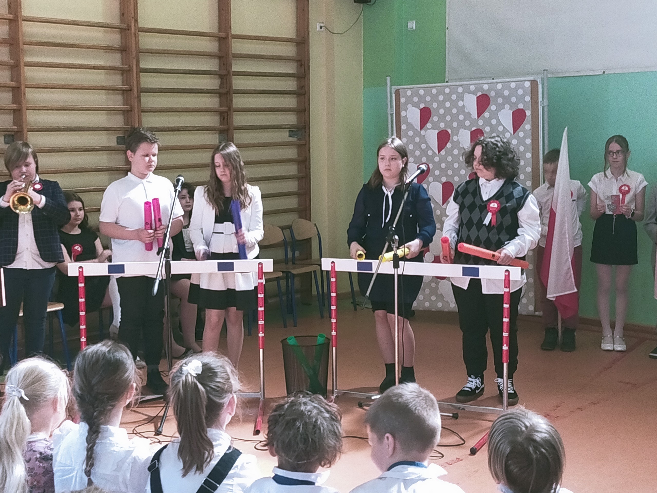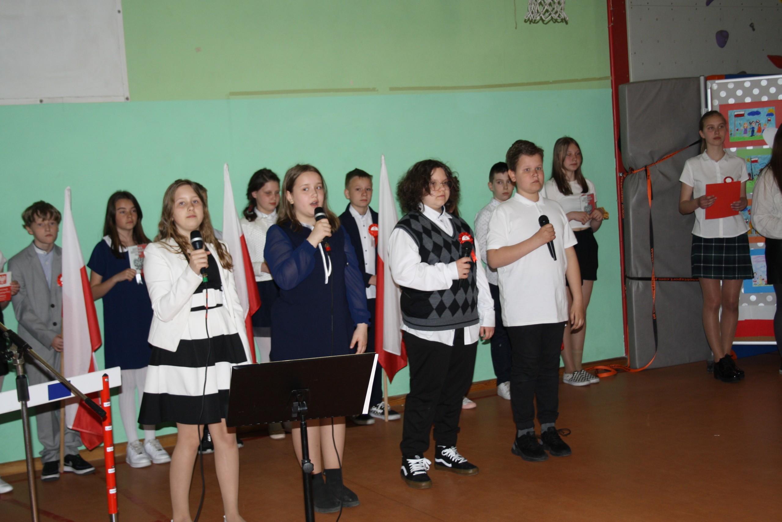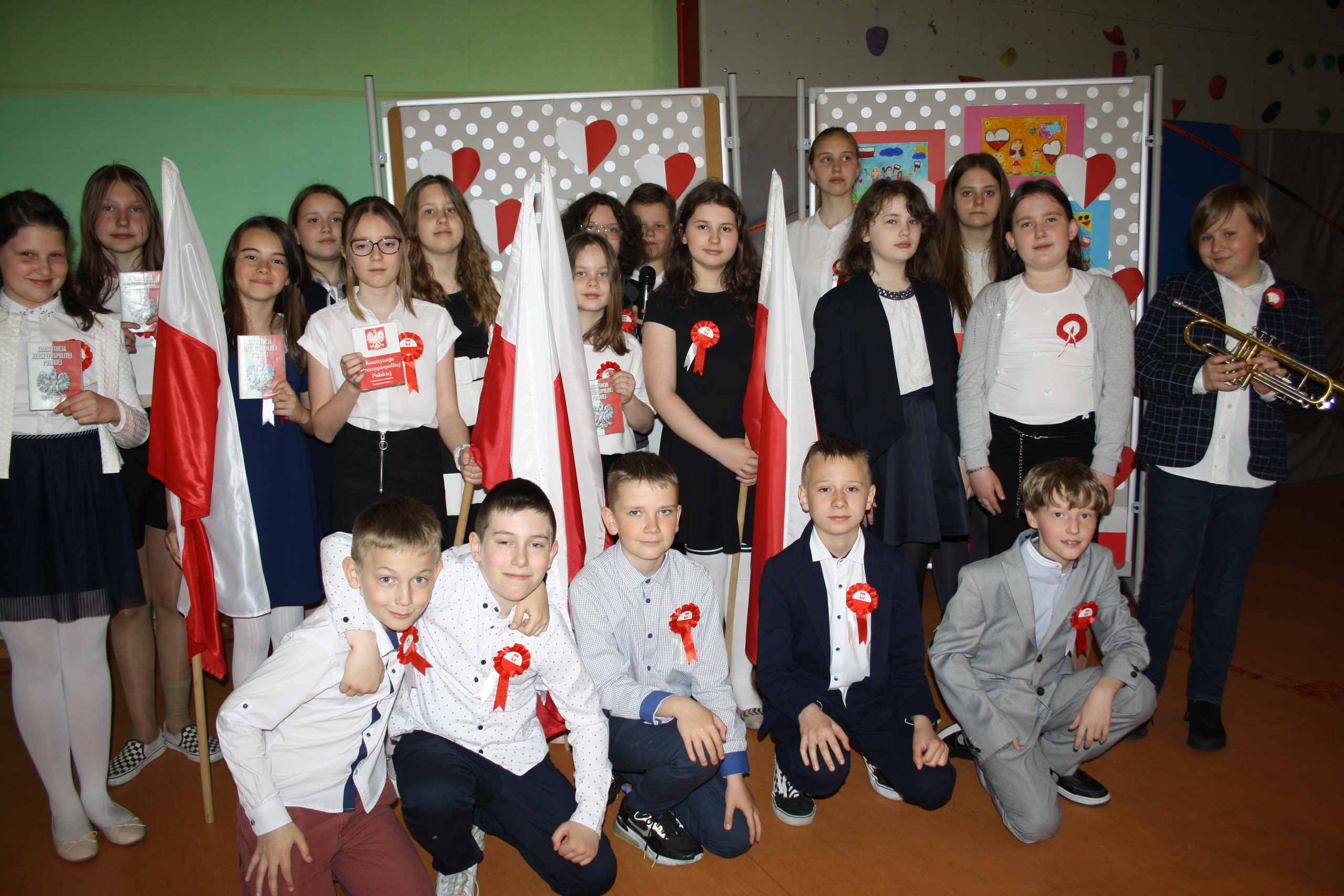 3 Maja to dzień , w którym warto uzmysłowić sobie rolę i znaczenie takich słów, jak: Ojczyzna, Patriotyzm. Daje on też możliwość przybliżenia kilku faktów z historii Polski, często zapomnianych przez uczniów. Podczas uroczystości dziewczęta z klas ósmych przybliżyły rys historyczny związany z tamtymi wydarzeniami, zaś zespół muzyczny Witamina M oraz trio wokalne z klasy Ib okrasili go kilkoma brawurowo wykonanymi utworami muzycznymi. Całości dopełniła piękna sceneria oraz choreografia w wykonaniu uczniów z klasy 4a.