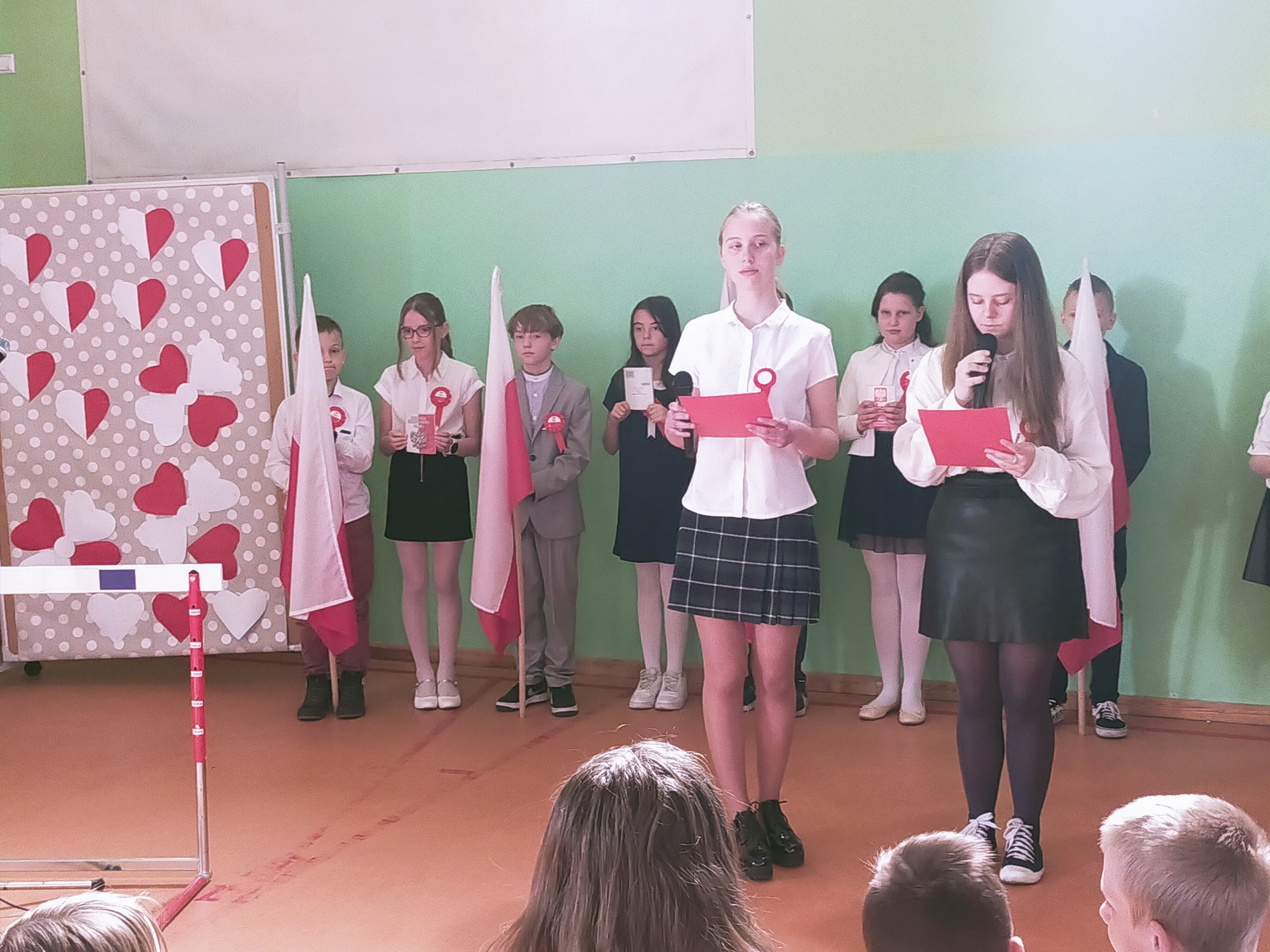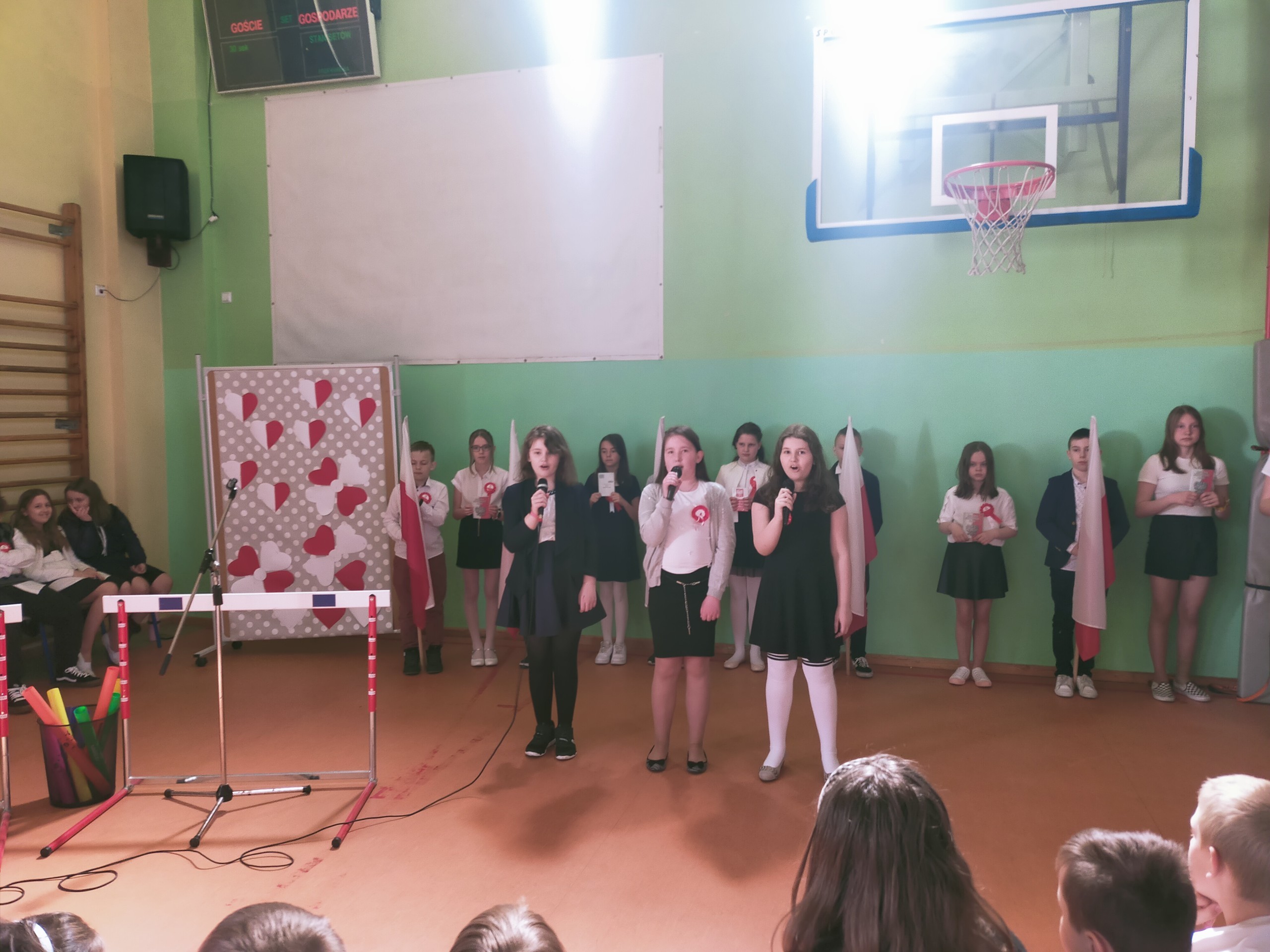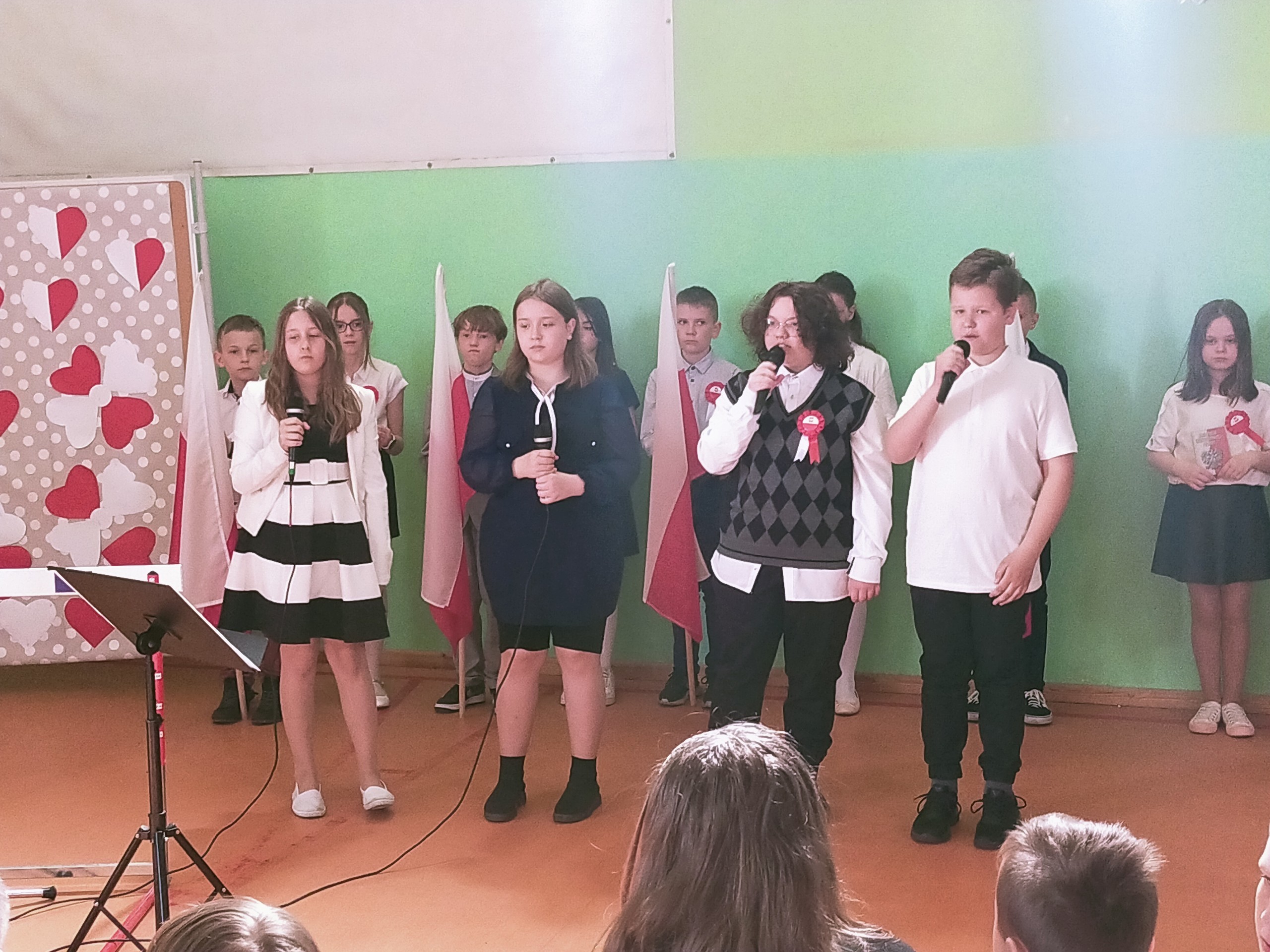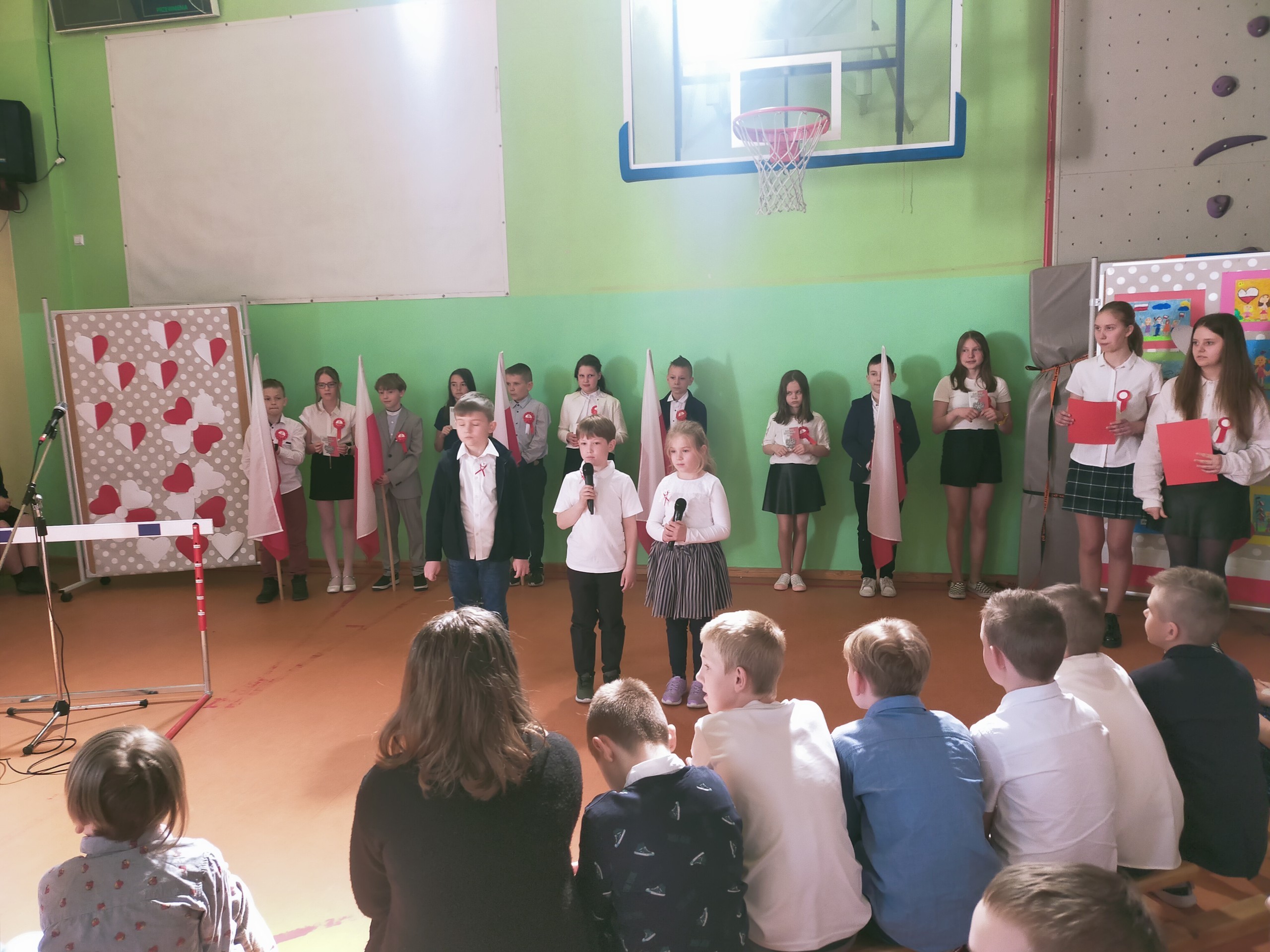 3 Maja to dzień , w którym warto uzmysłowić sobie rolę i znaczenie takich słów, jak: Ojczyzna, Patriotyzm. Daje on też możliwość przybliżenia kilku faktów z historii Polski, często zapomnianych przez uczniów. Podczas uroczystości dziewczęta z klas ósmych przybliżyły rys historyczny związany z tamtymi wydarzeniami, zaś zespół muzyczny Witamina M oraz trio wokalne z klasy Ib okrasili go kilkoma brawurowo wykonanymi utworami muzycznymi. Całości dopełniła piękna sceneria oraz choreografia w wykonaniu uczniów z klasy 4a.