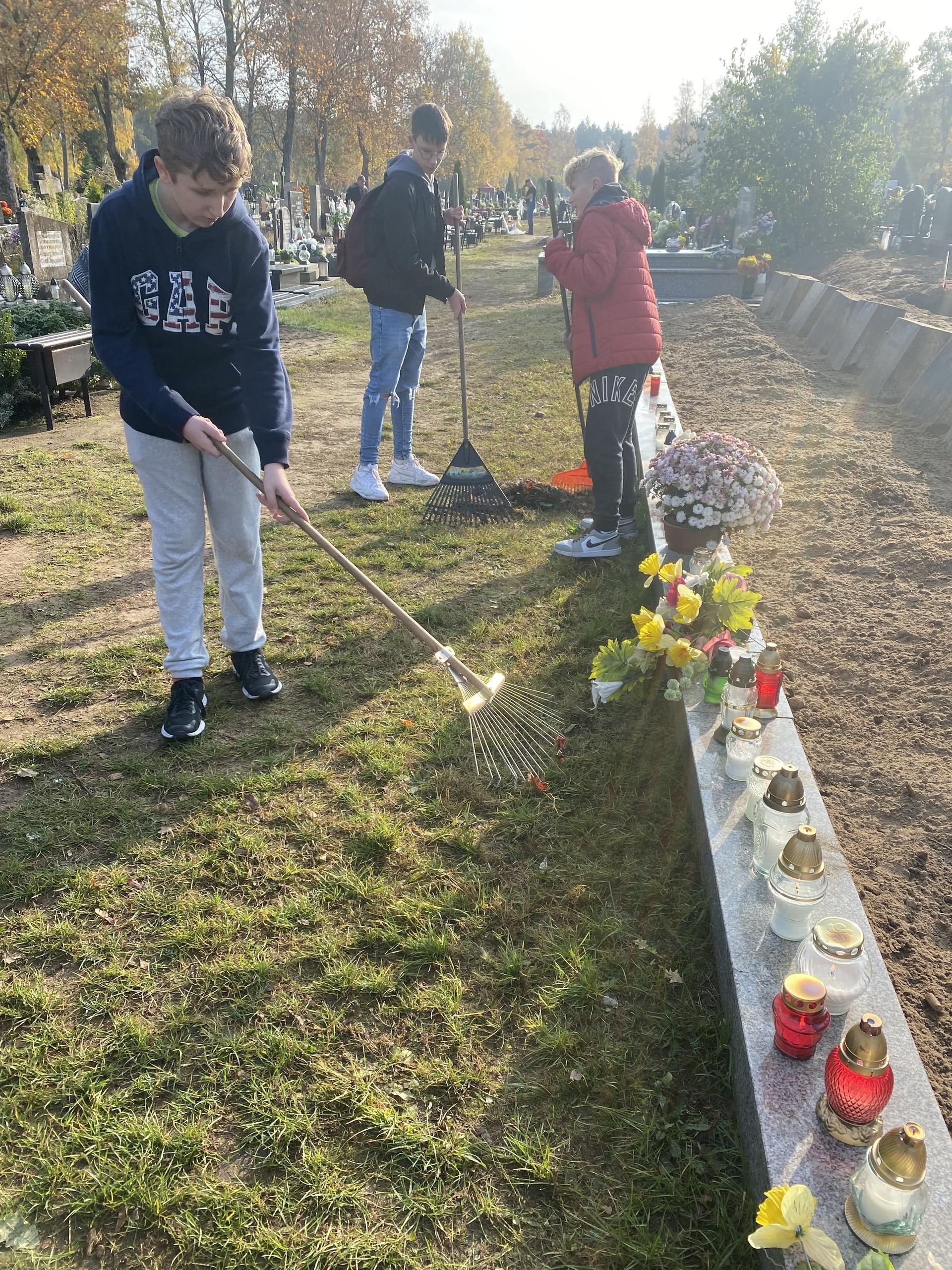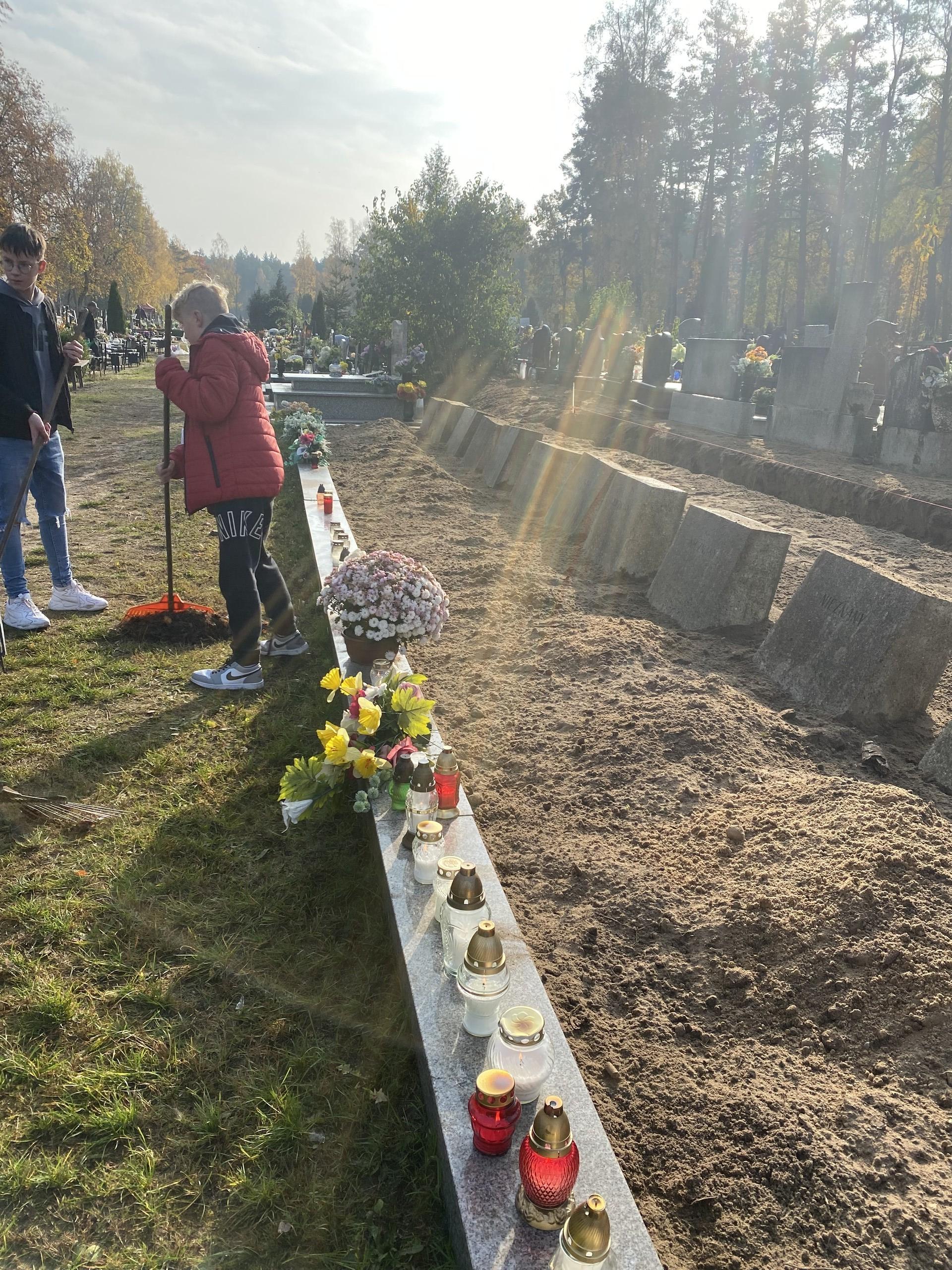 Już po raz czwarty Ministerstwo Edukacji i Nauki zaprosiło wszystkich uczniów i nauczycieli do udziału w akcji „Szkoła pamięta”. Podobnie jak w ubiegłych latach zostaliśmy zaproszeni do upamiętnienia ważnych postaci, wydarzeń historycznych i zapomnianych bohaterów. Zakres przewidzianych działań jest bardzo szeroki. Klasa VIII d w ramach akcji udała się na lęborski cmentarz, by upamiętnić miejsce spoczynku Polaków, którzy byli więźniami obozu koncentracyjnego w Stutthofie. Wizycie sprzyjał nadchodzący czas refleksji i zadumy w związku z przypadającymi świętami: Wszystkich Świętych i Dnia Zadusznych. Uporządkowaliśmy mogiły nieznanych z imienia i nazwiska bohaterów, ale także tych, o których nikt nie pamięta. Często zaniedbane nagrobki w tym zbliżającym się czasie warto uprzątnąć i postawić świeczkę pamięci. Nie zapomnieliśmy także o zmarłych nauczycielach naszej szkoły spoczywających na lęborskim cmentarzu.