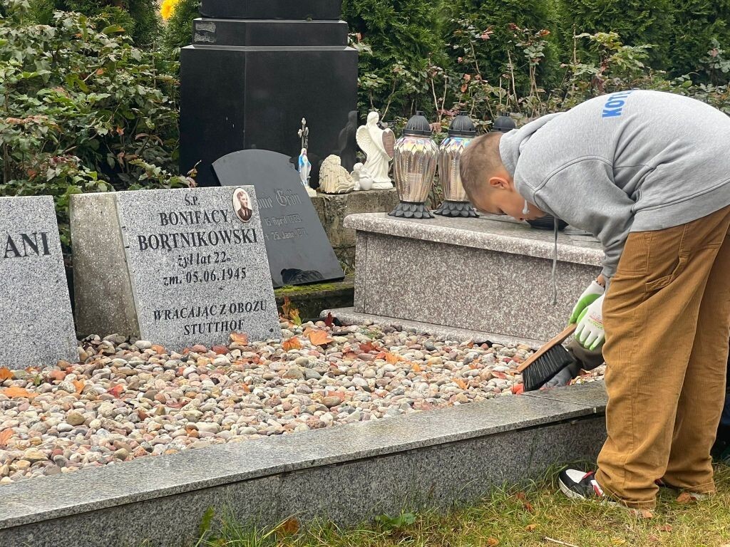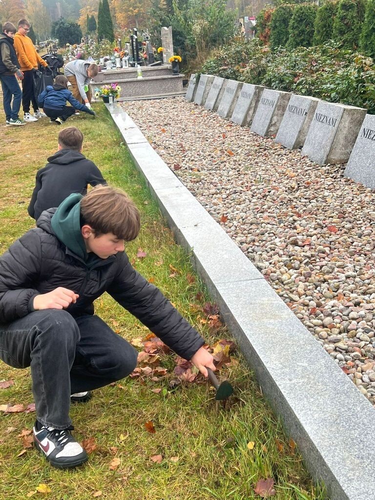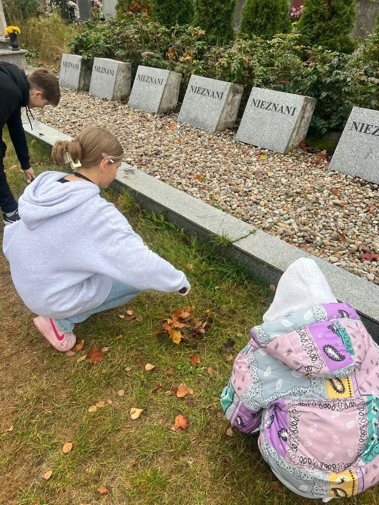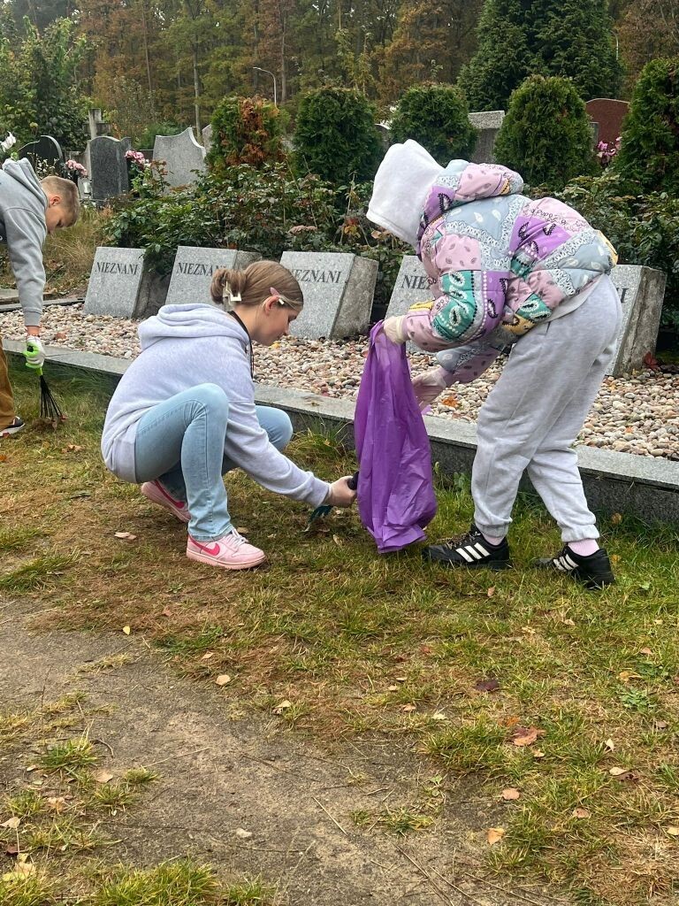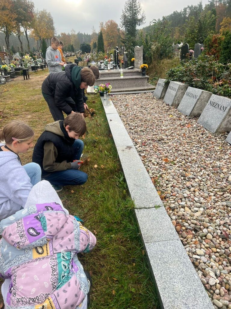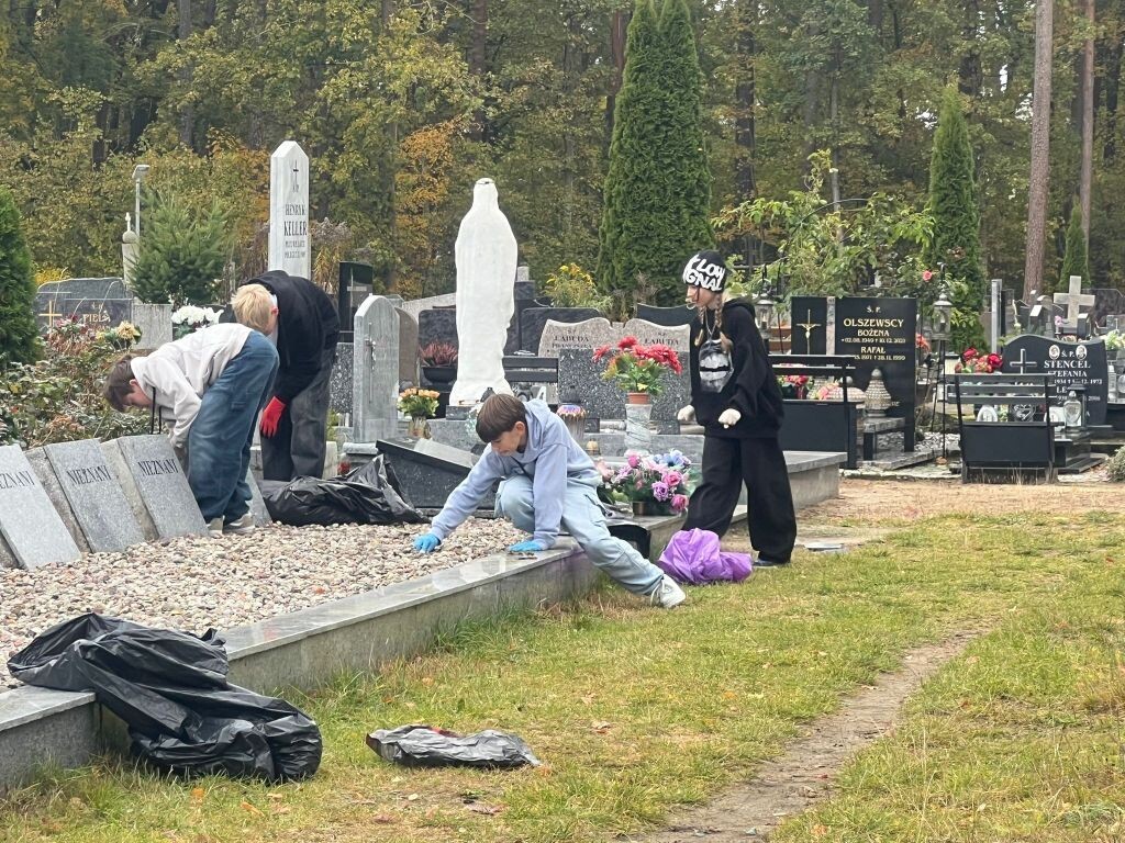 W związku ze zbliżającymi się uroczystościami Wszystkich Świętych, co roku kontynuujemy akcję porządkowania mogił żołnierzy na lęborskim cmentarzu. Symboliczny znicz, modlitwa i nasze zaangażowanie są wyrazem naszej pamięci. Lokalny sprzedawca zniczy tak wzruszył się postawą uczniów z klasy VIa, że sam ofiarował znicze, które postawiliśmy na mogiłach. To lekcja historii dla uczniów, która pokazuje, że dzieje historyczne są tak blisko nas.