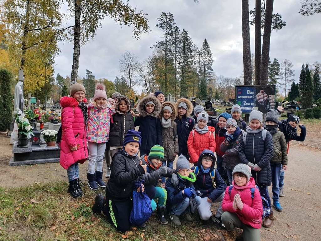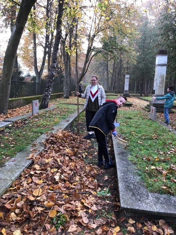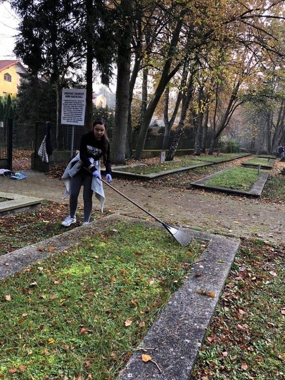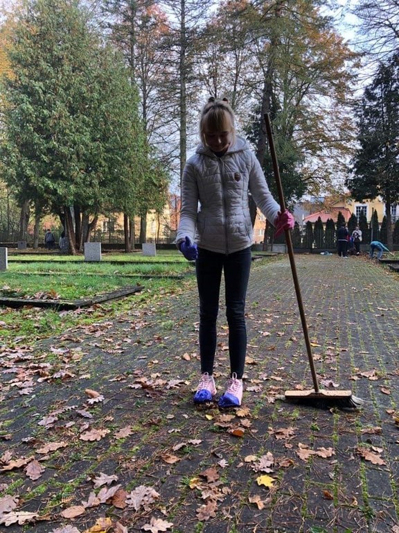 Każdego roku są takie dni, w których w szczególny sposób pamiętamy o zmarłych. Porządkujemy groby i zapalamy znicze. Wspominamy zarówno naszych bliskich, jak i tych, którzy zapisali się w historii – tej ogólnonarodowej i lokalnej. Pamięć o nich jest wyrazem szacunku dla ich życia i dokonań – napisał w liście do dyrektorów Minister Edukacji Narodowej Dariusz Piontkowski, zapraszając do udziału w akcji ,,Szkoła pamięta”. Nasza placówka chętnie włączyła się do tej akcji. W jej ramach klasa VII b uporządkowała cmentarz żołnierzy radzieckich , który znajduje się na tyłach osiedla Sportowa. Udało się uprzątnąć zalegające na mogiłach liście, usunąć mech i zapalić znicze. W ślad klasy VIIb poszły także inne, które dla odmiany zajęły się porządkowaniem miejskiej nekropolii. W sumie w akcji tej wzięło udział pięć klas z naszej szkoły, a także reprezentanci Samorządu Uczniowskiego, którzy również nie zapomnieli o opuszczonych grobach.