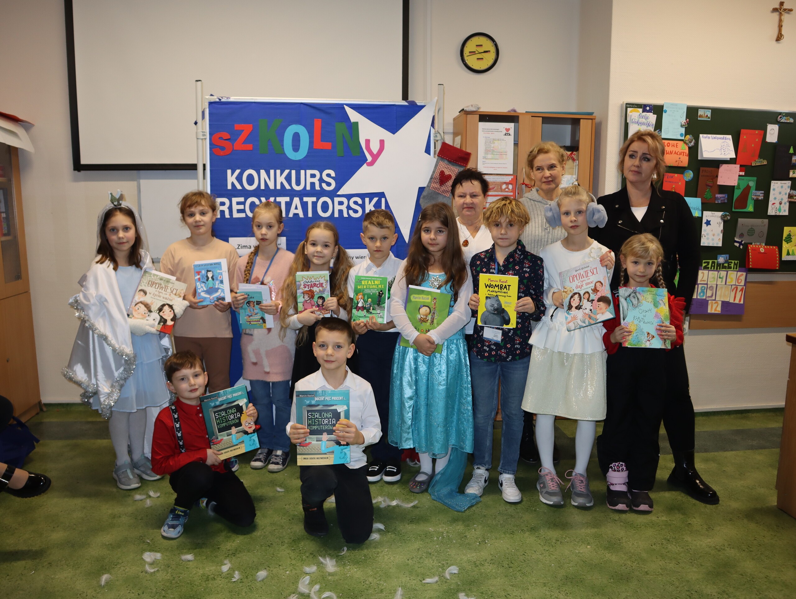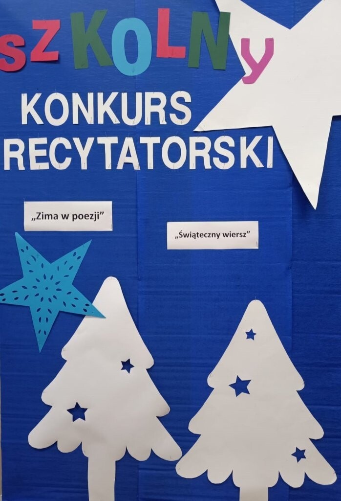 Przedświąteczny czas stał się doskonałą okazją do zorganizowania konkursu recytatorskiego, którego tematyka związana była z zimą oraz zbliżającymi się świętami Bożego Narodzenia. 17 grudnia, w ramach Narodowego Programu Rozwoju Czytelnictwa w naszej szkole odbył się Szkolny Konkurs Recytatorski dla klas I- VIII, który przeprowadzony został w trzech kategoriach wiekowych. Najmłodsi uczniowie mieli przygotować utwory pod hasłem ,,Świąteczny wiersz", starsi - ,,Zima w poezji". Każdą klasę reprezentował jeden uczestnik, oceniany przez czteroosobową komisję. Poziom konkursu był bardzo wyrównany, wszyscy zachwycili jury pięknymi interpretacjami utworów polskich, a także zagranicznych poetów. Miło nam poinformować, że laureatami konkursu w swoich kategoriach wiekowych zostali kolejno: