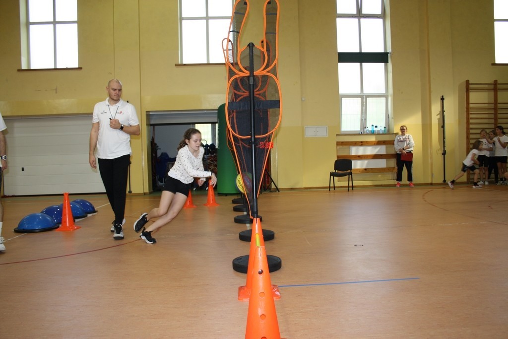 W miniony piątek uczniowie naszej szkoły wzięli udział w siódmej już edycji turnieju sprawnościowego - Szkolnego Skills Chellange. Uczniowie czterdziestu szkół, zakwalifikowanych do udziału w projekcie, pokonują na czas specjalnie przygotowany tor sprawnościowy. W każdej z nich na podstawie uzyskanego czasu wyłanianych jest dwóch zwycięzców, jedna dziewczynka i jeden chłopiec. Na koniec projektu wyłoniona zostanie finałowa grupa 5 dziewczynek i 5 chłopców, którzy zmierzą się w Ogólnopolskim Finale Szkolnego Skills Challange „Mierz Wysoko". Finał odbędzie się w Łodzi a nagrodą dla zwycięzców jest trening z Marcinem Gortatem oraz sprzęt sportowy.