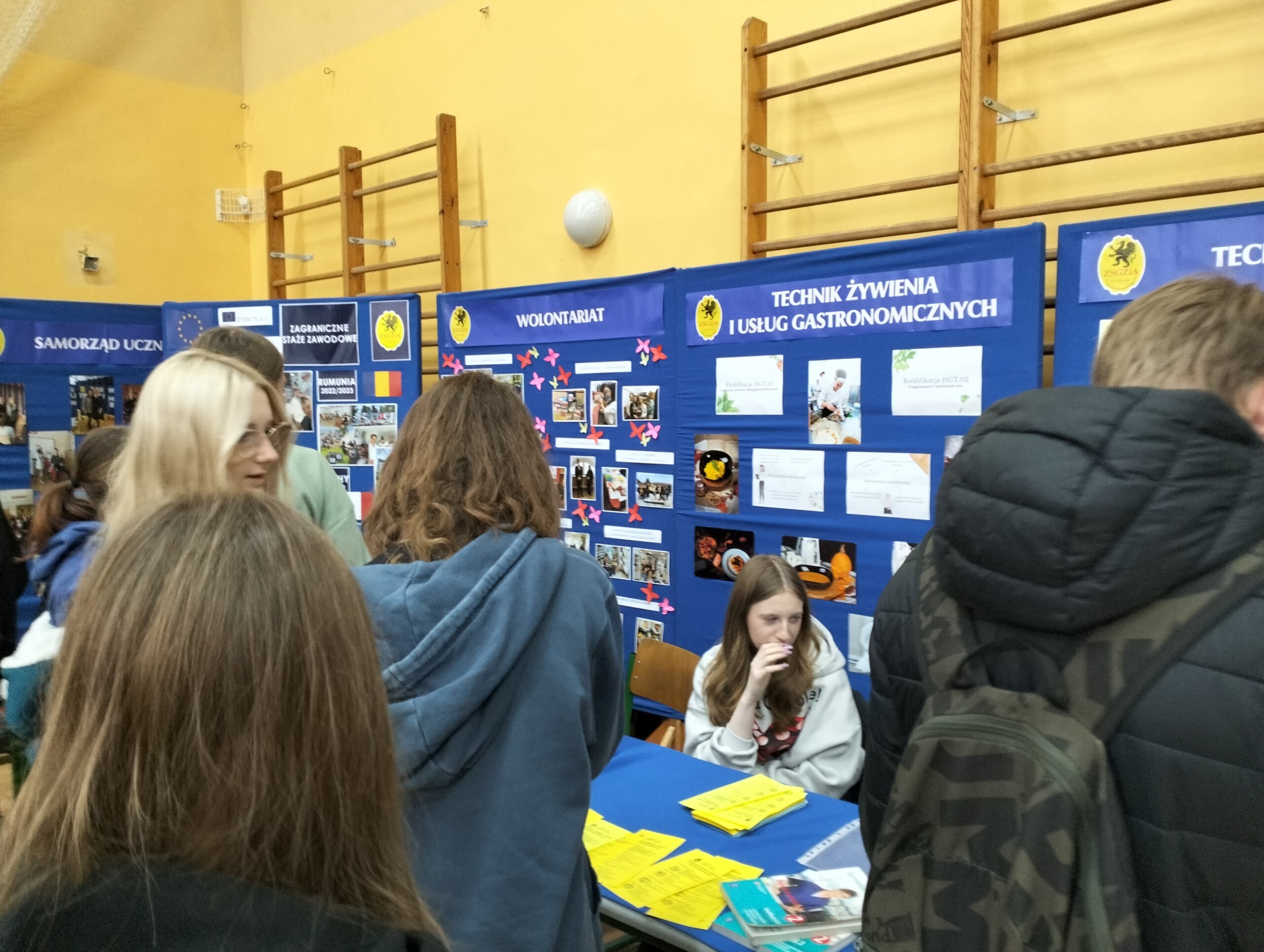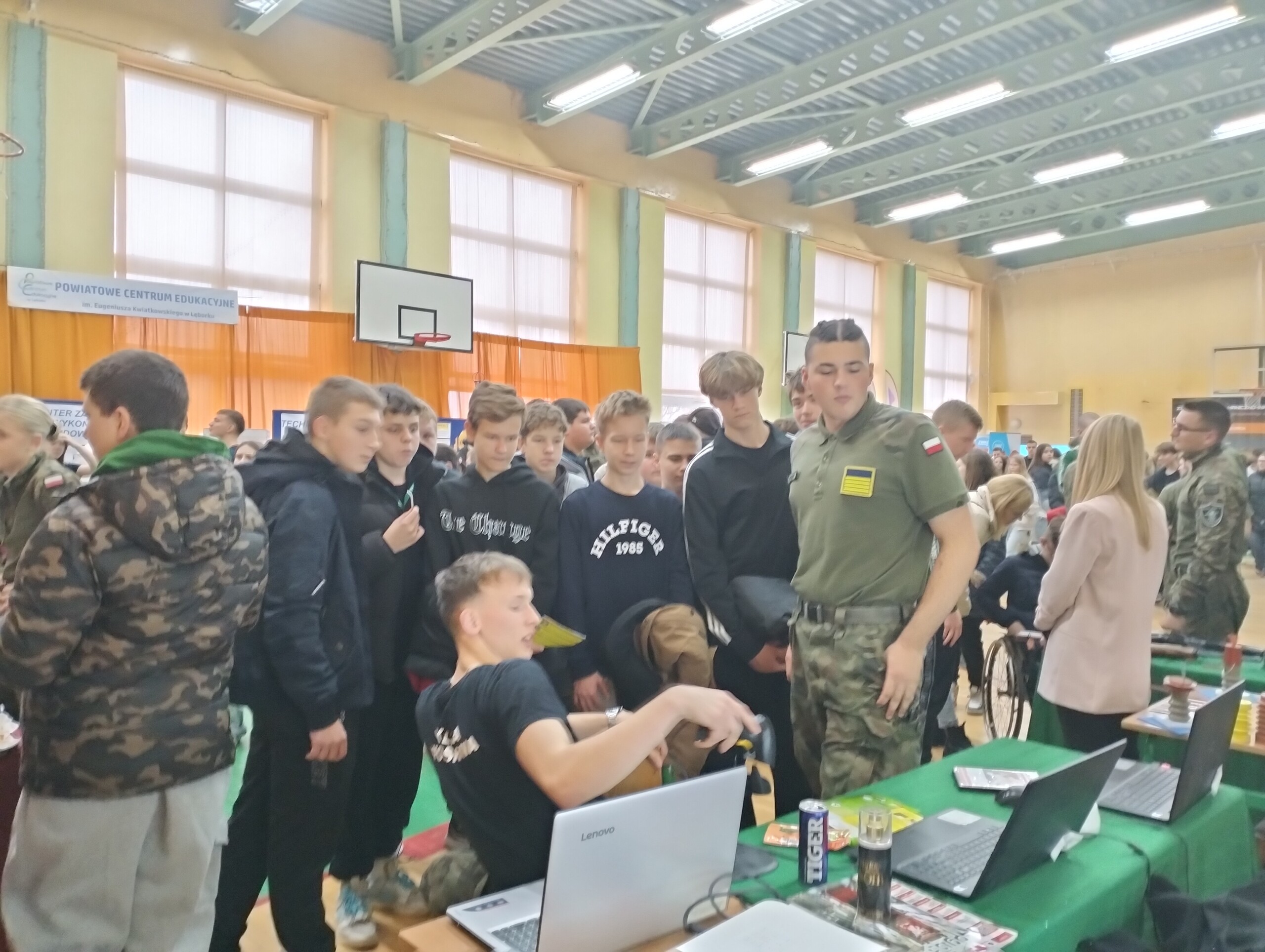 W środę, 13.11. uczniowie klas 8a i 8b odwiedzili Targi Edukacyjne, które od kilku lat organizowane są w PCE w Lęborku przy ul. Pionierów. Na miejscu mogli zapoznać się z ofertą edukacyjną szkół ponadpodstawowych, jak również poznać specyfikę firm i zakładów pracy , których stoiska znajdowały się na sali gimnastycznej szkoły. Każdy mógł porozmawiać z przedstawicielami szkół oraz firm, dostępne również były ulotki informacyjne. Ponadto przed budynkiem PCE uczestnicy mogli zapoznać się z metodami produkcji energii ze źródeł odnawialnych, a dodatkową atrakcję stanowił symulator wózka widłowego, którego zastosowanie przedstawiali uczniowie lęborskich szkół branżowych. Udział w targach z pewnością przybliżył uczniom ofertę kształcenia, która pomoże w późniejszym wyborze szkoły średniej i edukacyjnej ścieżki.