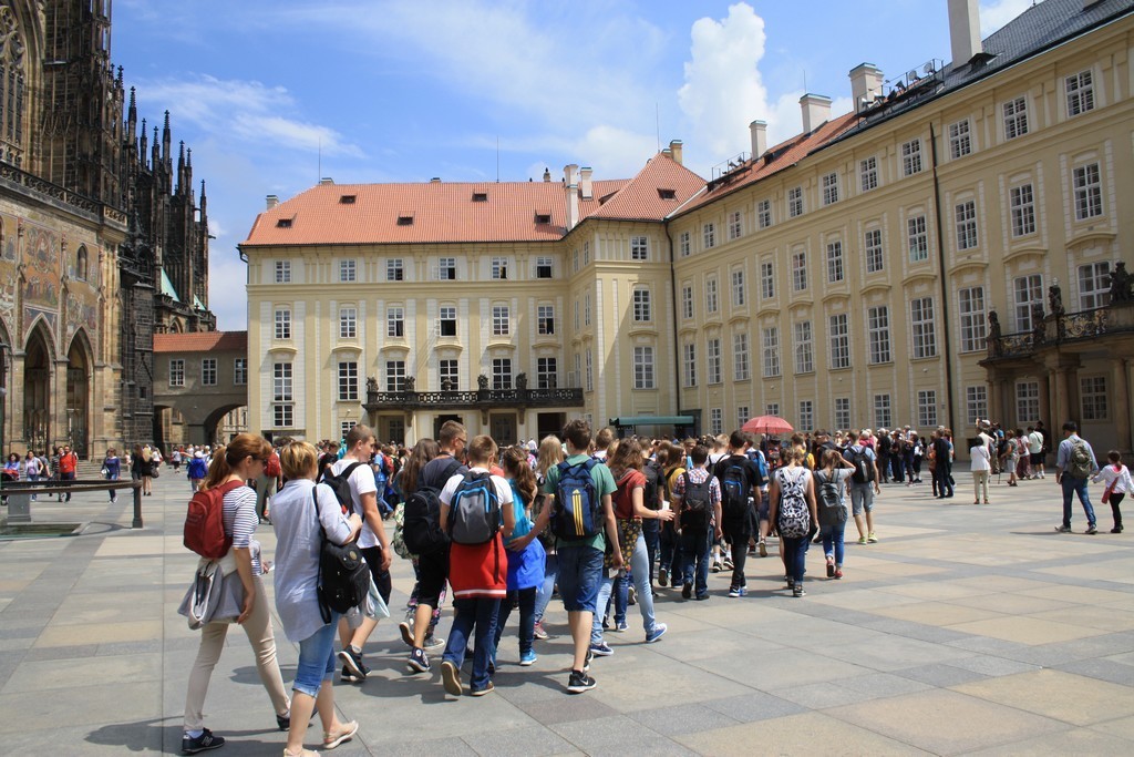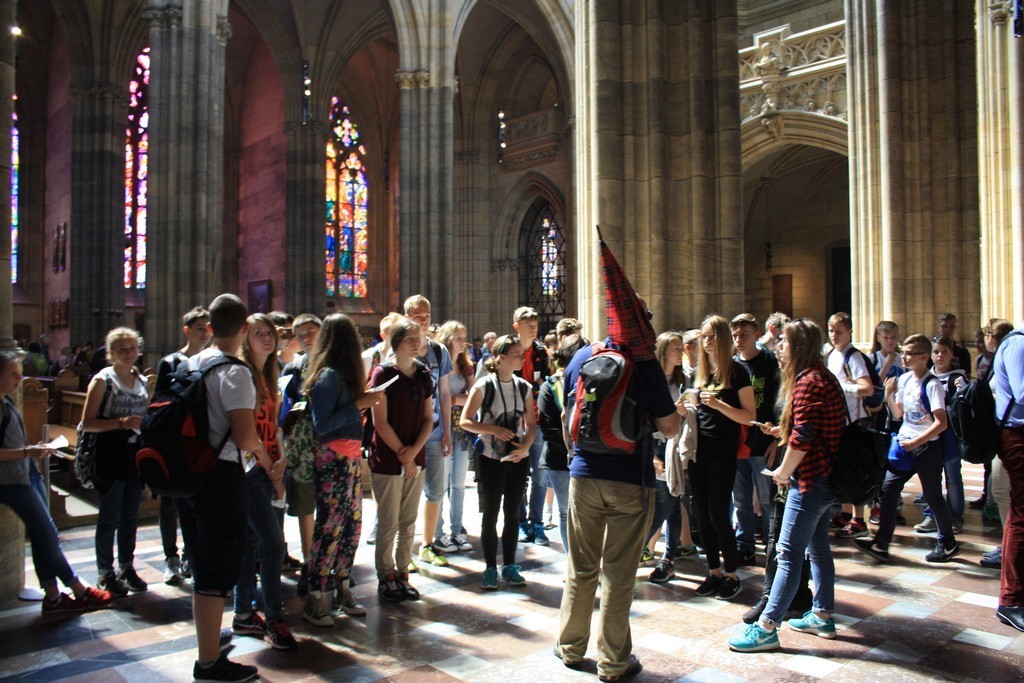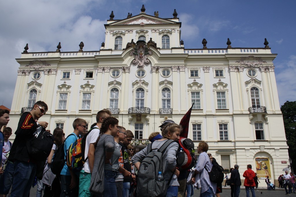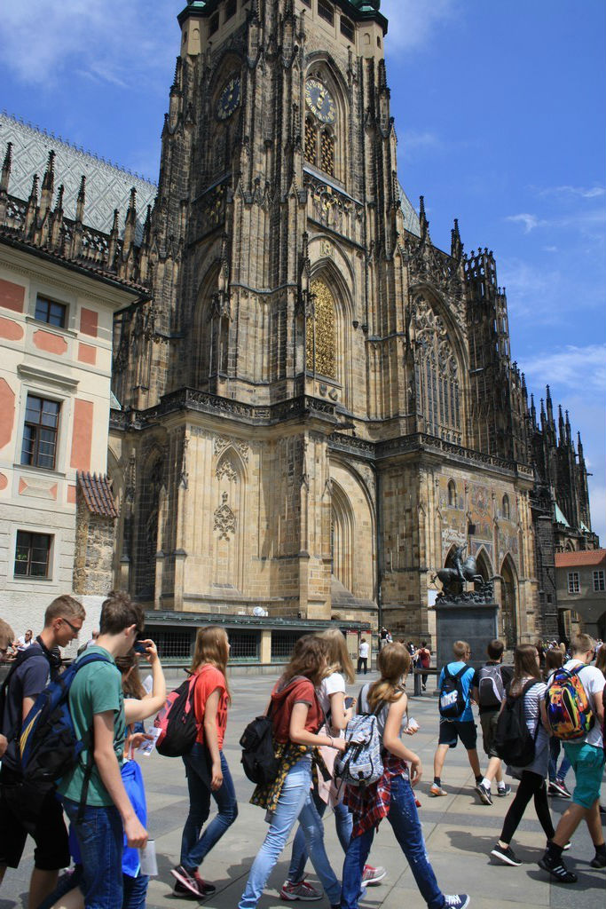 Następnie grupa udała się na Hradczany – zbudowaną w XIV wieku dzielnicę, której najważniejszym i najokazalszym budynkiem jest Zamek Królewski. Kolejne zwiedzane przez uczniów zabytki to: Katedra św. Wita, Bazylika św. Jerzego, Złota Uliczka, Most Karola oraz Ogrody Wallensteina.