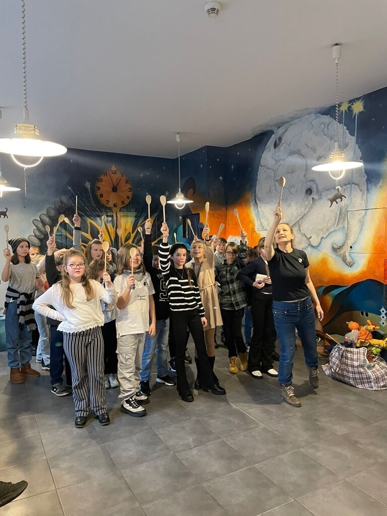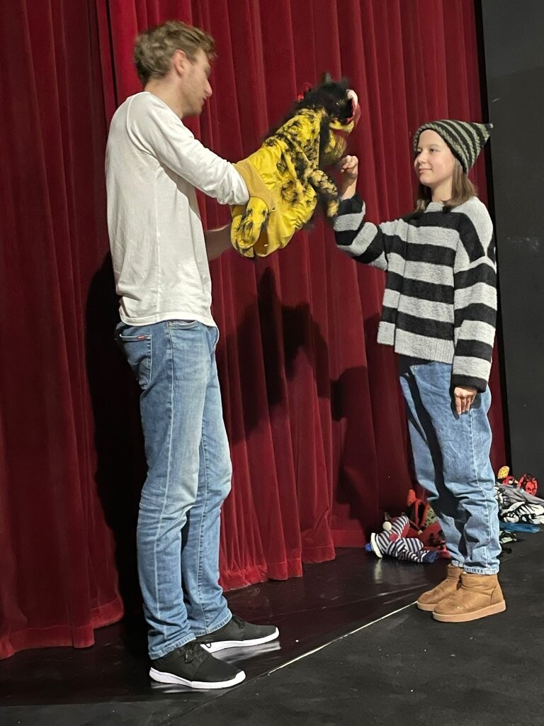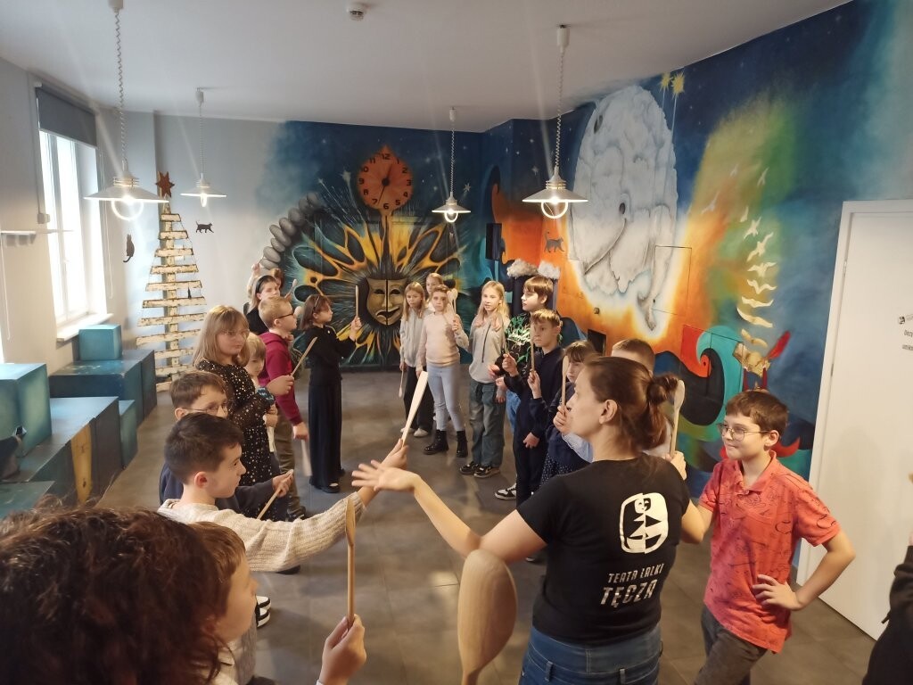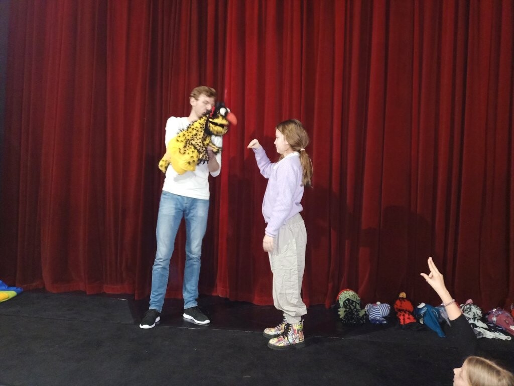 Po przedstawieniu czwartoklasiści uczestniczyli w warsztatach lalkarsko-aktorskich, podczas których aktorzy zdradzili dzieciom kilka tajników szkoły lalkarskiej, pokazali jak animować kukłą, pacynką, muppetem. Dzieci miały możliwość dotknięcia i ożywienia prawdziwej lalki teatralnej a nawet zagrania nią małego spektaklu.