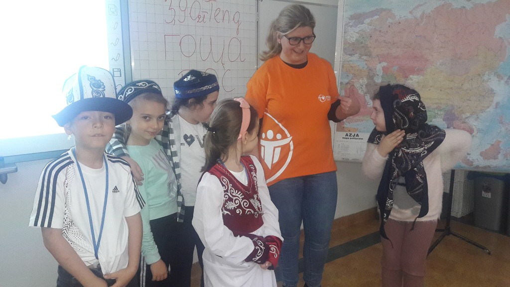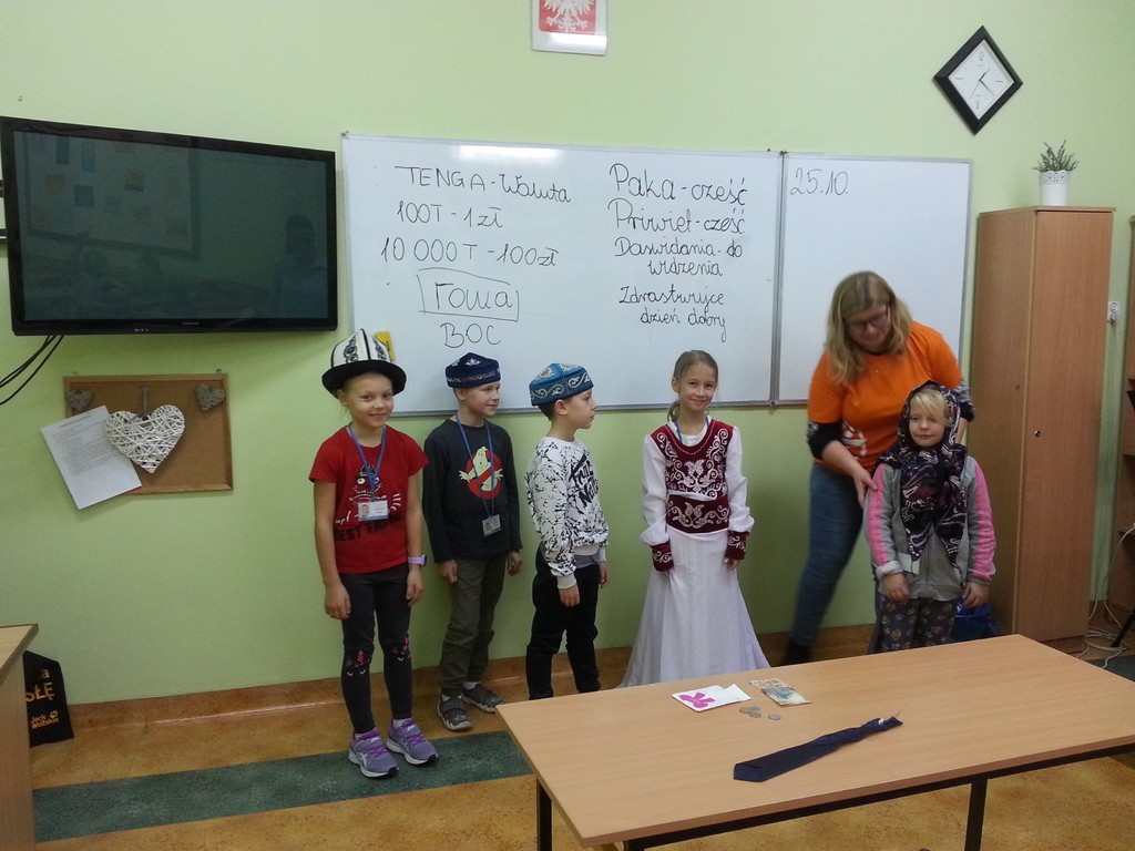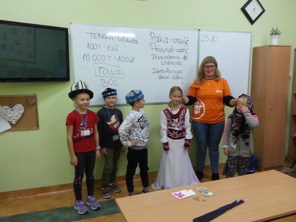 W miesiącu październiku na mocy postanowienia papieża Franciszka obchodzimy Nadzwyczajny Miesiąc Misyjny. W naszej szkole okazją do rozmowy o pracy na misjach stała się wizyta wolontariuszki z Kazachstanu p. Małgorzaty Wos. Przebywała na misjach w tym kraju,pracując jako wolontariusz w miejscowym domu dziecka. Opowiedziała uczniom klas drugich i dzieciom ze świetlicy szkolnej ,jak wyglądała jej praca w innym kraju, jak w Kazachstanie obchodzi się święta i spędza wolny czas i jaki panuje tam klimat. Nie lada atrakcją stały się stroje miejscowych mieszkańców Kazachstanu,Peru i dalekiej Afryki, które uczniowie mogli przymierzyć. Mieliśmy też do dyspozycji tamtejszą walutę oraz oglądaliśmy mini jurtę. Przez to spotkanie temat misji i misjonarzy stał się nam bardzo bliski. Wszyscy uczestnicy podziękowali p. Małgorzacie wspólną piosenką ,,Dobrze, że jesteś”.