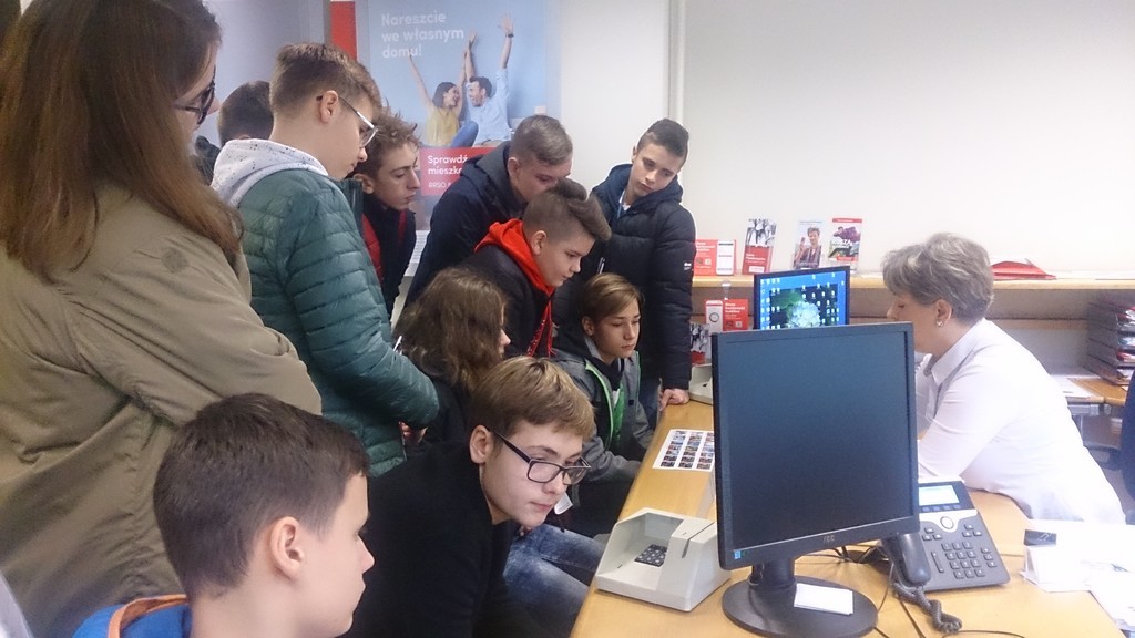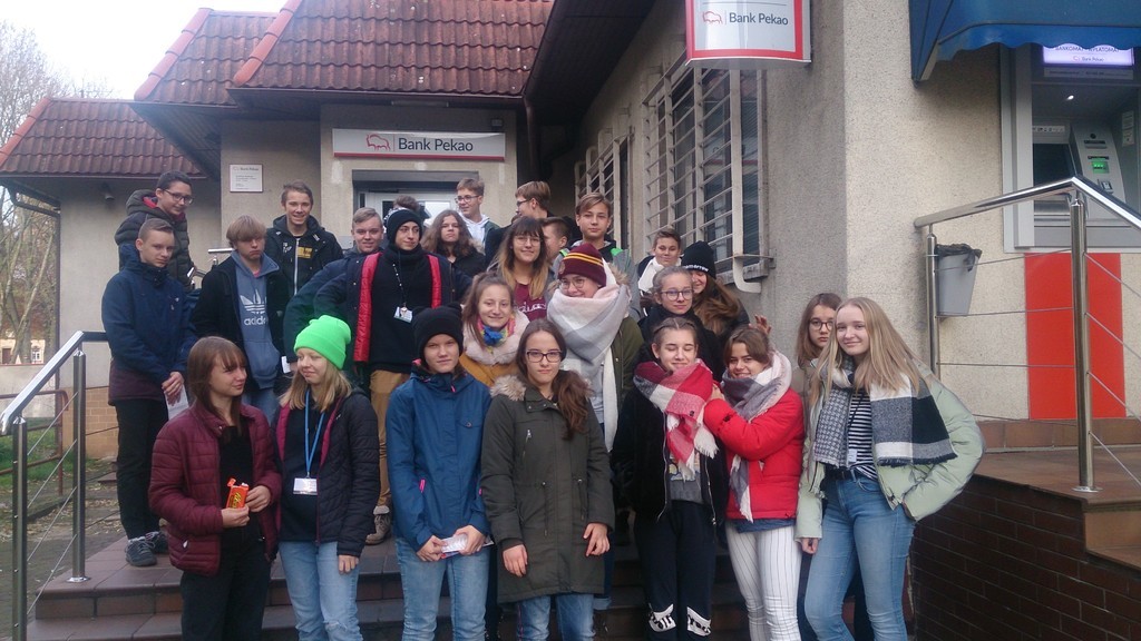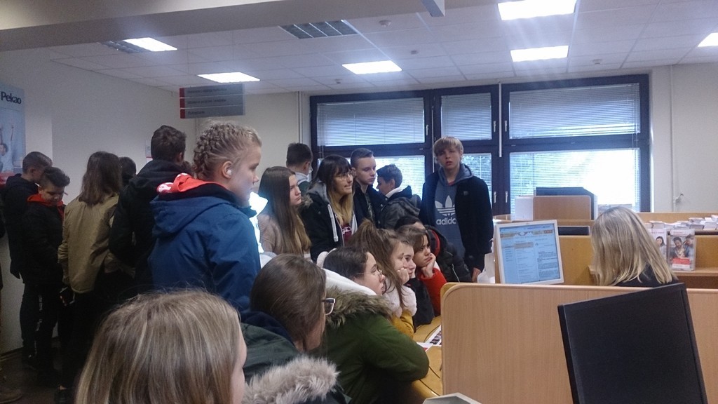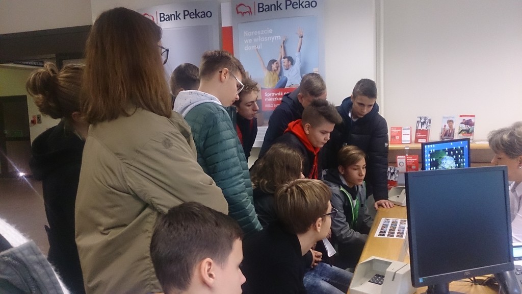18.11.2019 klasa VIIIc odwiedziła oddział Banku Pekao S.A. w Lęborku. Podczas wizyty uczniowie poznali wiele tajników związanych z pracą bankowca. Mogli obejrzeć skarbiec bankowy , dowiedzieli się, jak działa bankomat oraz mieli możliwość porozmawiania z pracownikami banku na ich stanowiskach pracy. Pani oprowadzajaca uczniów po banku opowiedziała ,na czym polega praca w tej instytucji , jaką ukończyć szkołę i studia, aby można było aplikować do pracy w tej instytucji, jak wziąć kredyt oraz dlaczego warto założyć konto. Wycieczka minęła w bardzo miłej atmosferze.