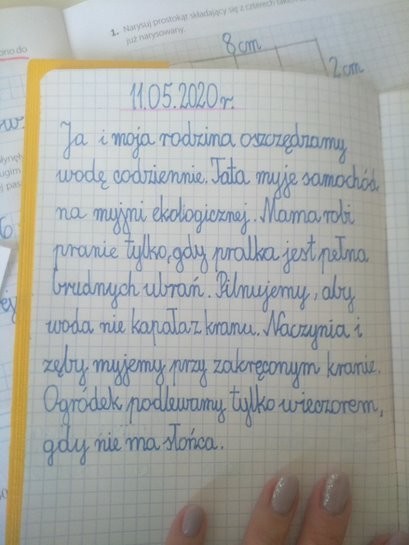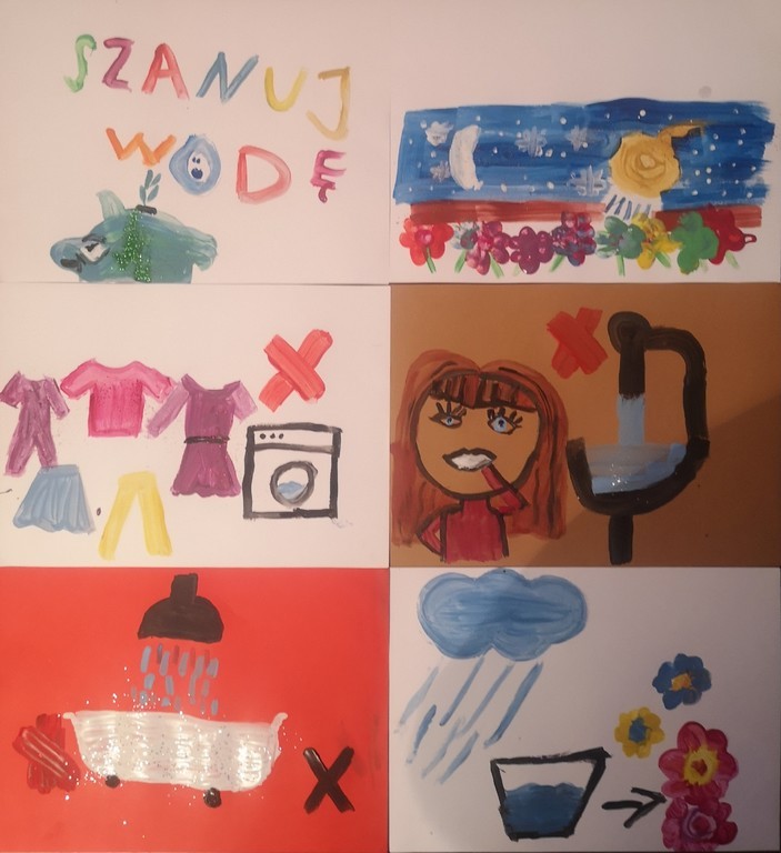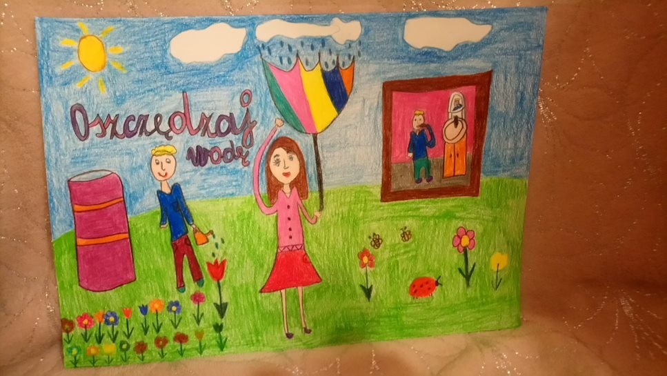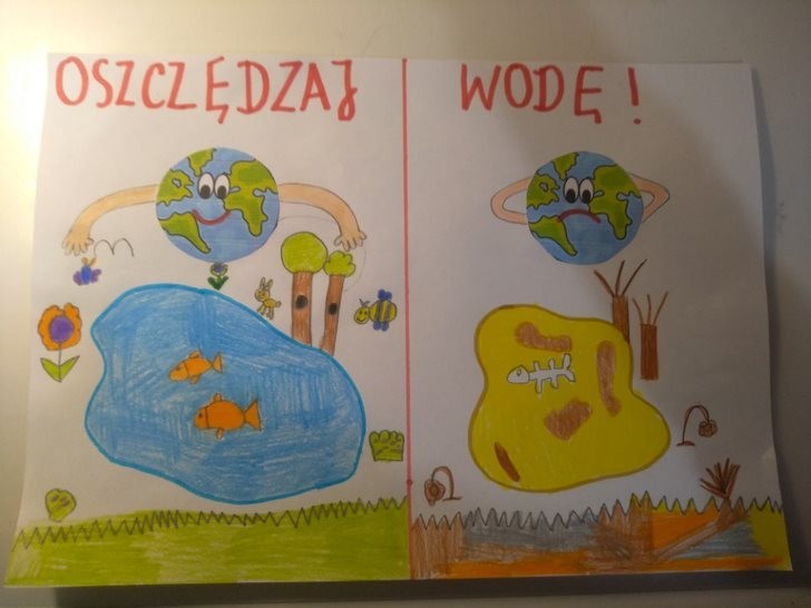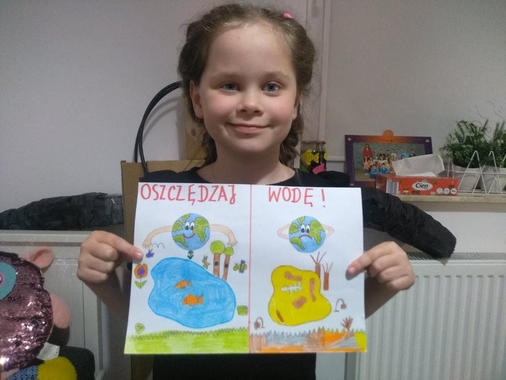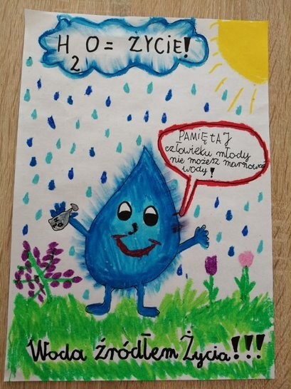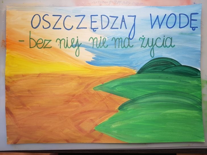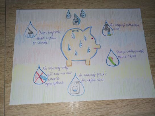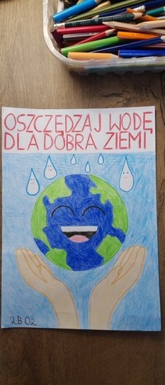 Wydaje się , że na Ziemi jest mnóstwo wody. Każdy, kto uczył się przyrody, pamięta zapewne,że krąży ona w obiegu zamkniętym i nigdy nie powinna się wyczerpać.Tymczasem sytuacja nie wygląda wcale optymistycznie. Czysta, słodka woda nie jest tak powszechnie dostępna na świecie, jak niektórym się wydaje, gdy odkręcają kran. Dlatego bardzo ważne jest, by oszczędzać wodę wraz z całą rodziną. Wiedzą o tym doskonale uczniowie klasy IIb, którzy po cyklu zajęć dotyczących wody i jej znaczenia dla człowieka, zwierząt i roślin mieli za zadanie wykonać prace pod hasłem: Oszczędzamy wodę.